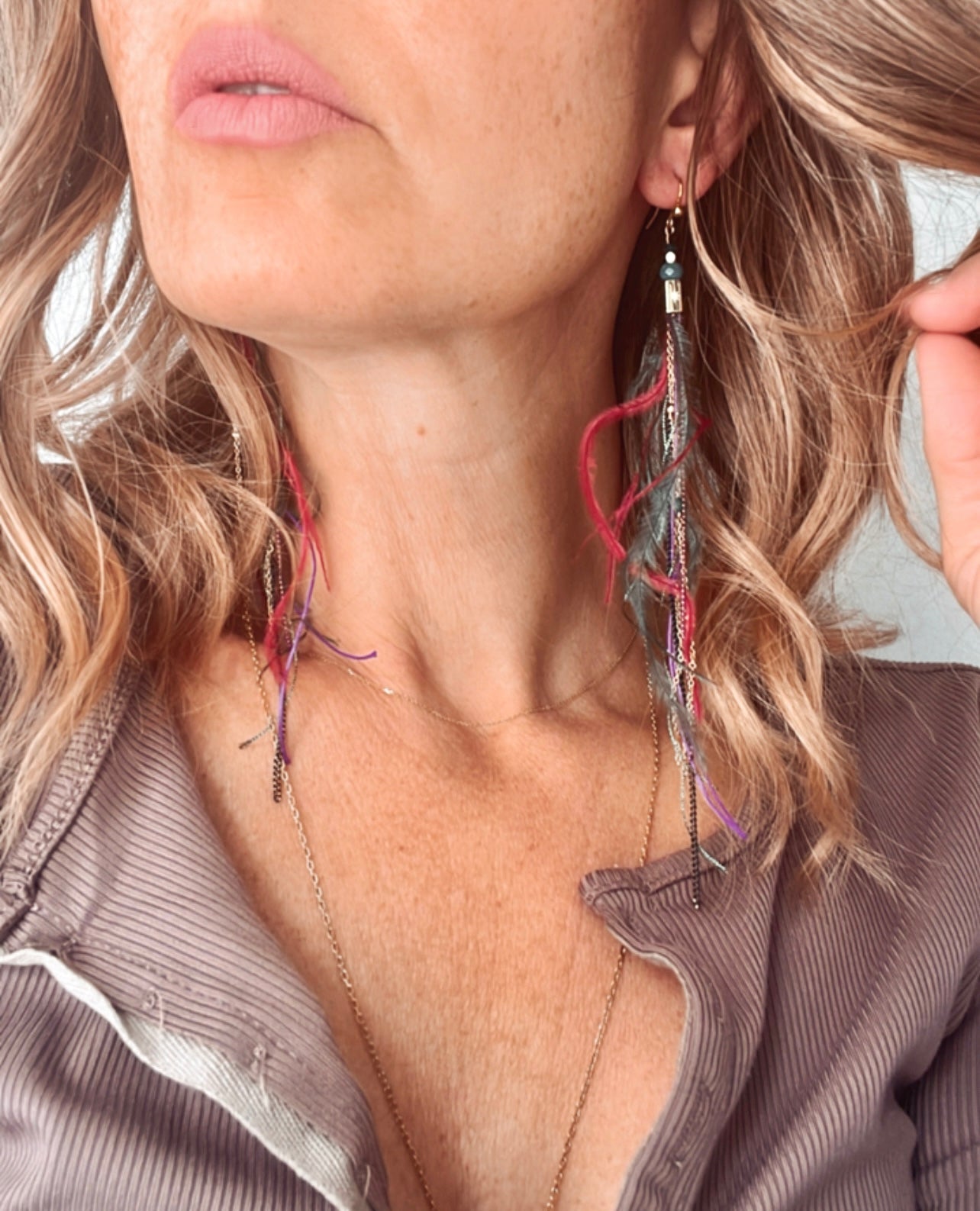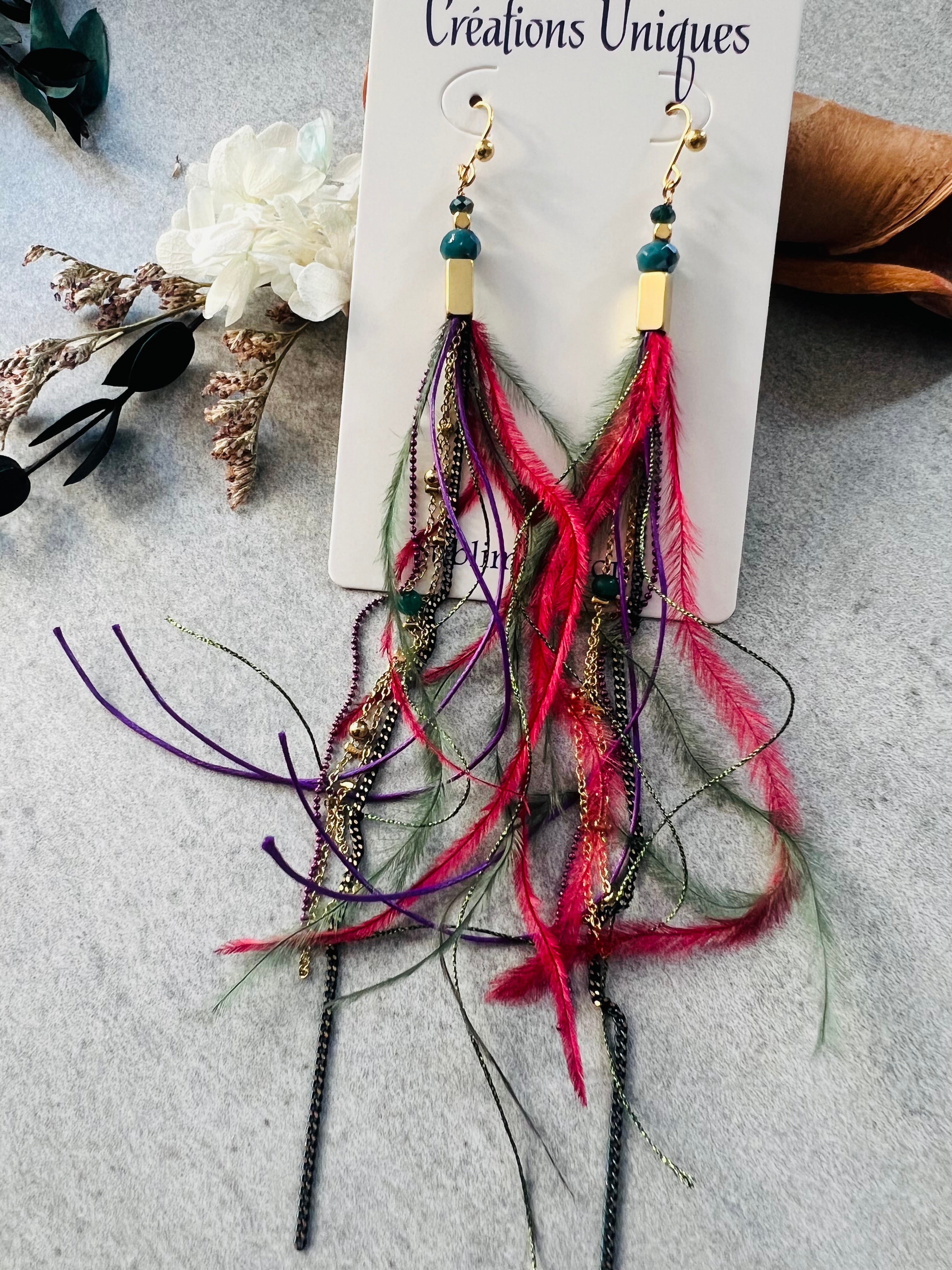 Boucles d’oreilles HAYEM fines plumes multicolores
