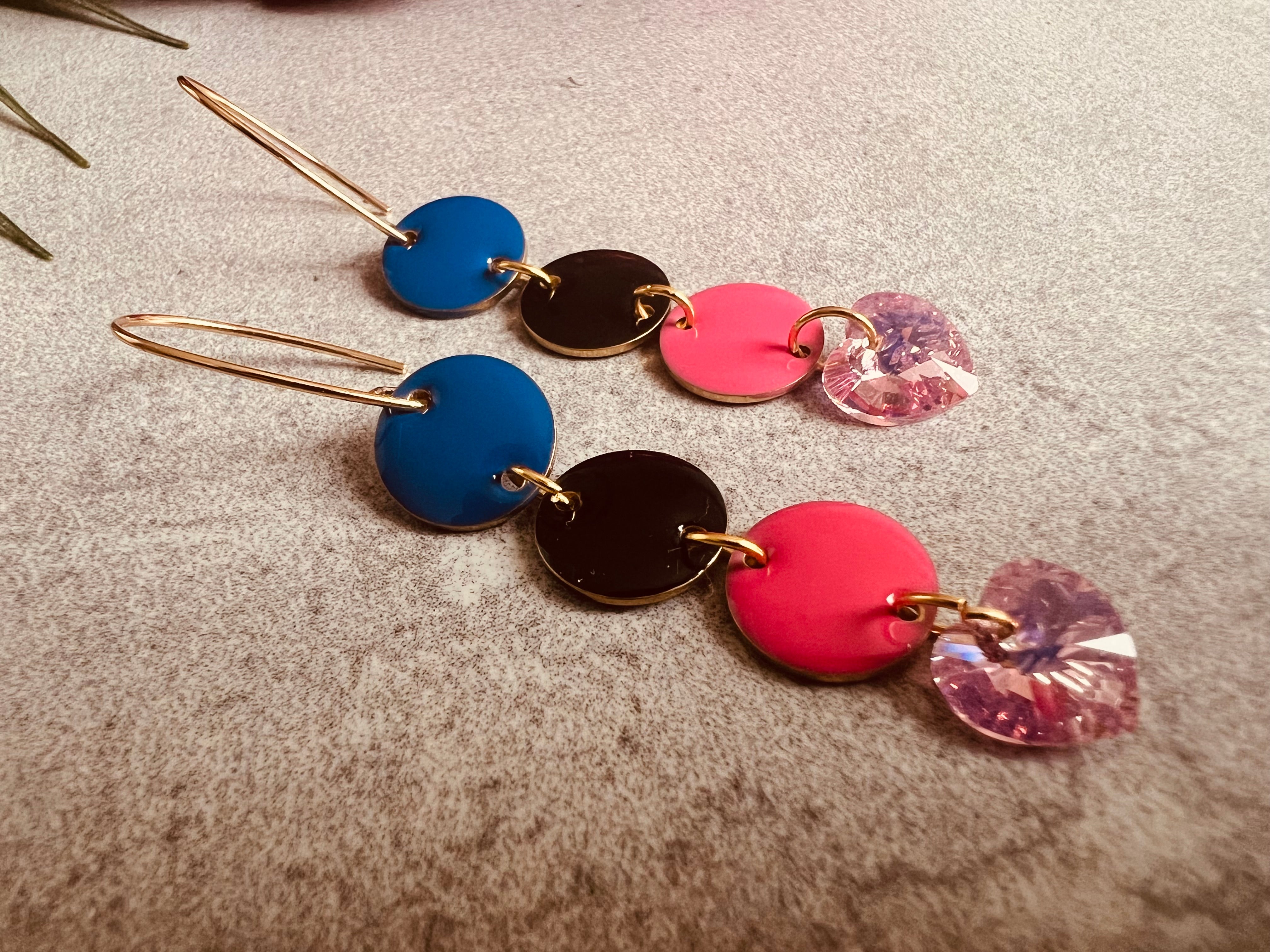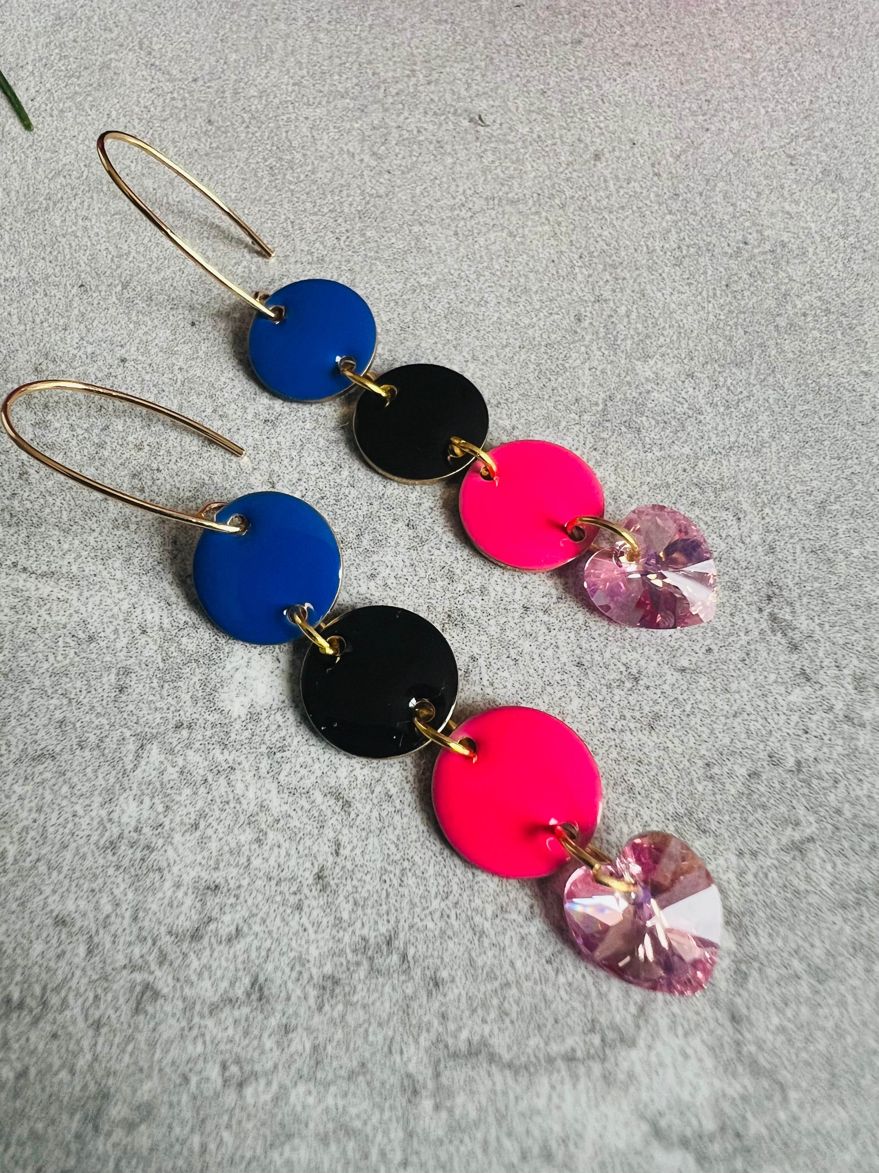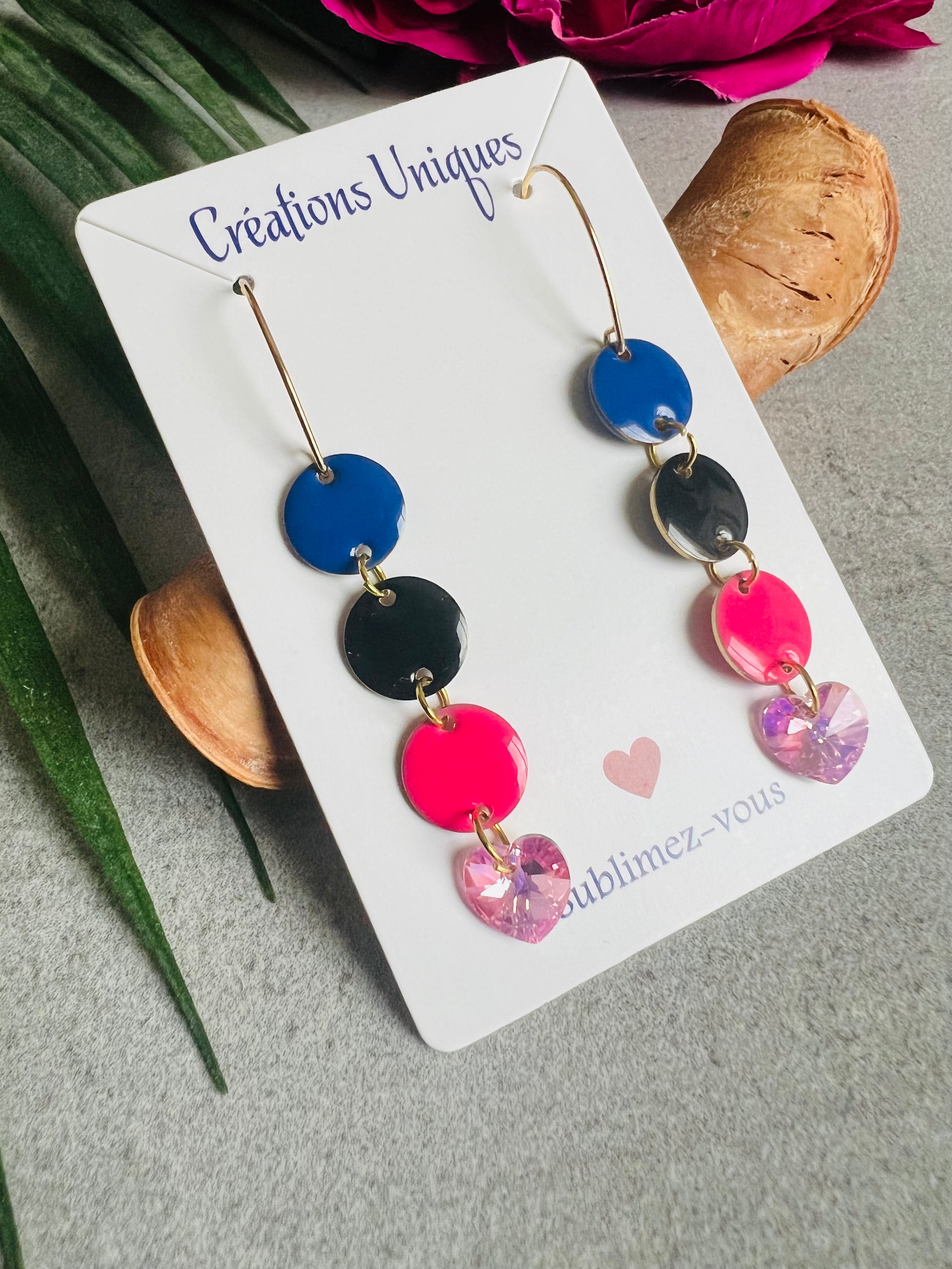 - Bleu marine, noir et rose fluo, finition cœurs Crystal