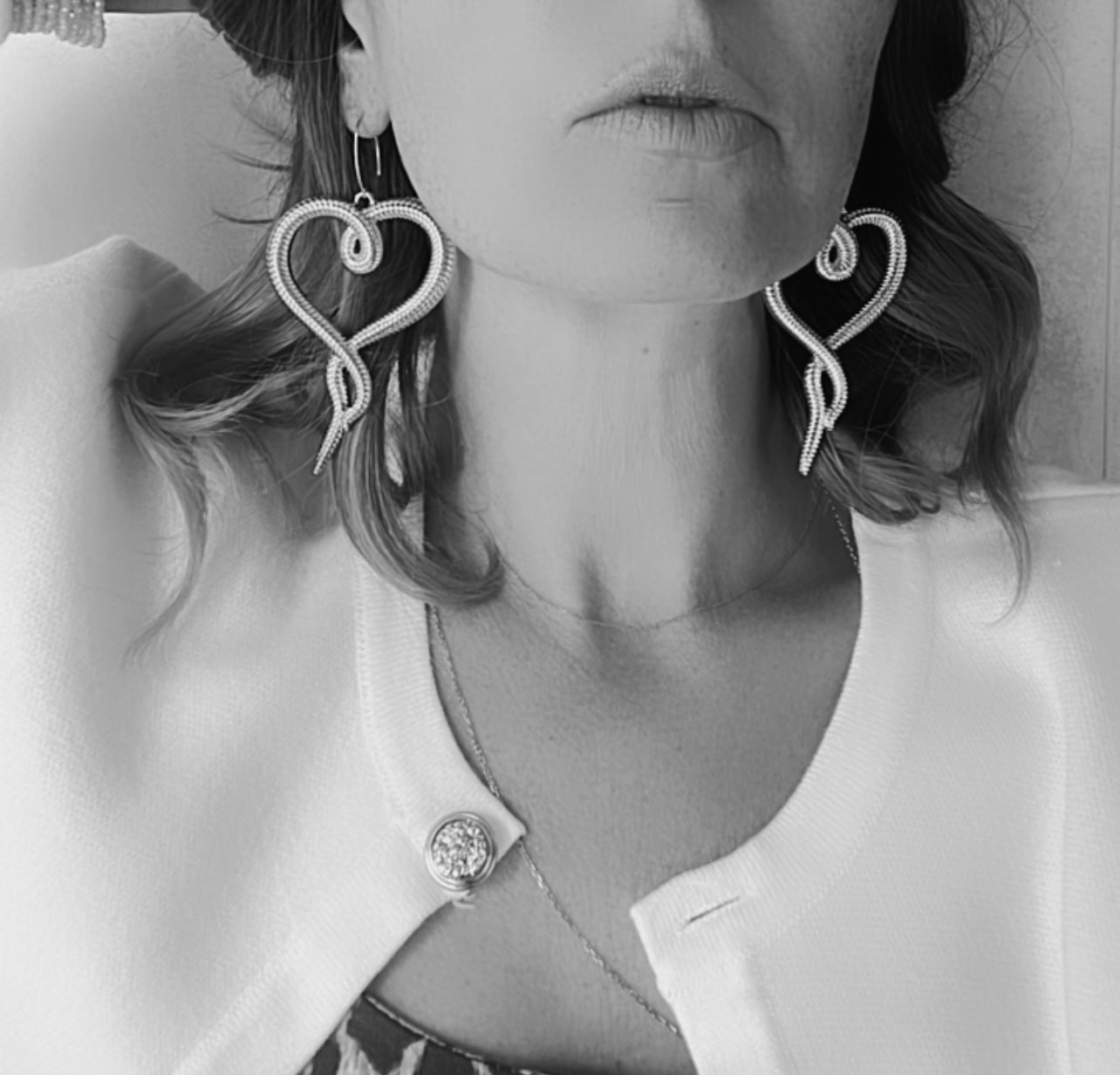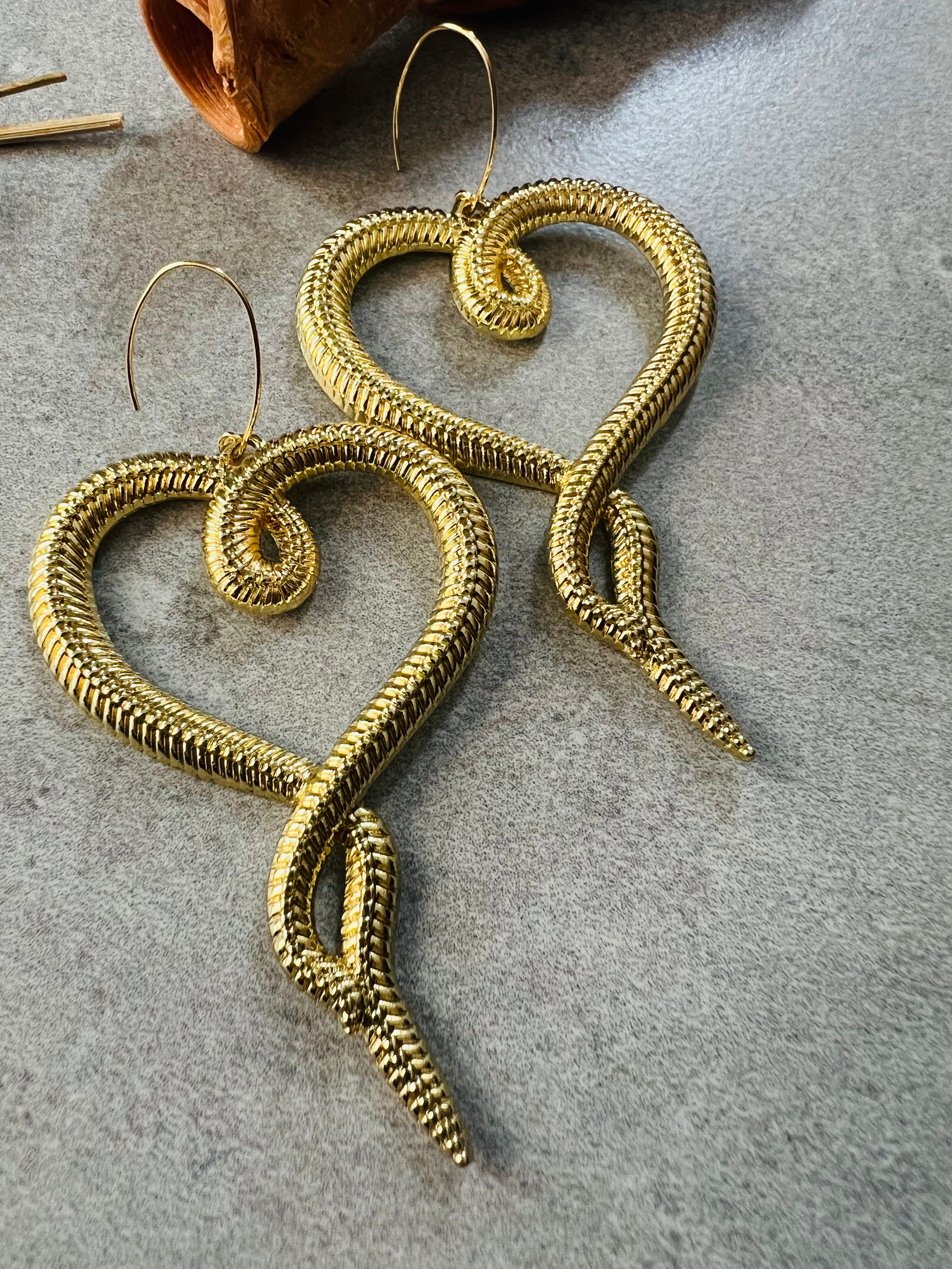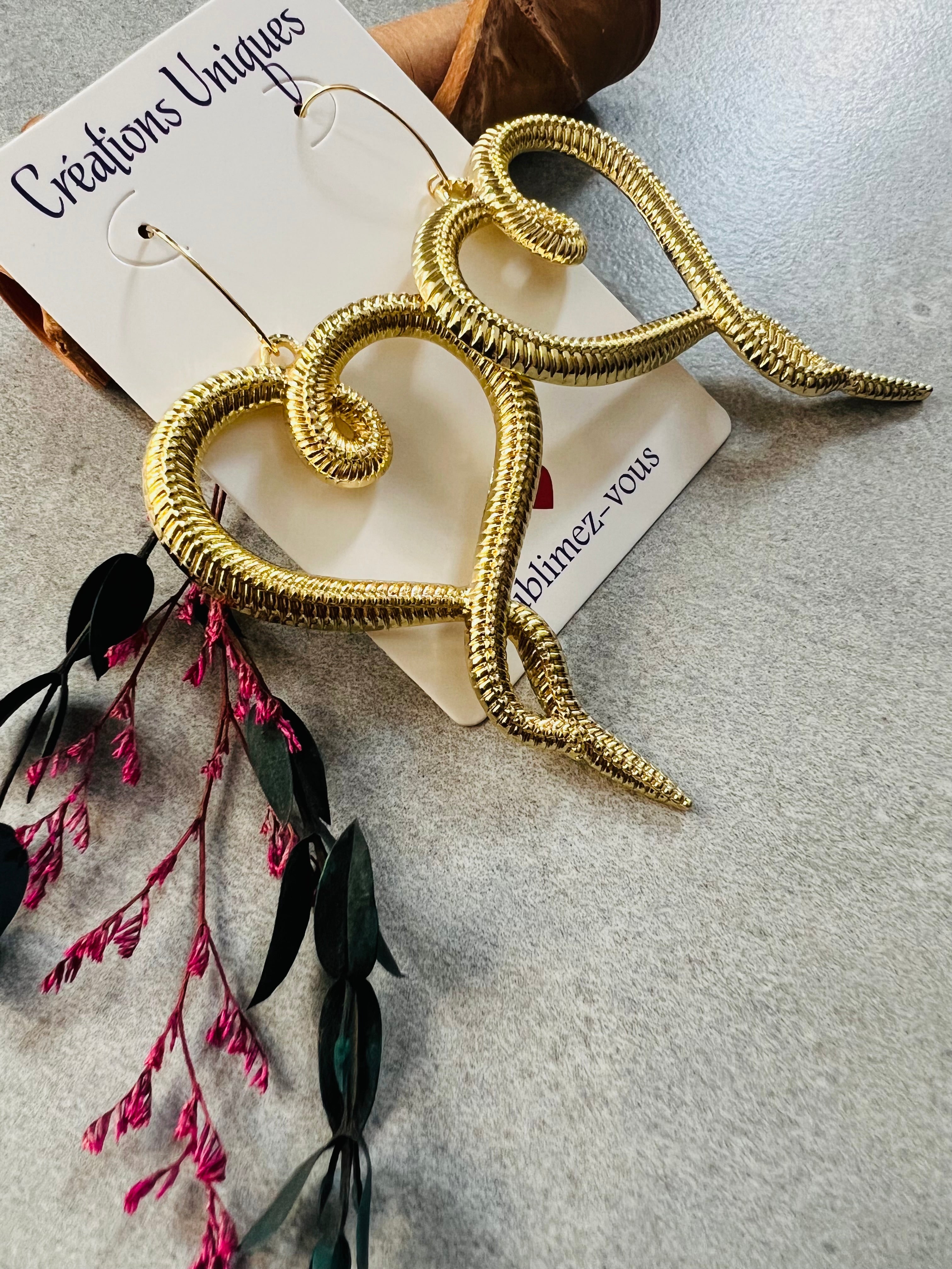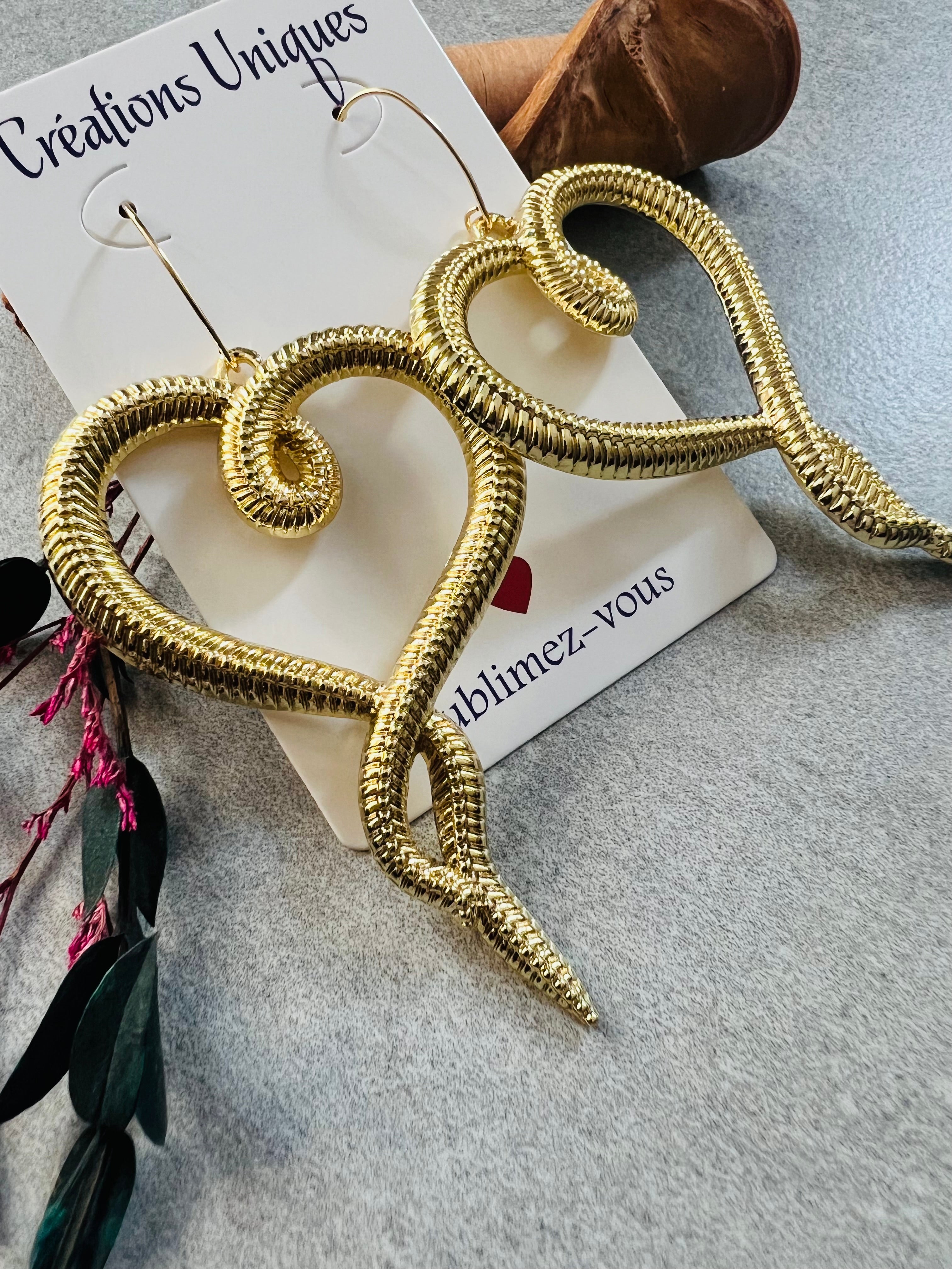 Boucles d’oreilles LILIANE grands cœurs dorés façon serpent