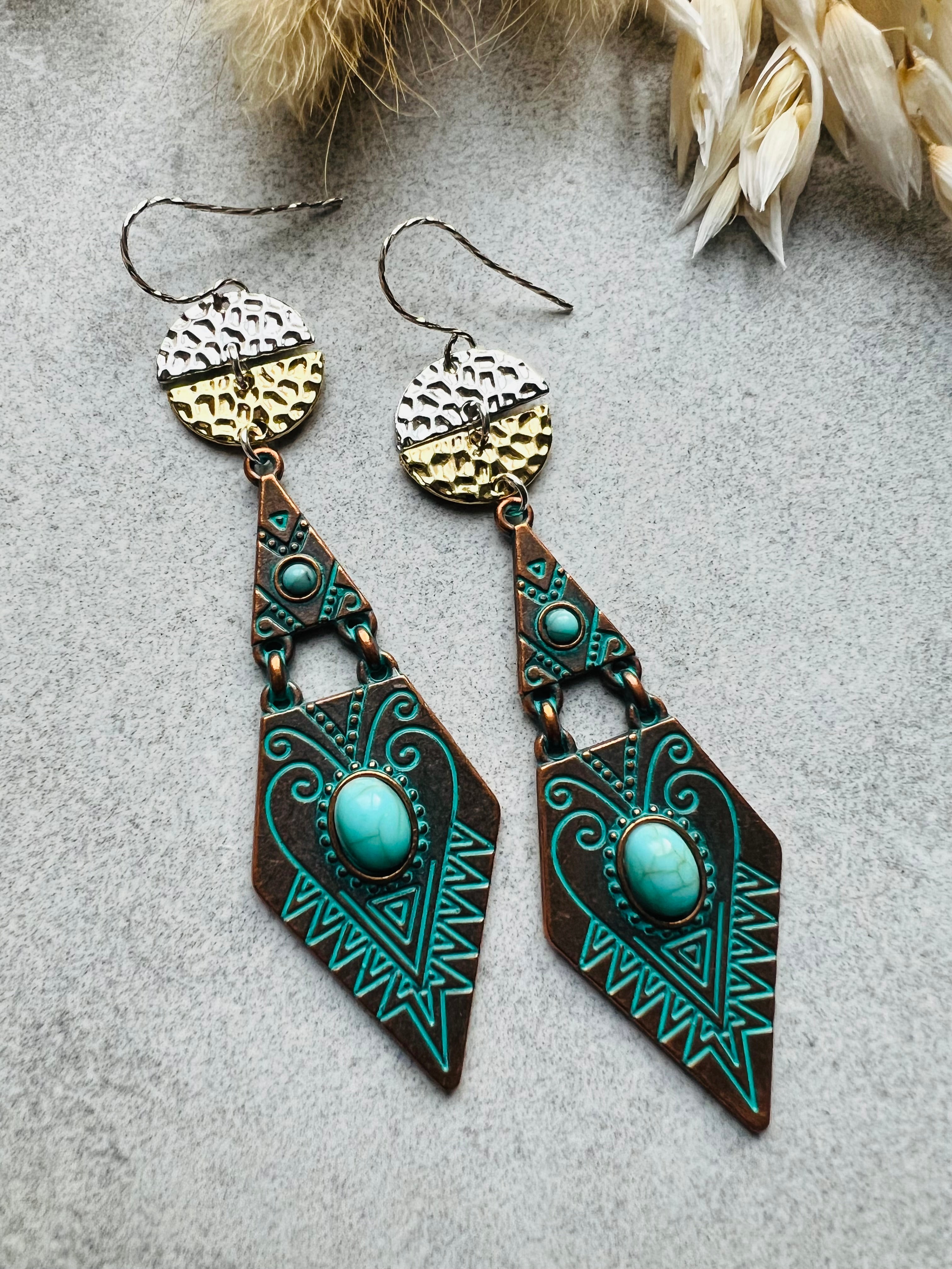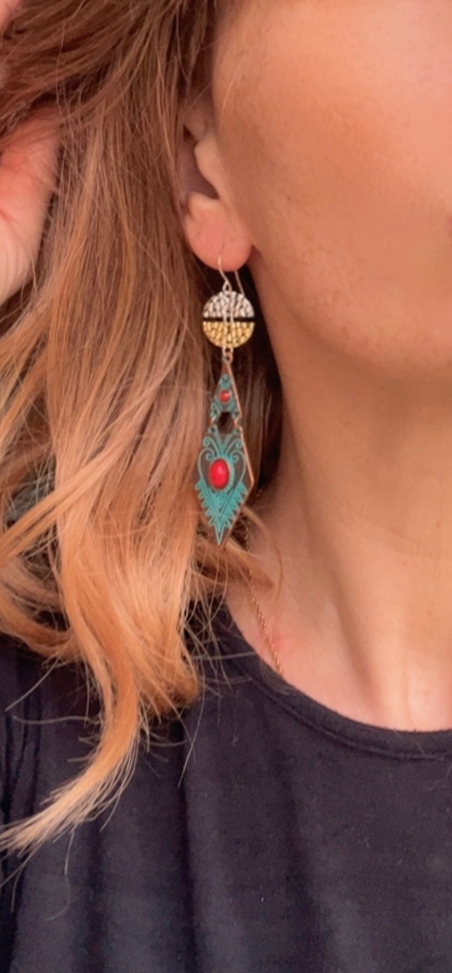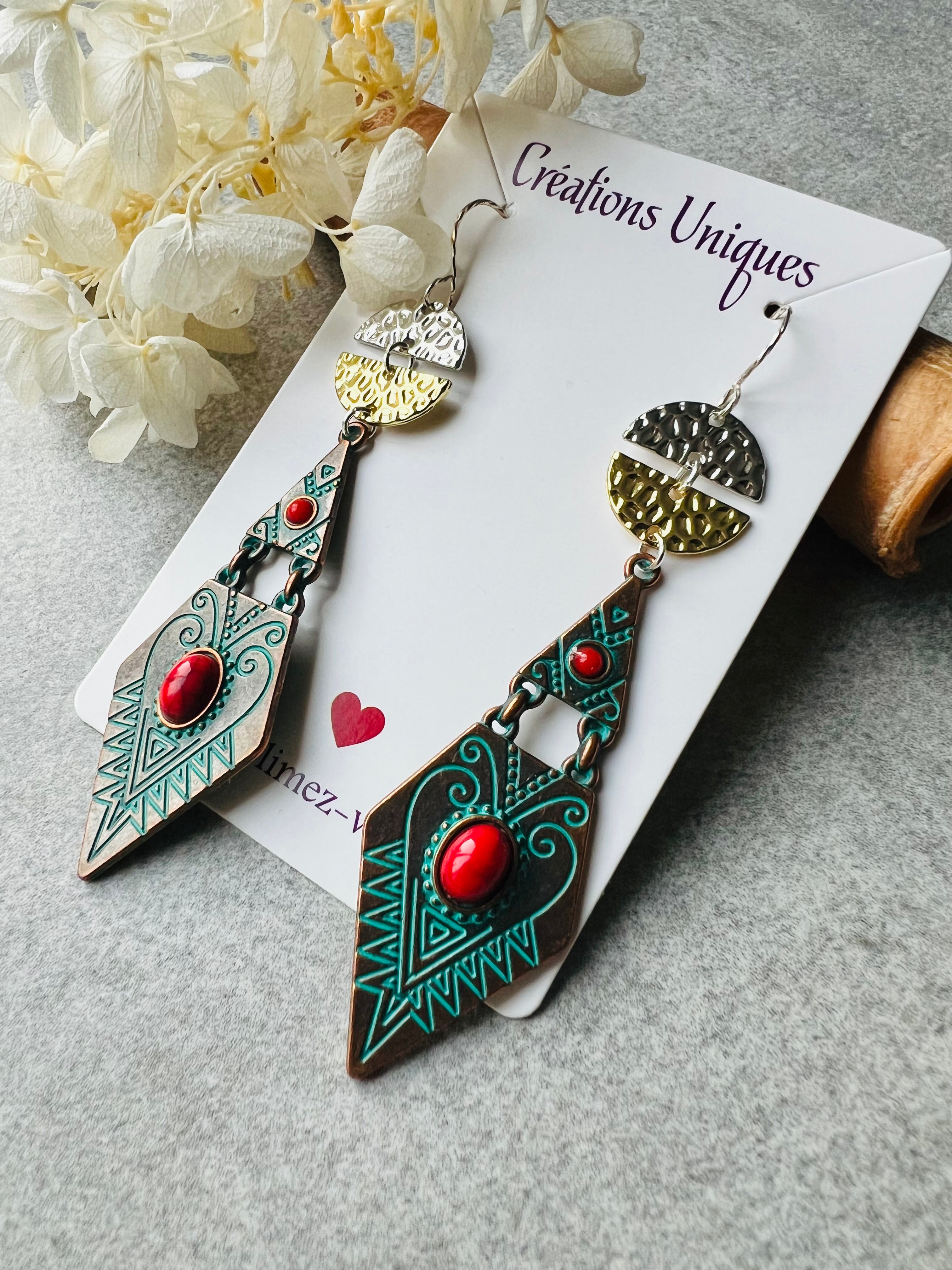 Boucles d’oreilles losanges ethniques femme été ARYA - Créations Uniques