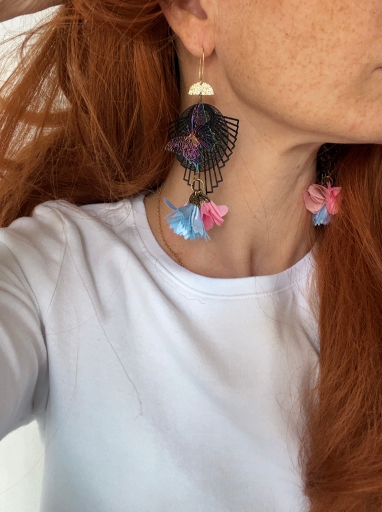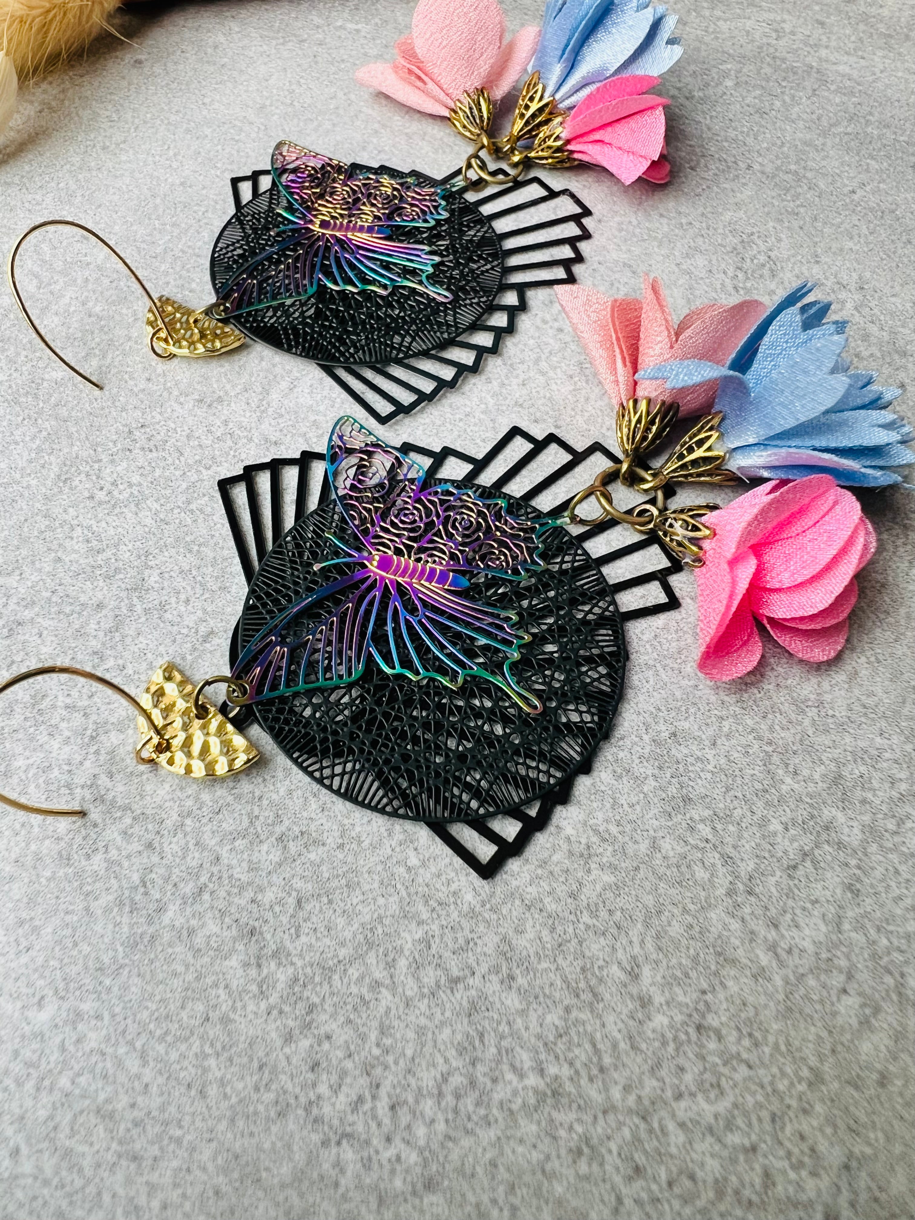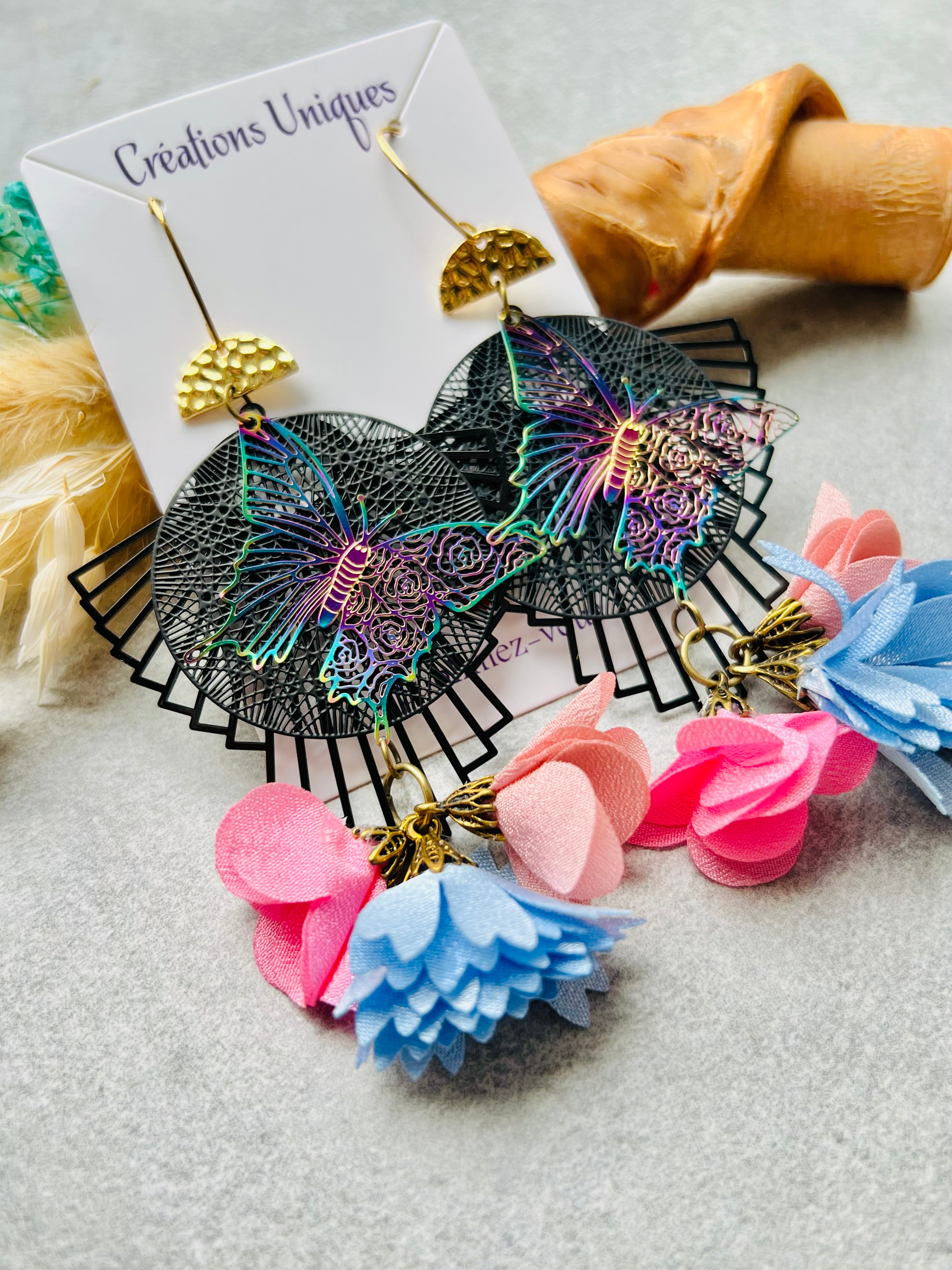 Boucles d’oreilles papillons et pompons style bohème - Créations Uniques