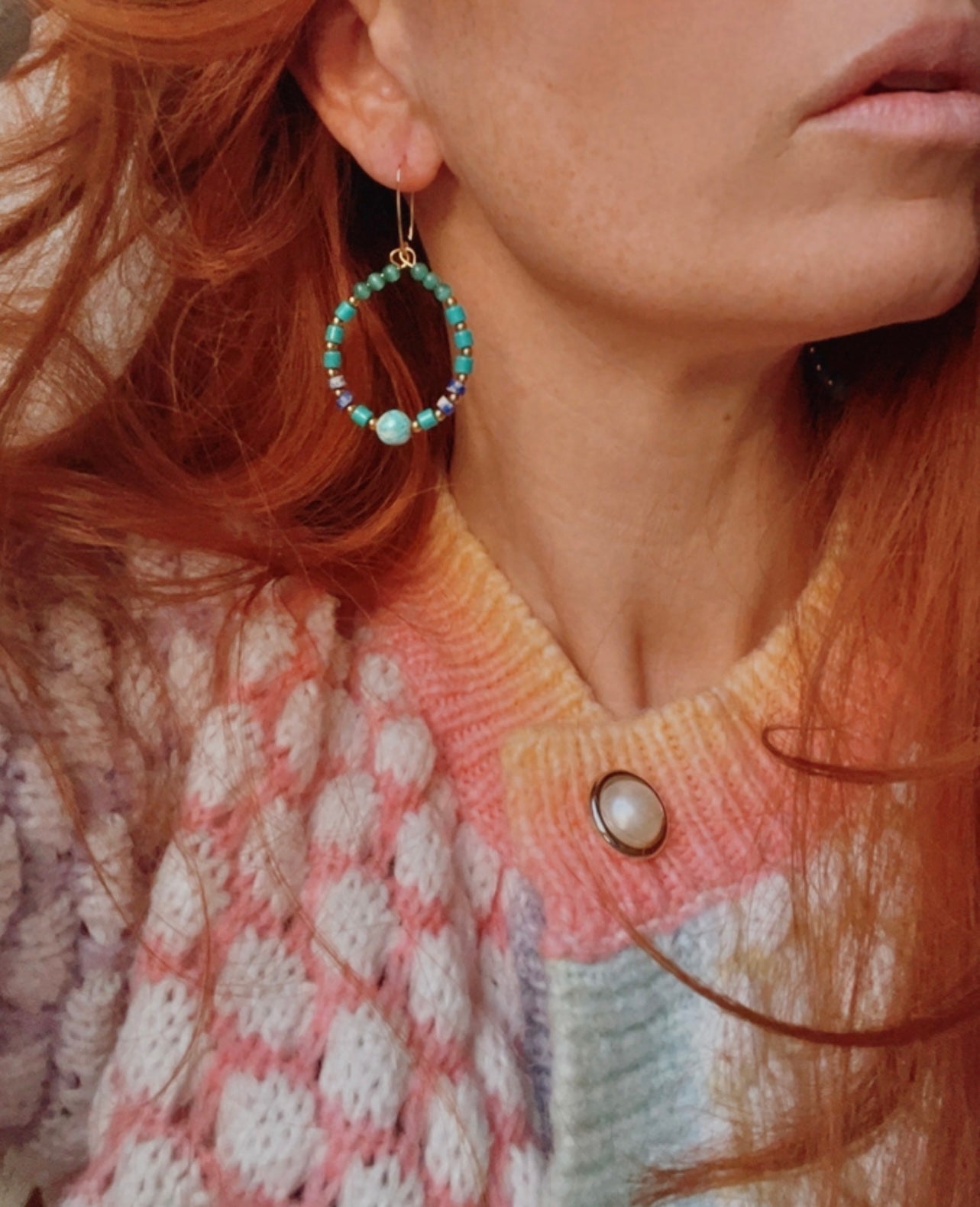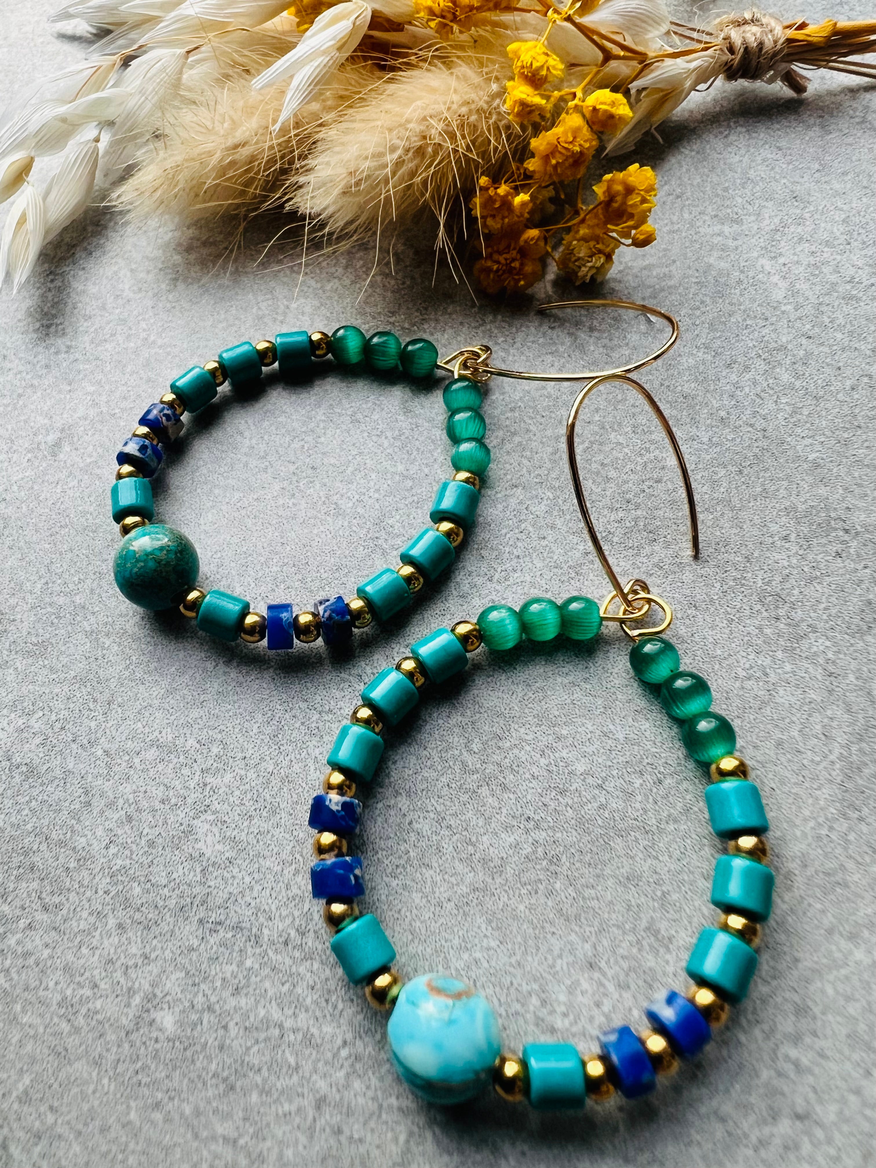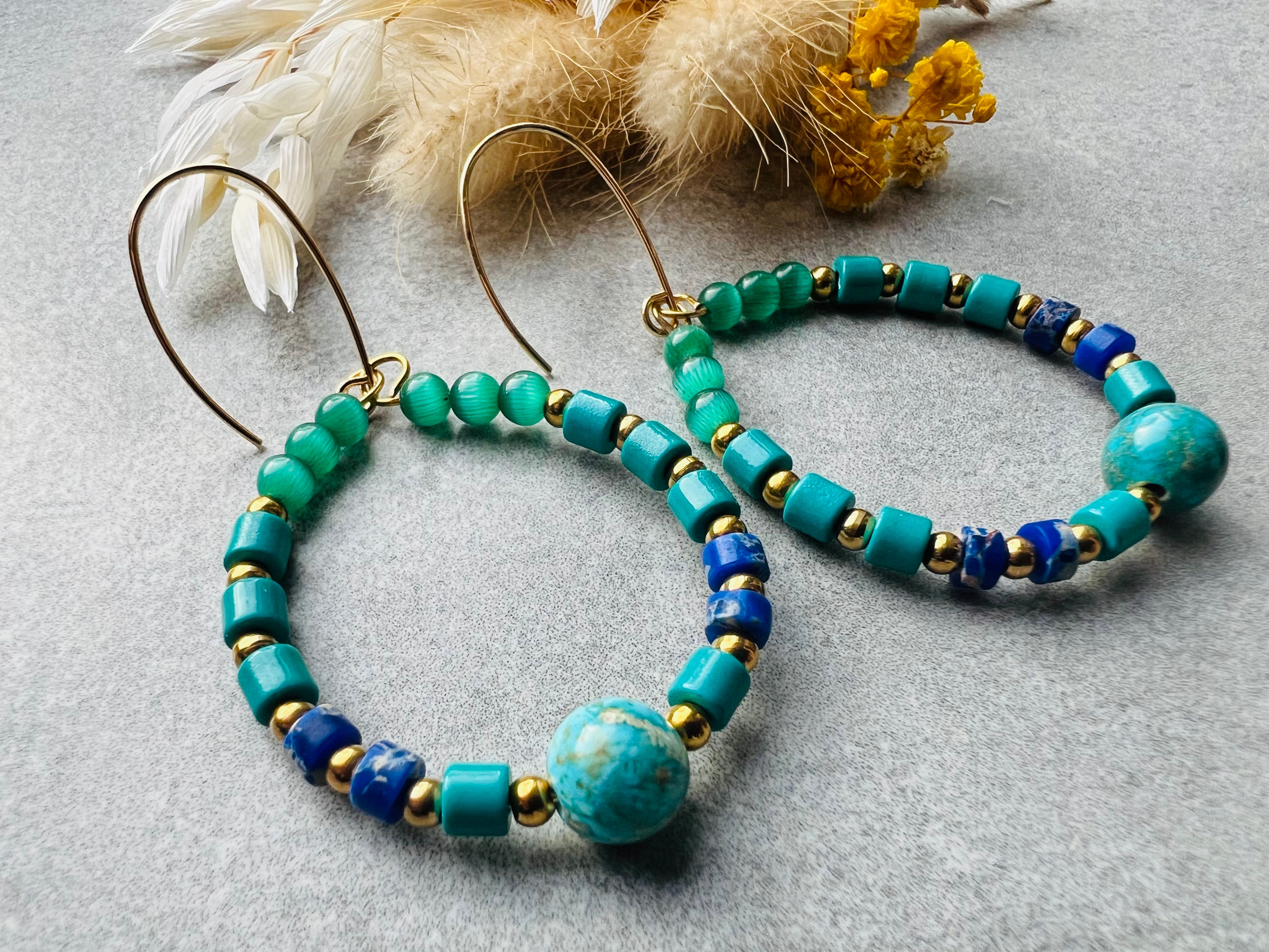 Boucles d’oreilles PHILLIS perles turquoise - Créations Uniques