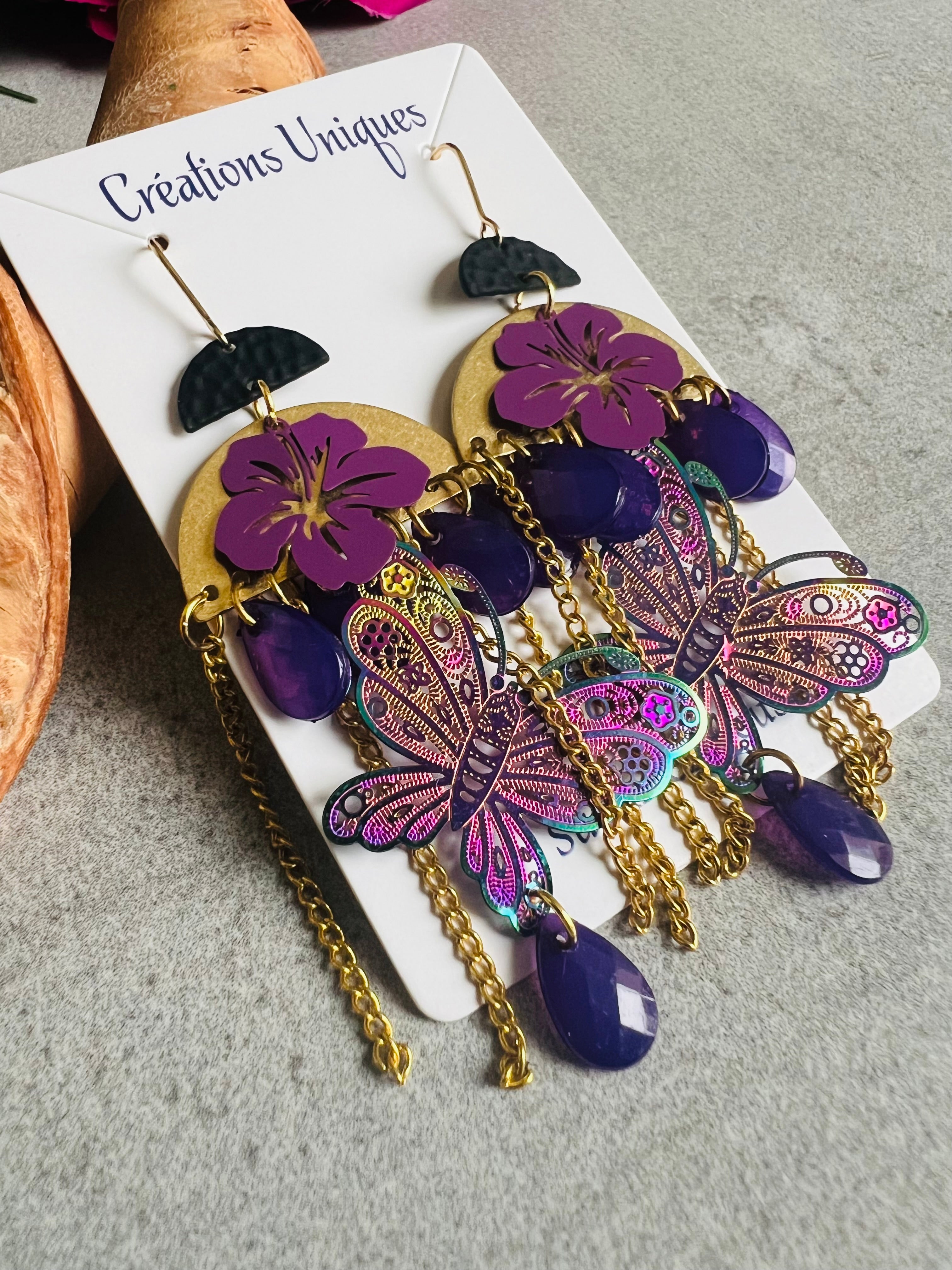 Boucles d’oreilles PURPLE papillons - Créations Uniques