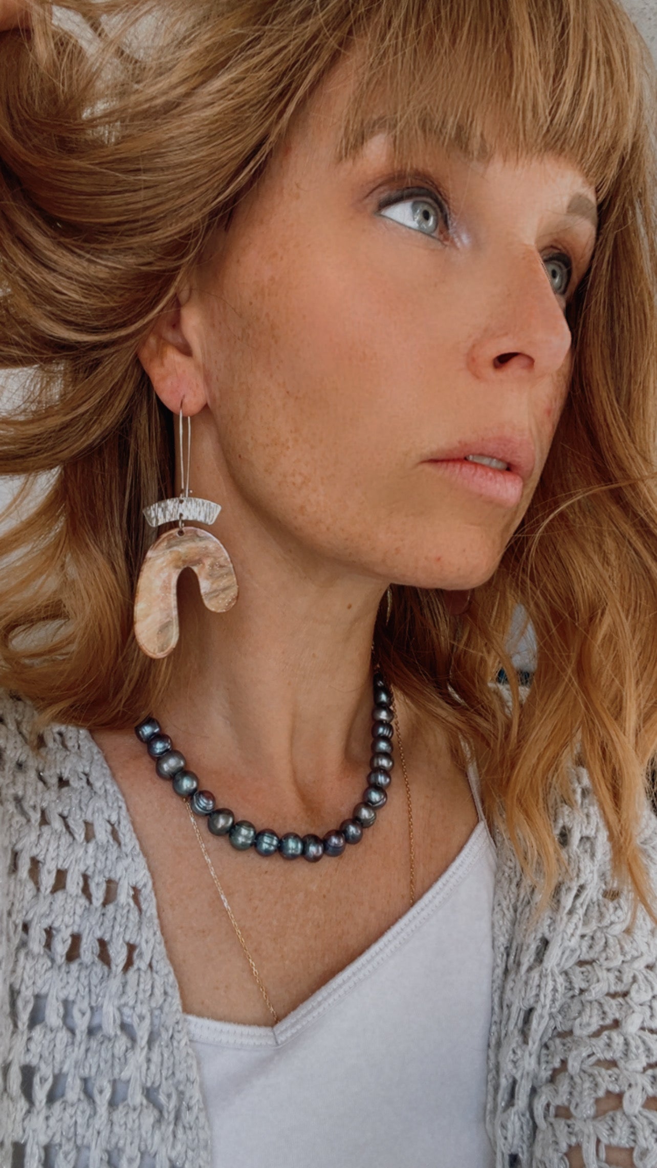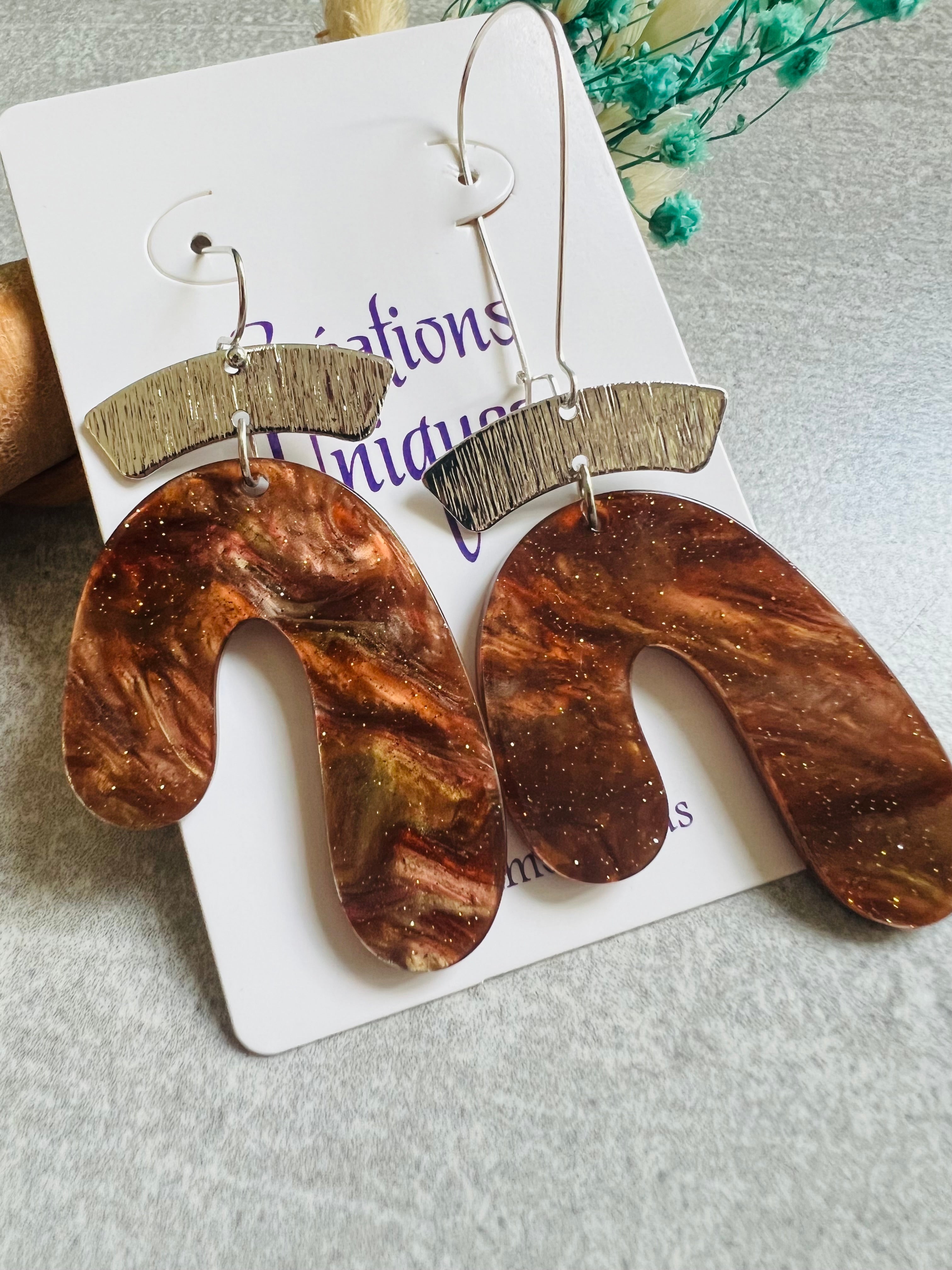 Boucles d’oreilles résine marron pailletée asymétriques - Créations Uniques