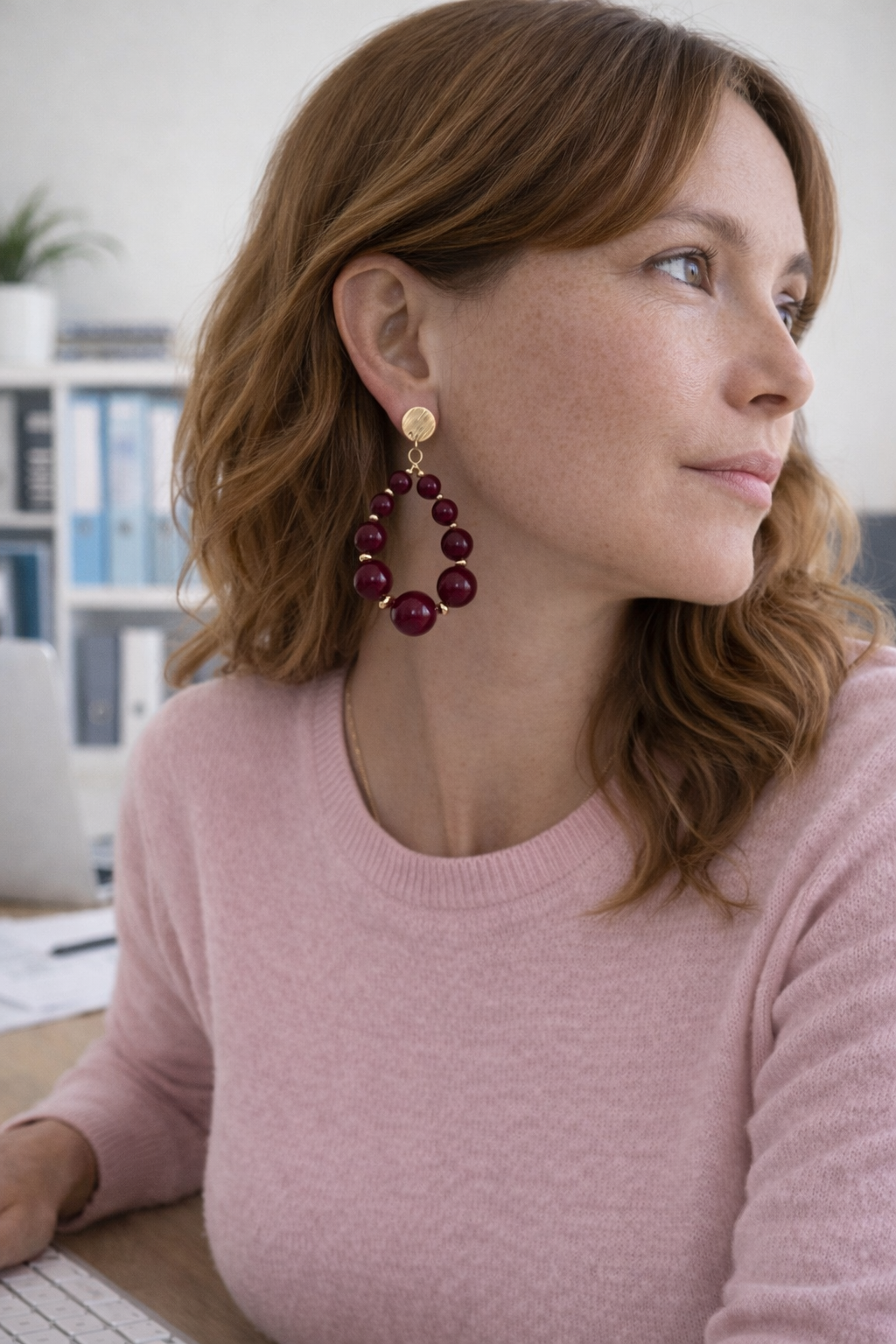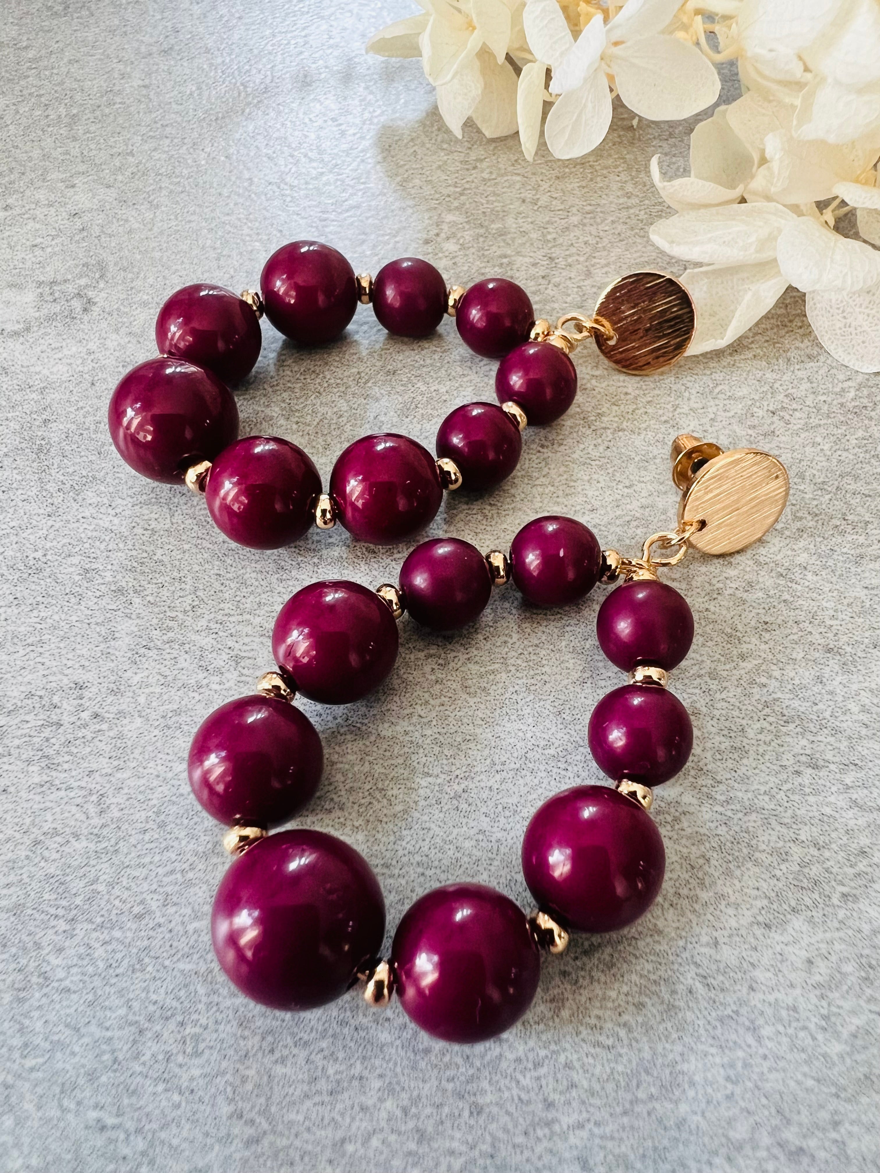Boucles d’oreilles STEFANIA perles aubergine - Créations Uniques