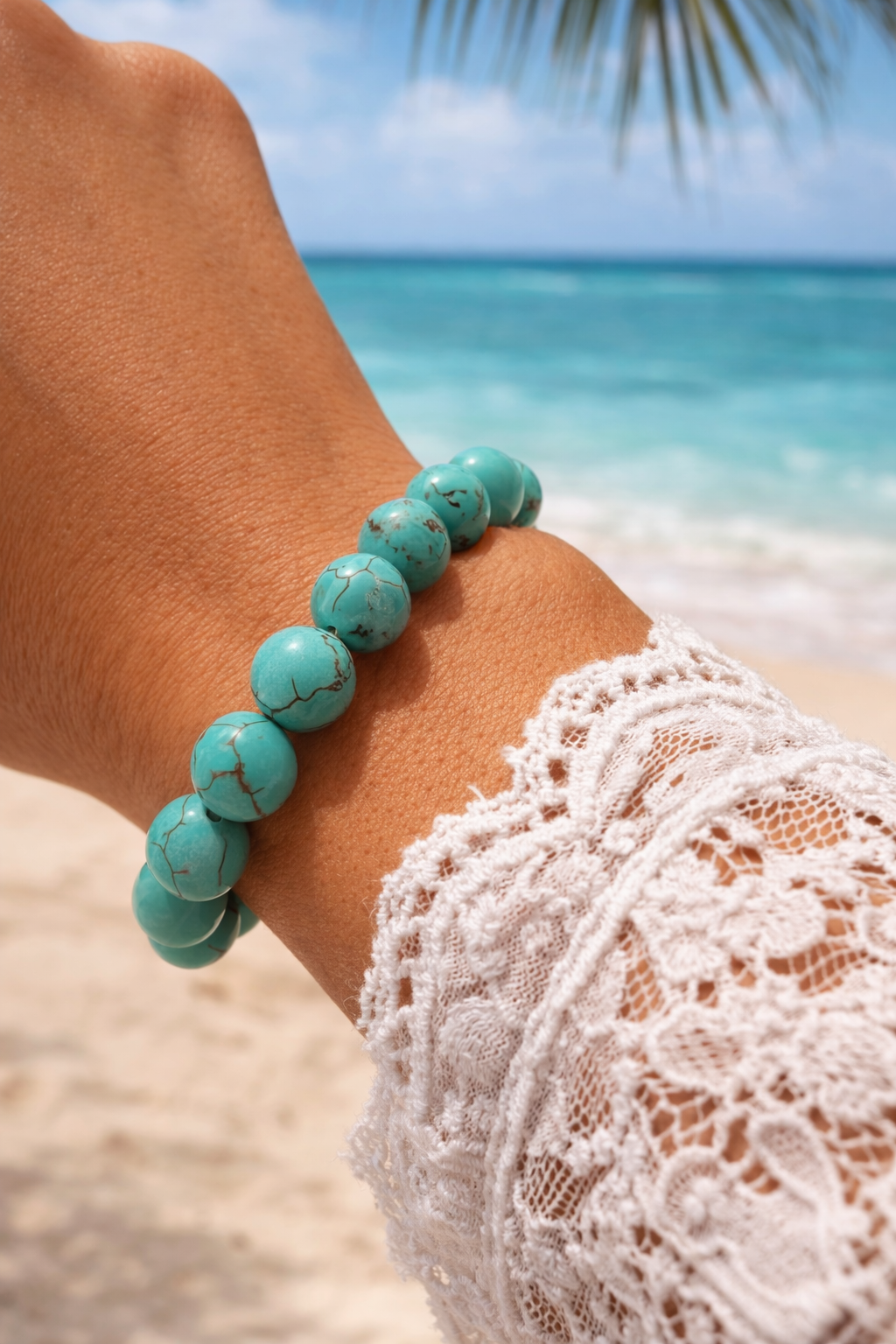 Bracelet perles bleu turquoise 8 mm style bohème femme été