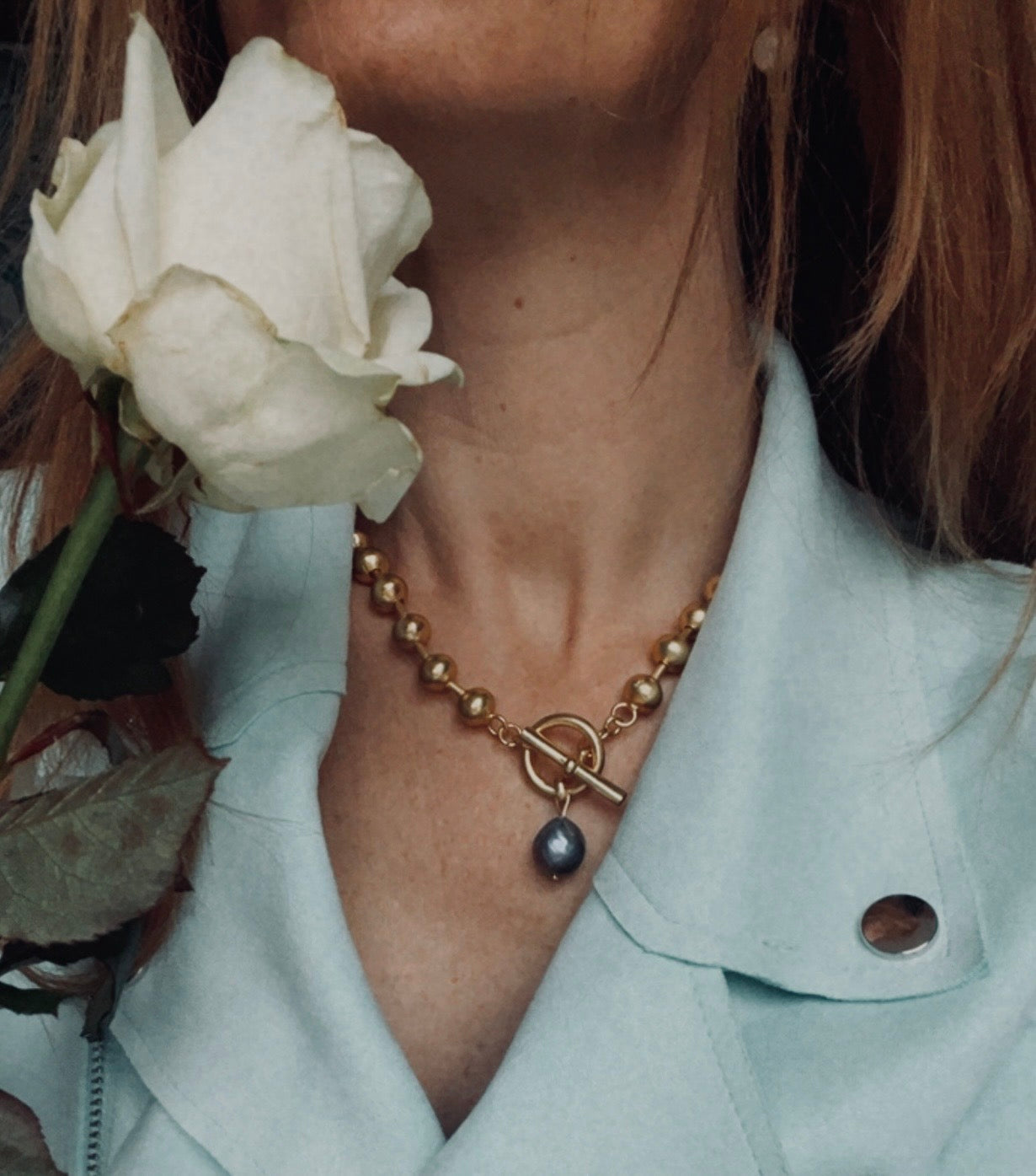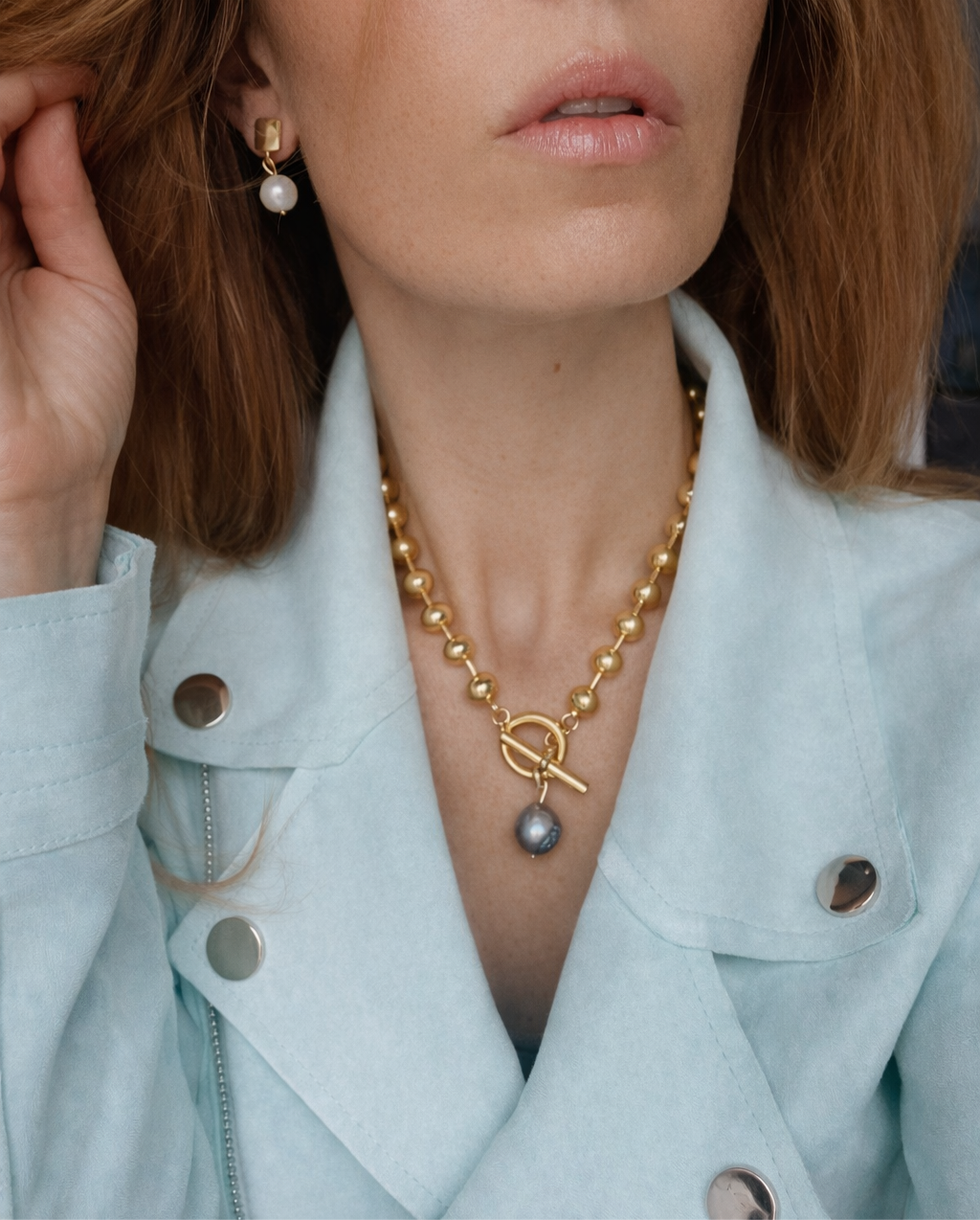 N73520 Collier chaîne perlée perle paon - Karine Sultan