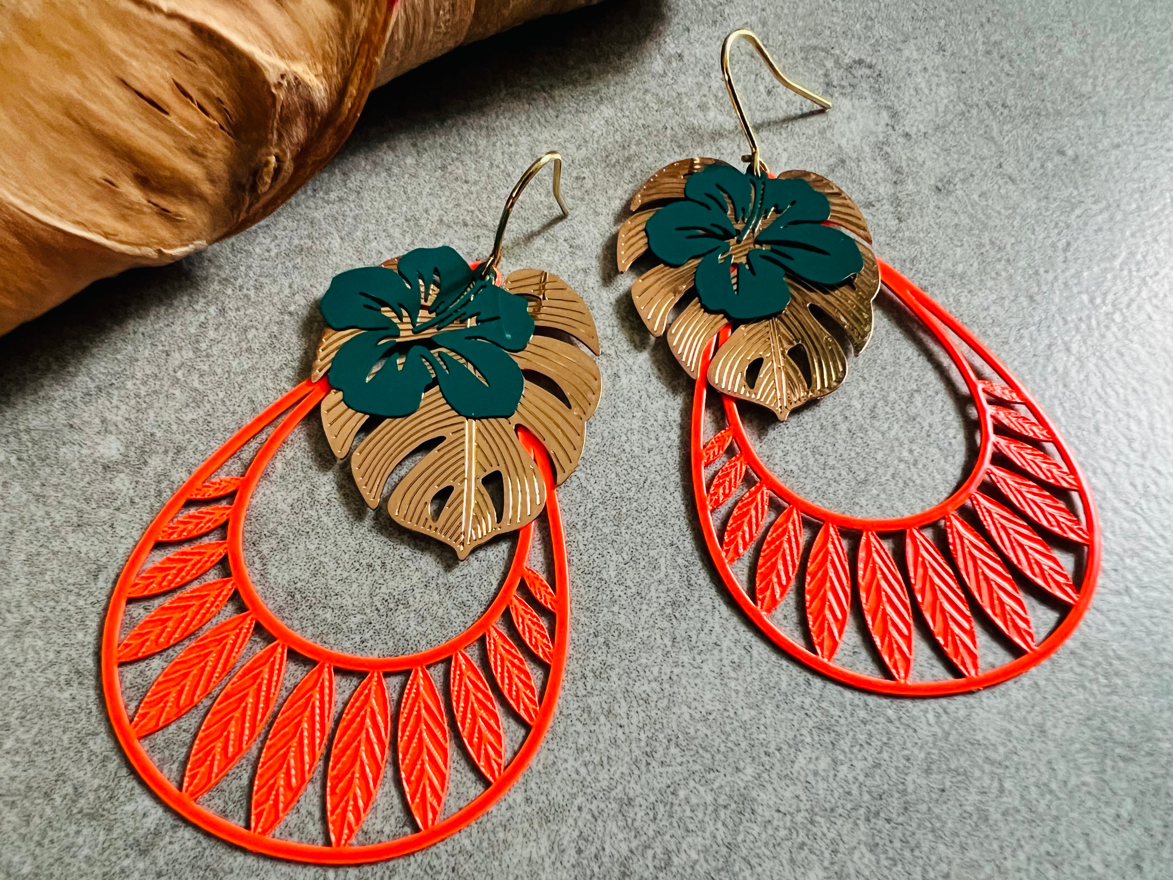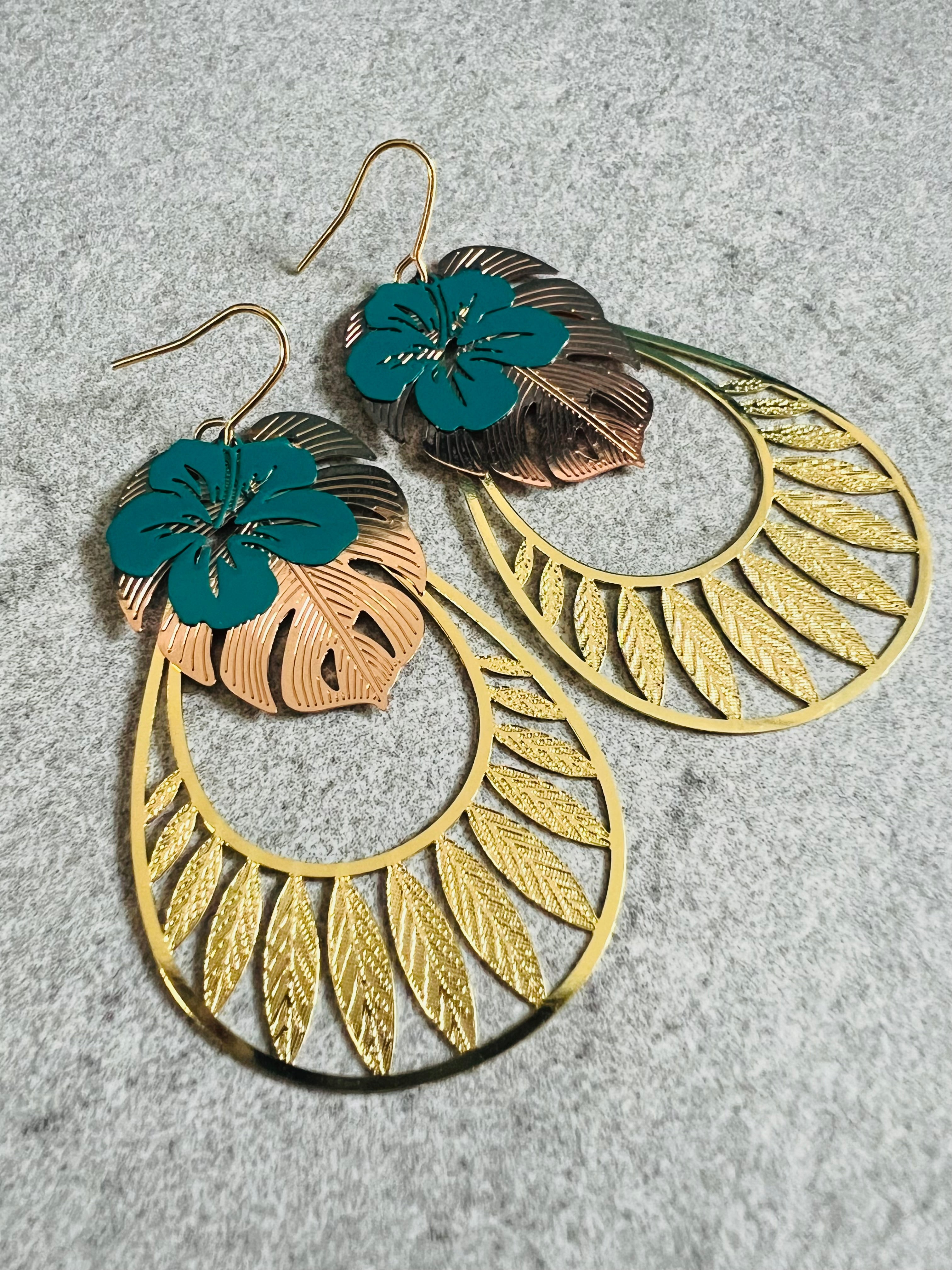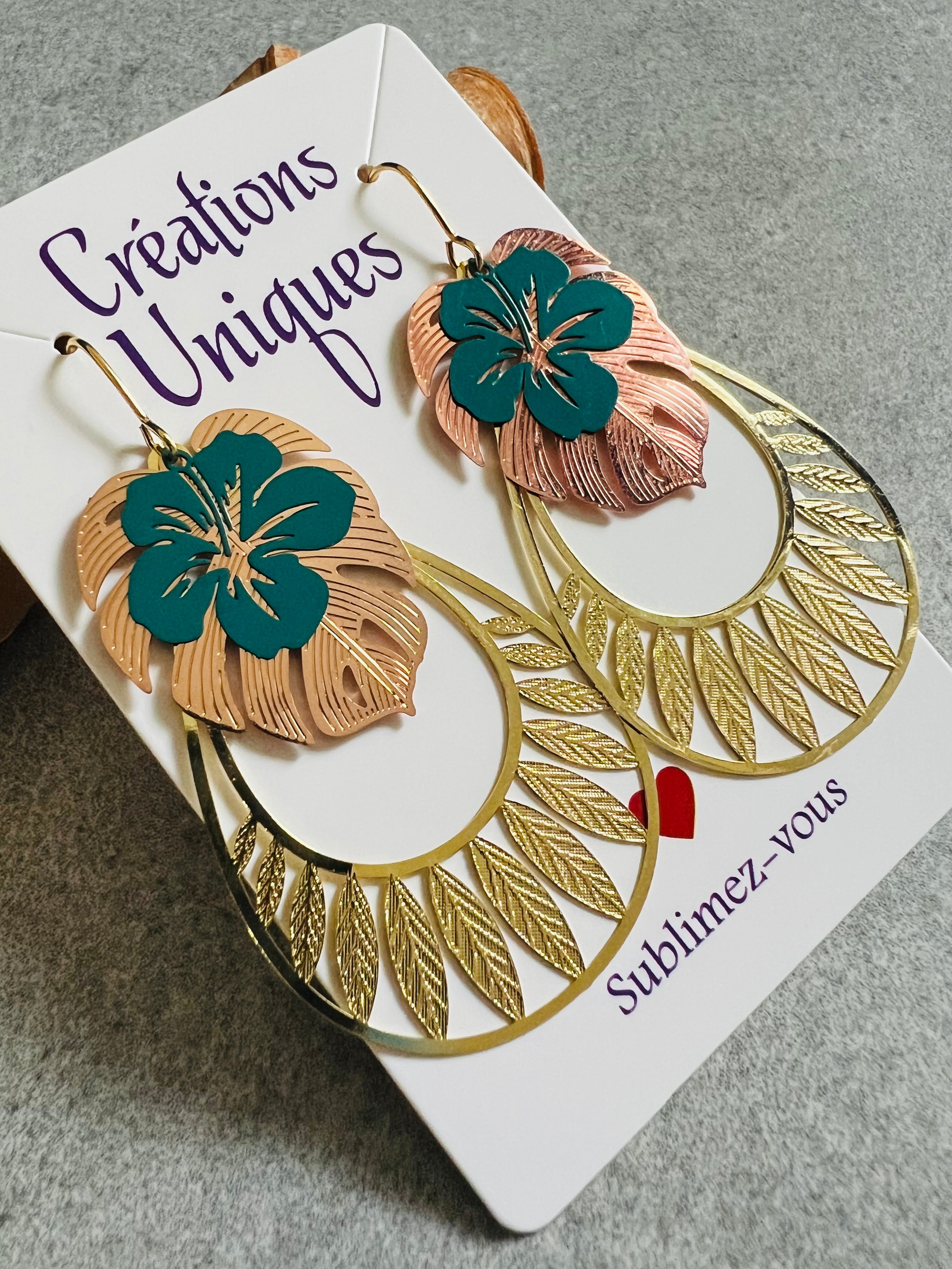 Boucles d’oreilles LUANA feuilles tropiques - Créations Uniques
