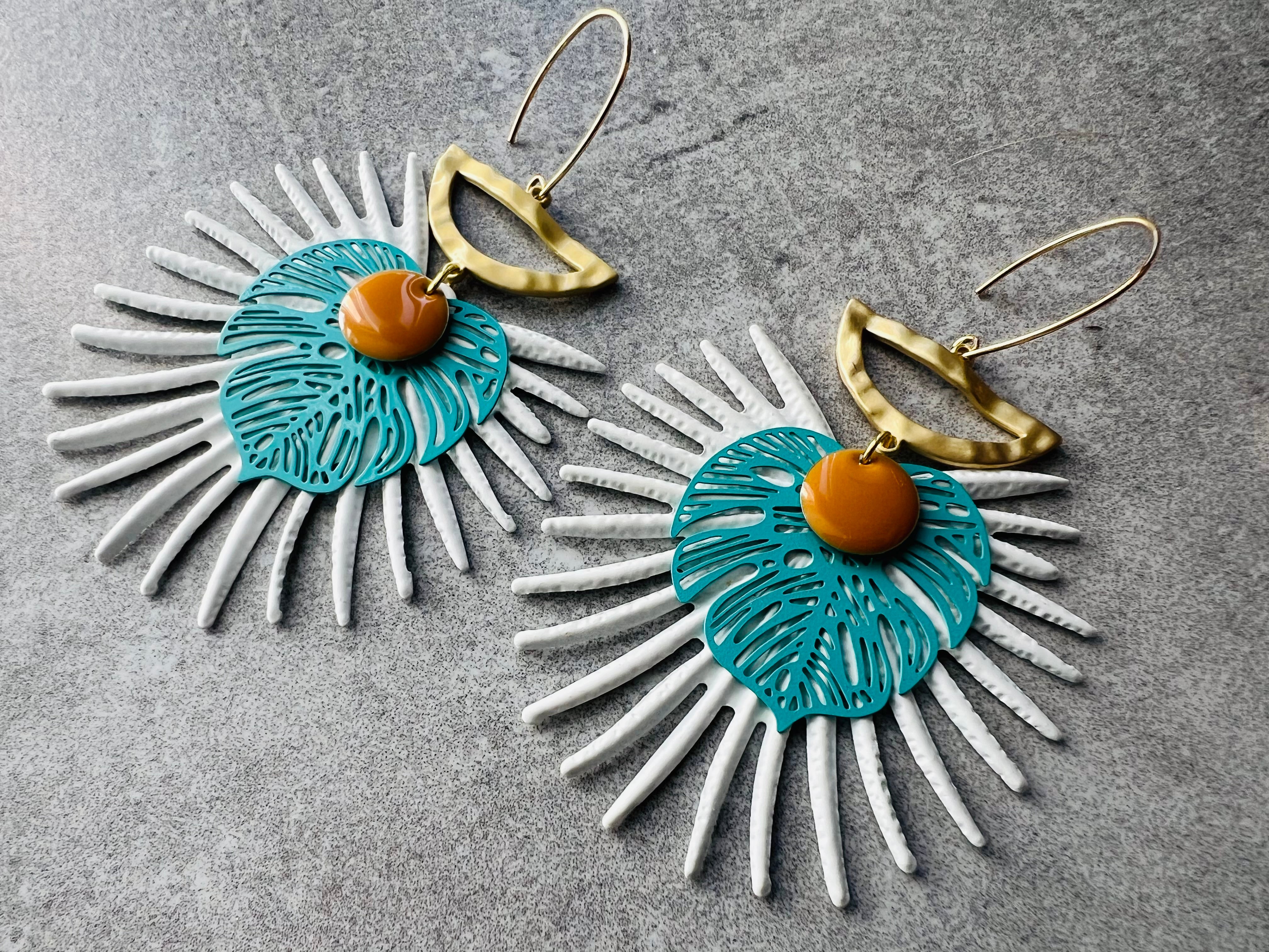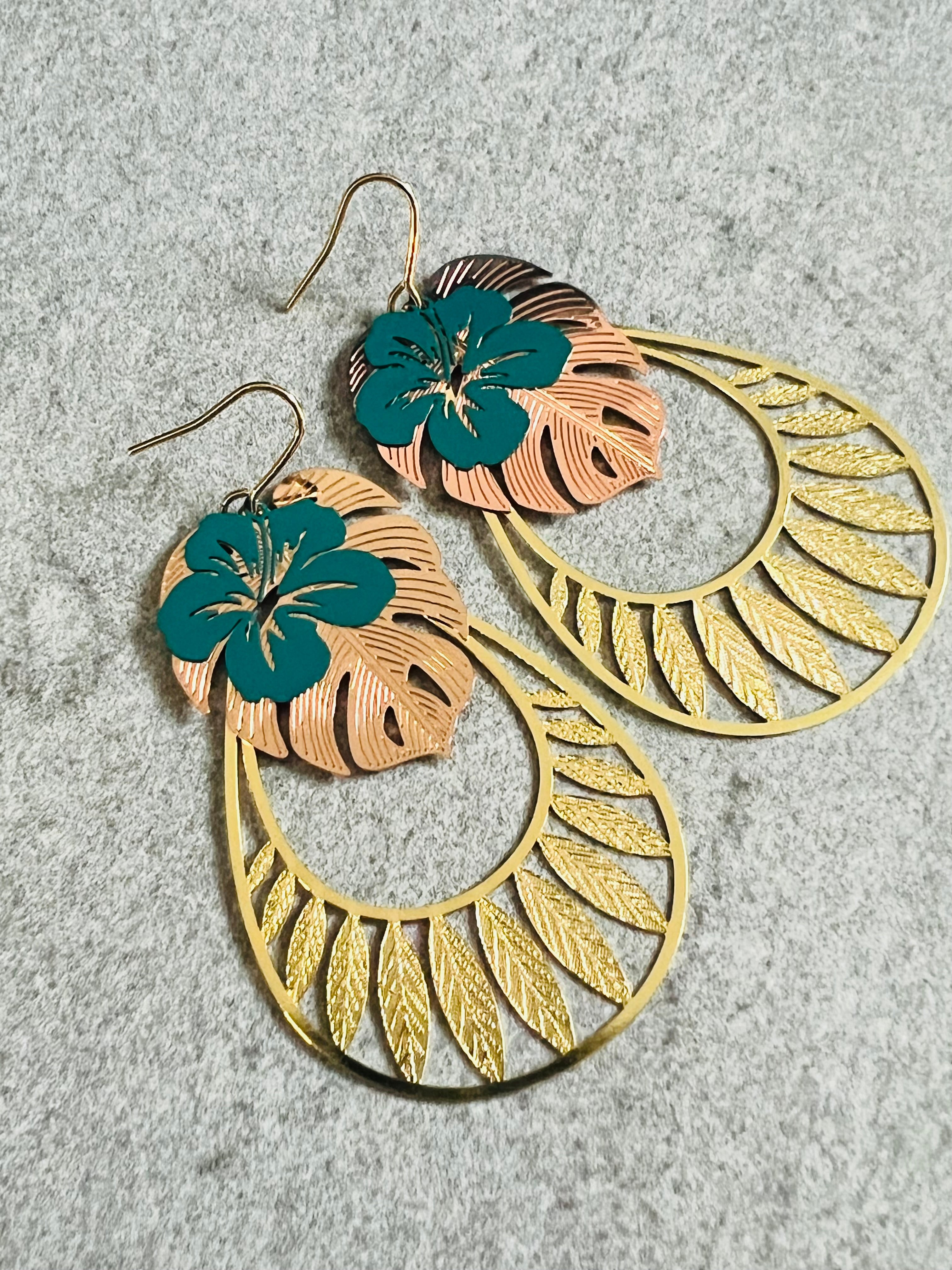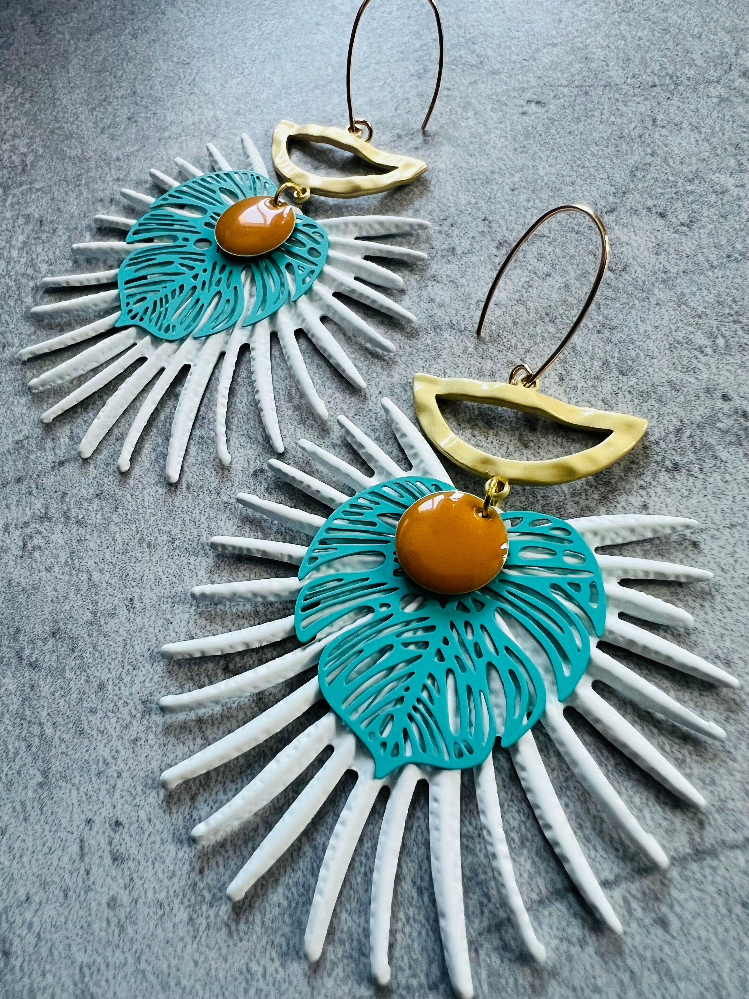 Boucles d’oreilles LUANA feuilles tropiques - Créations Uniques