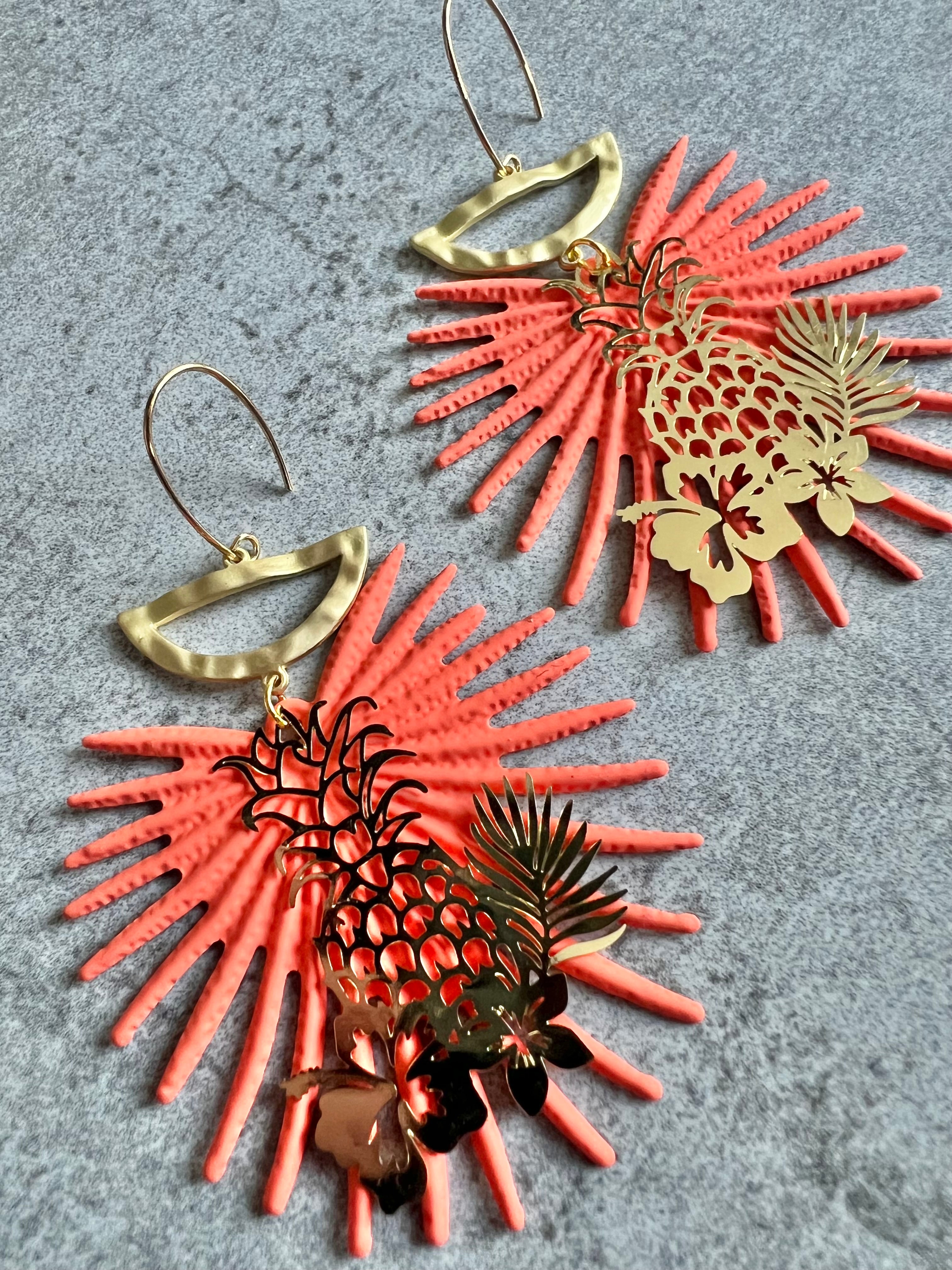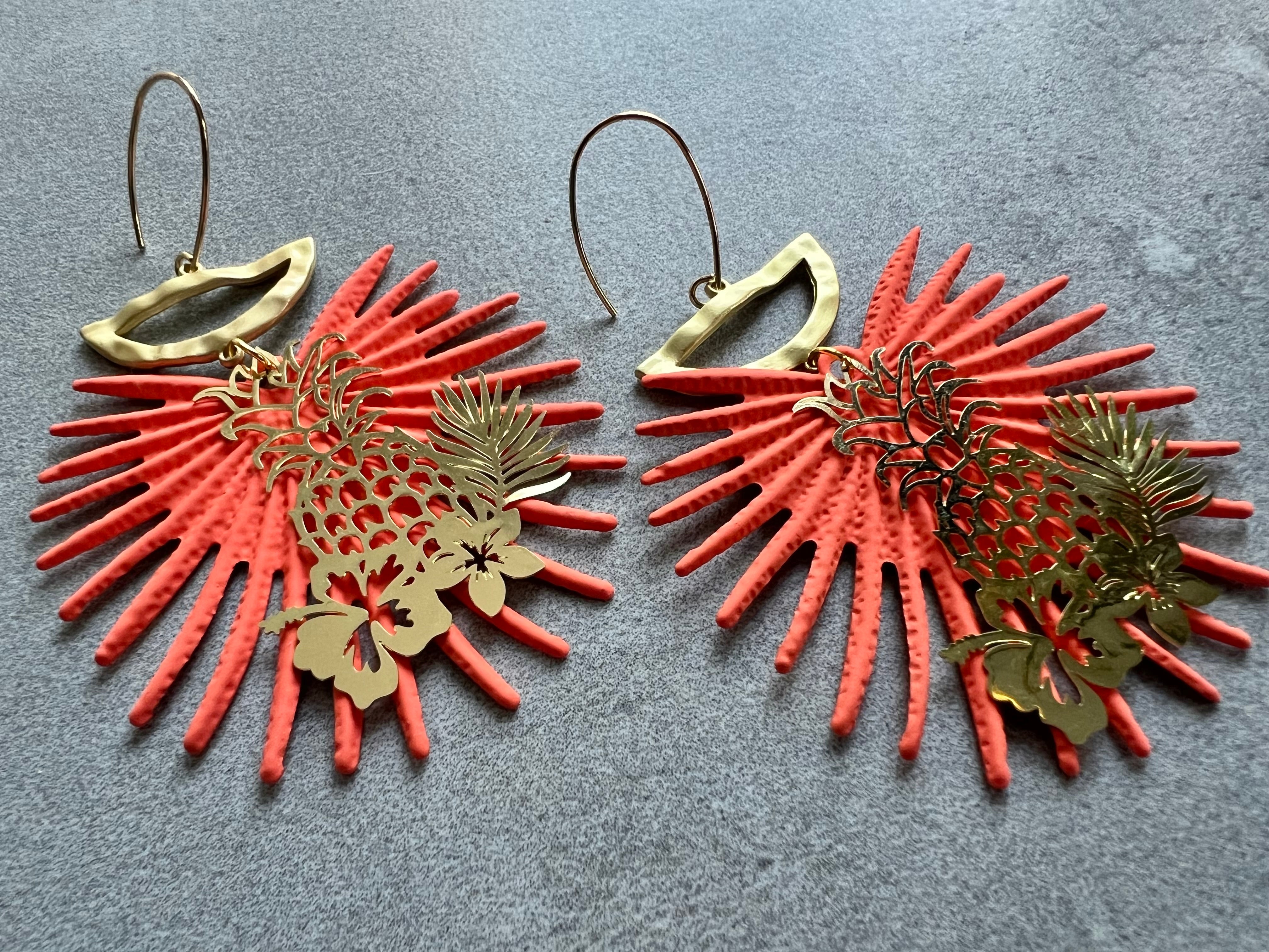 Boucles d’oreilles ANDREIA feuille orange et ananas - Créations Uniques