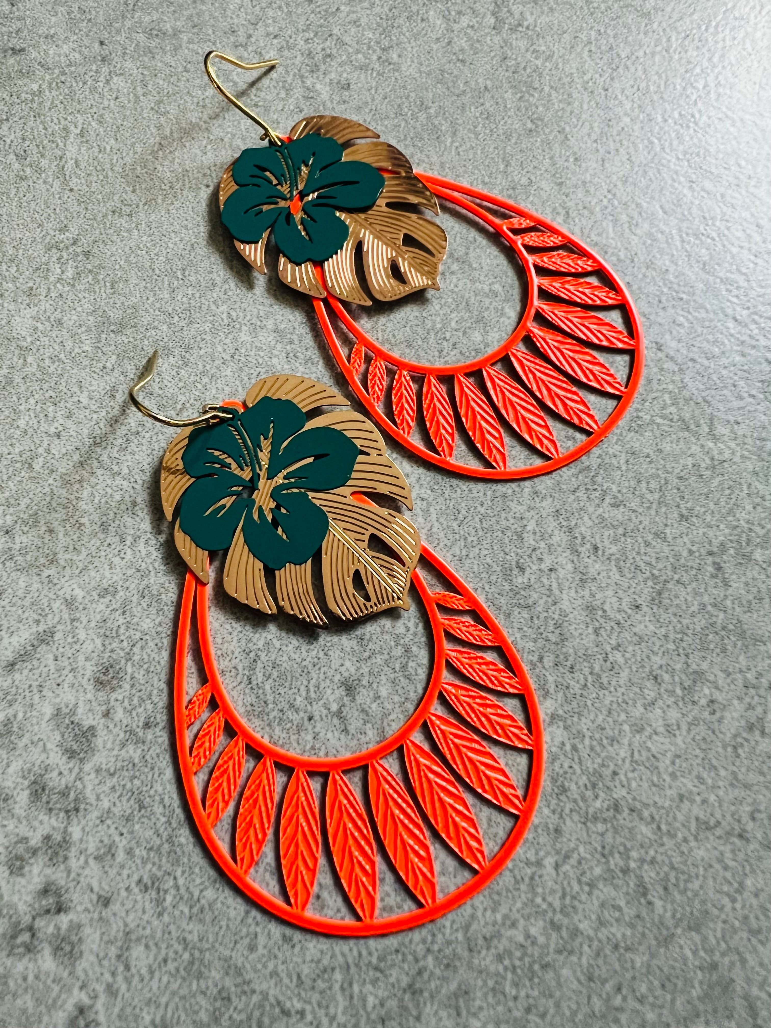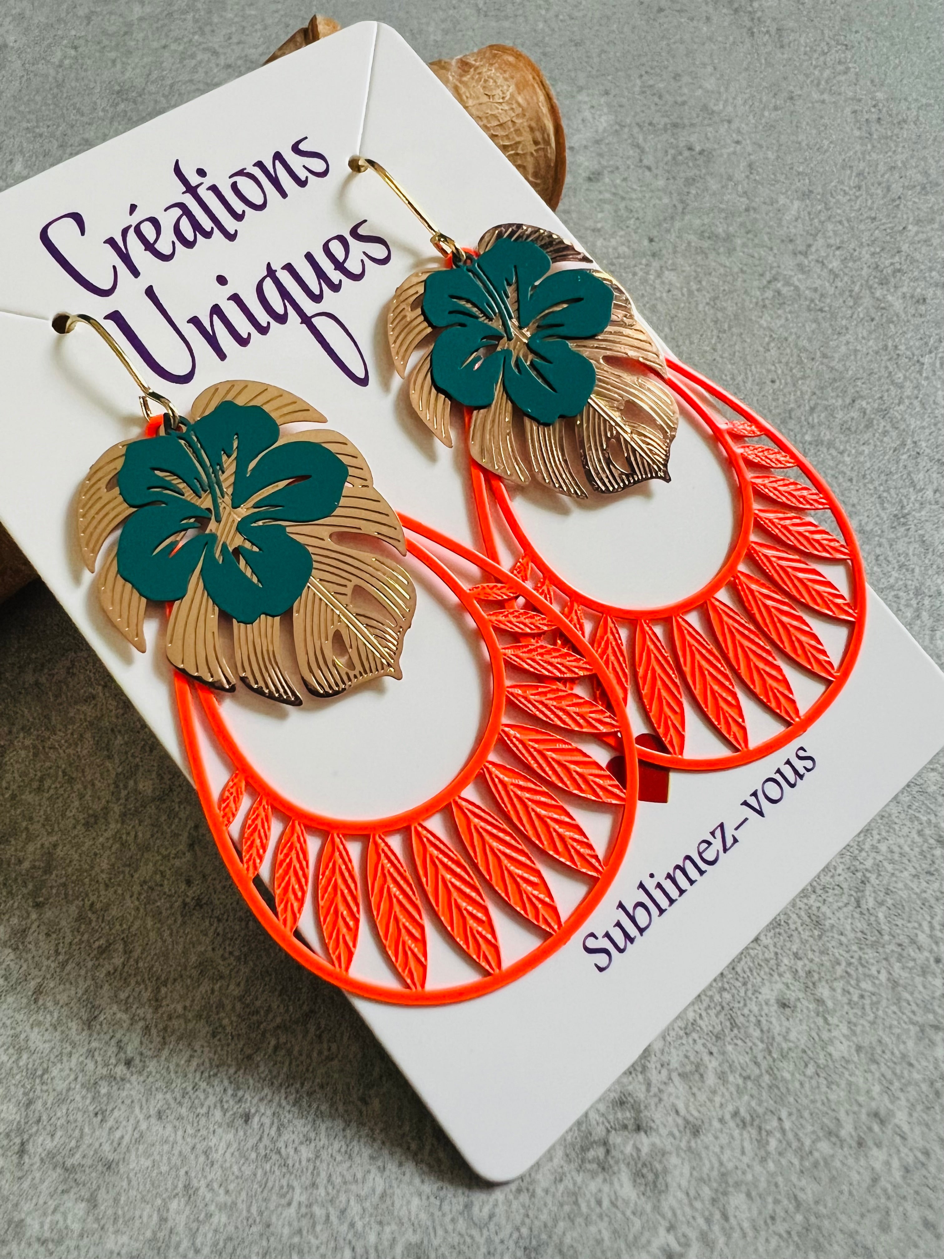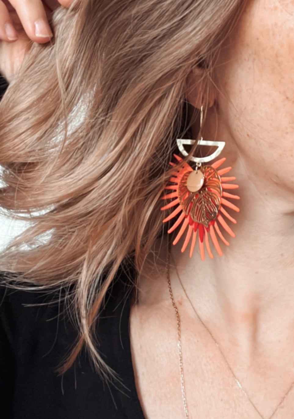 Boucles d’oreilles PHILOMENE feuilles tropicales oranges