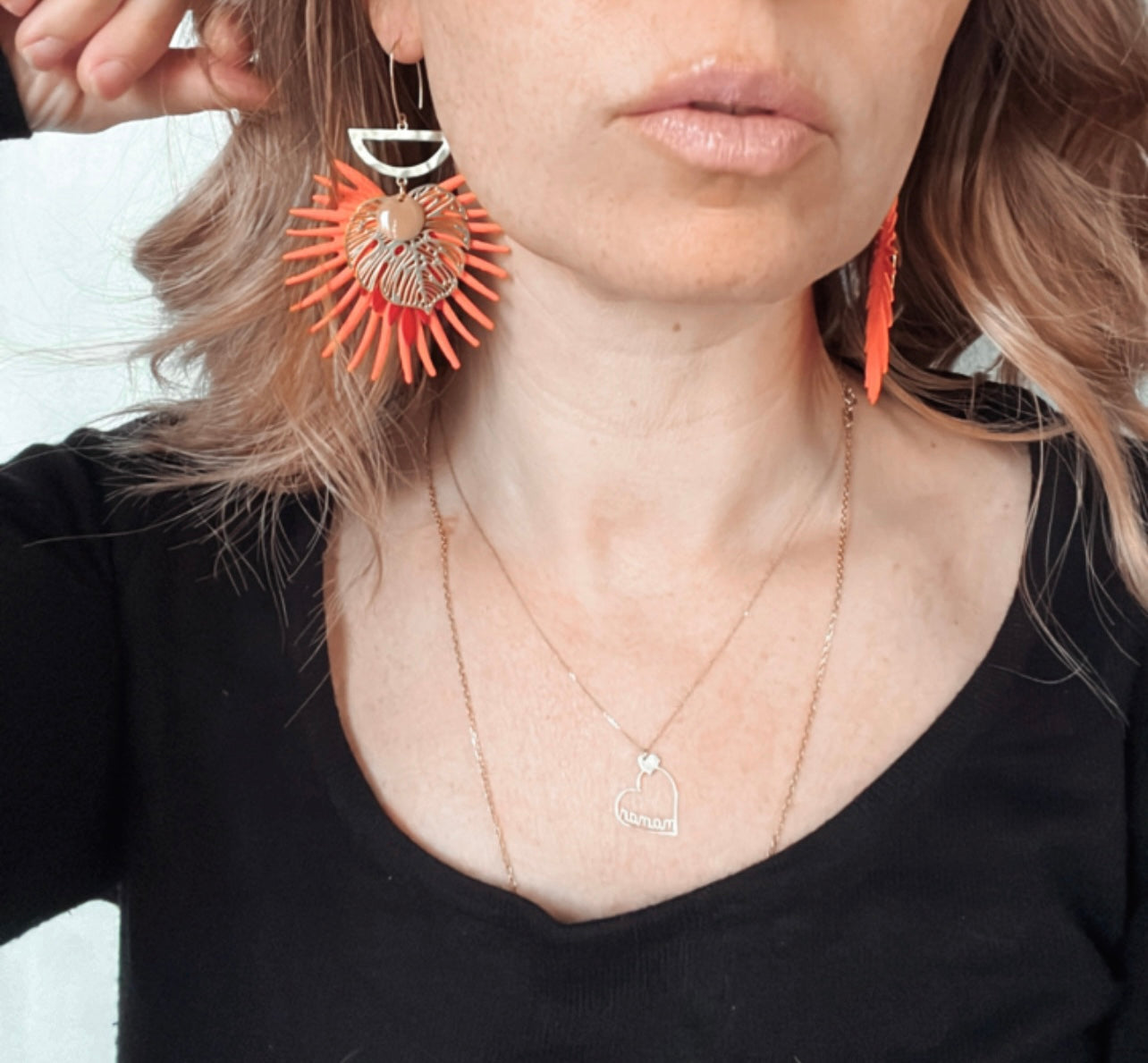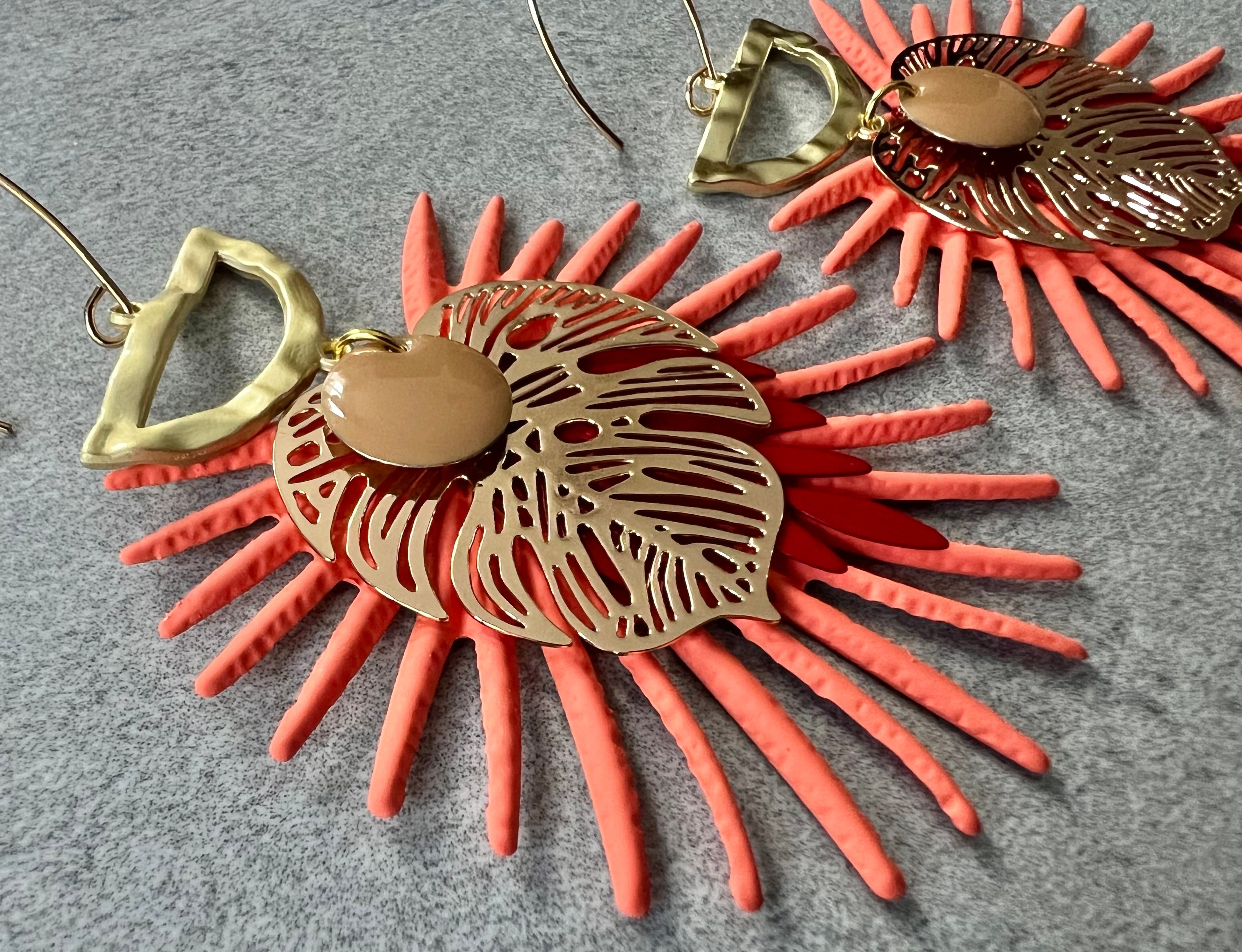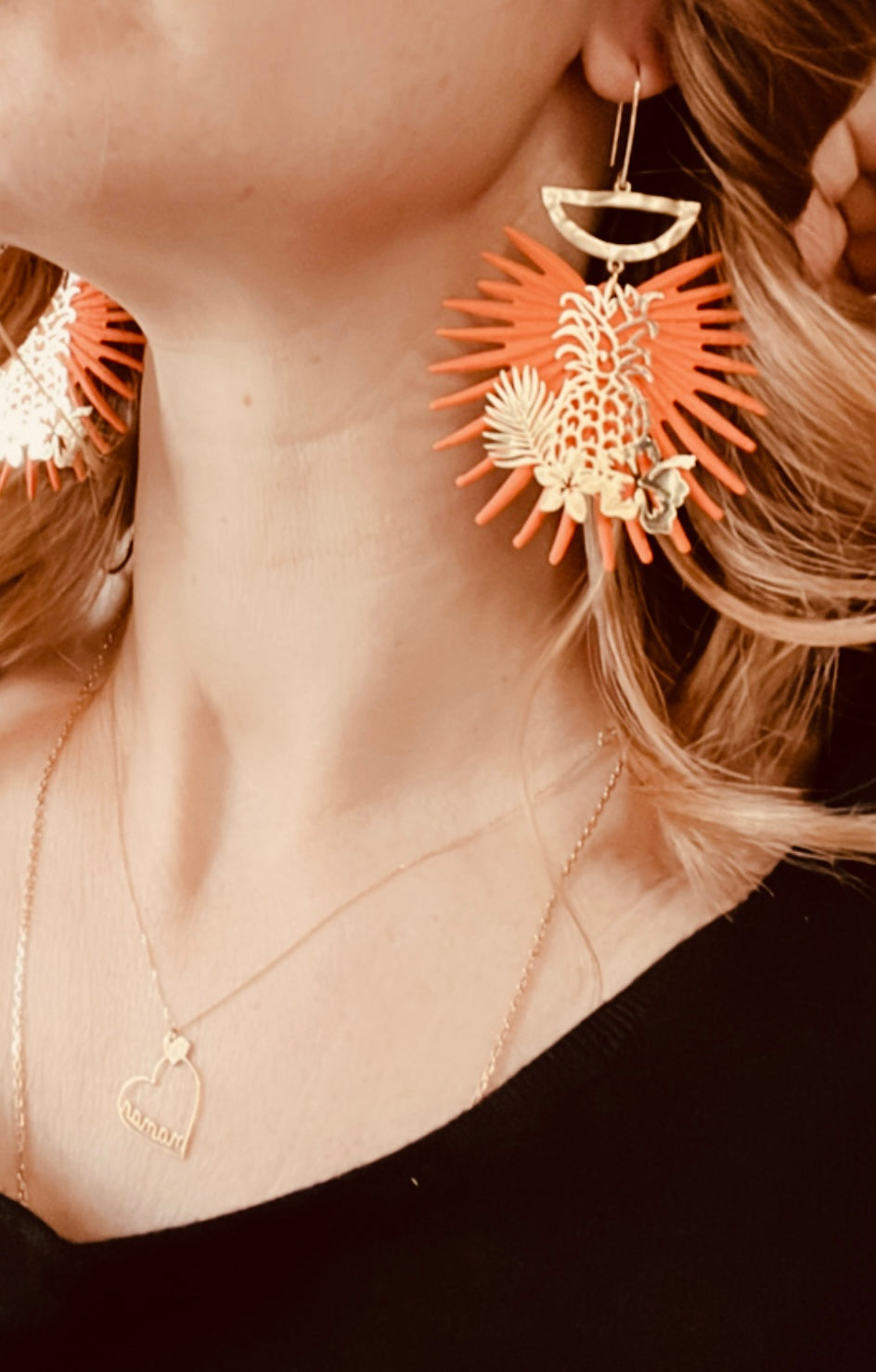 Boucles d’oreilles PHILOMENE feuilles tropicales oranges
