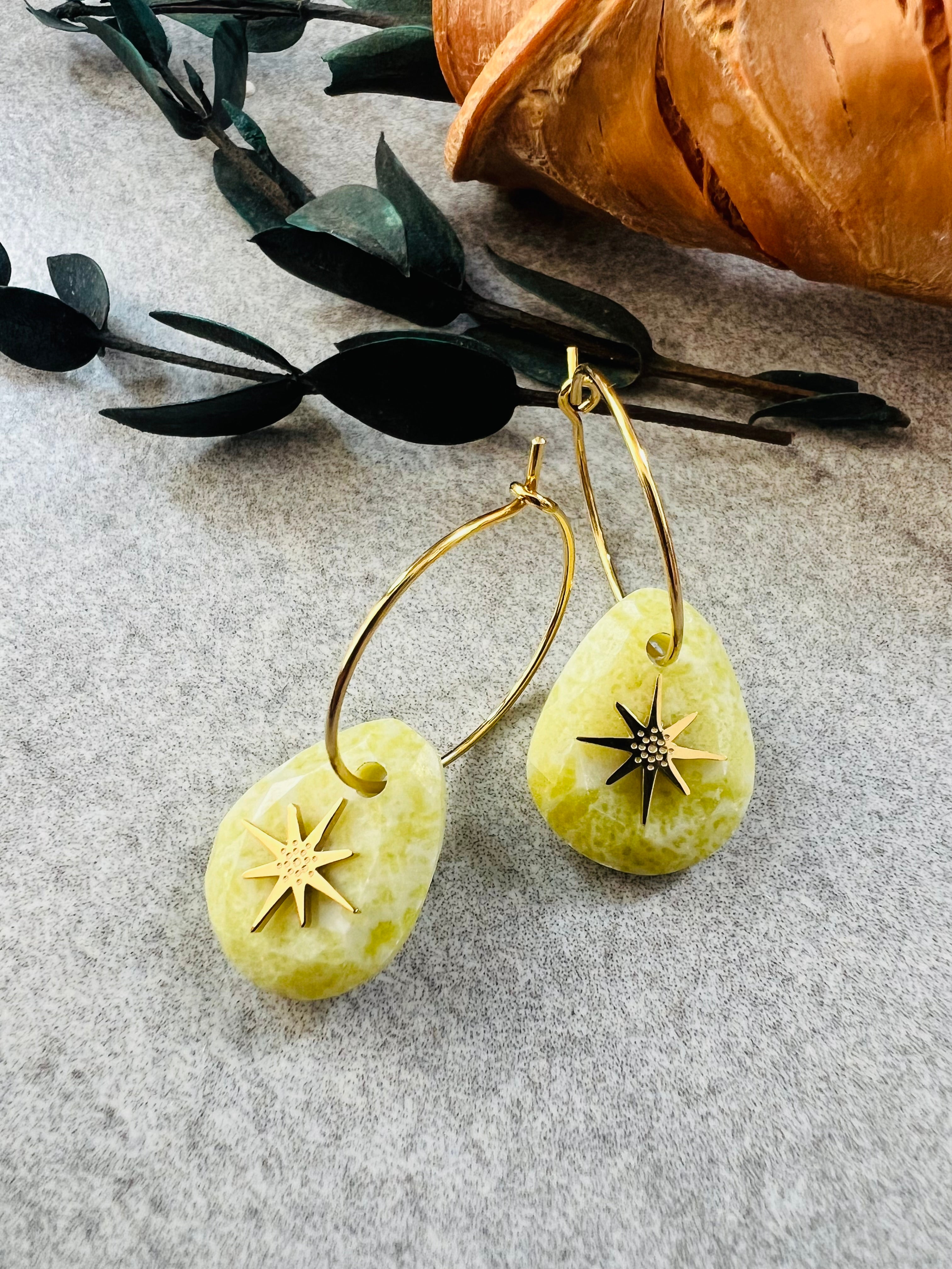 Boucles d’oreilles JADE créoles et Pierre vert anis