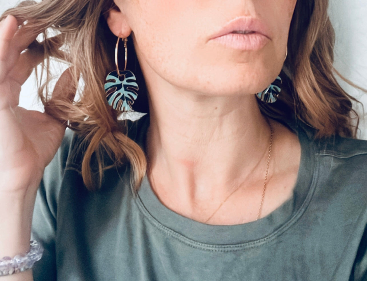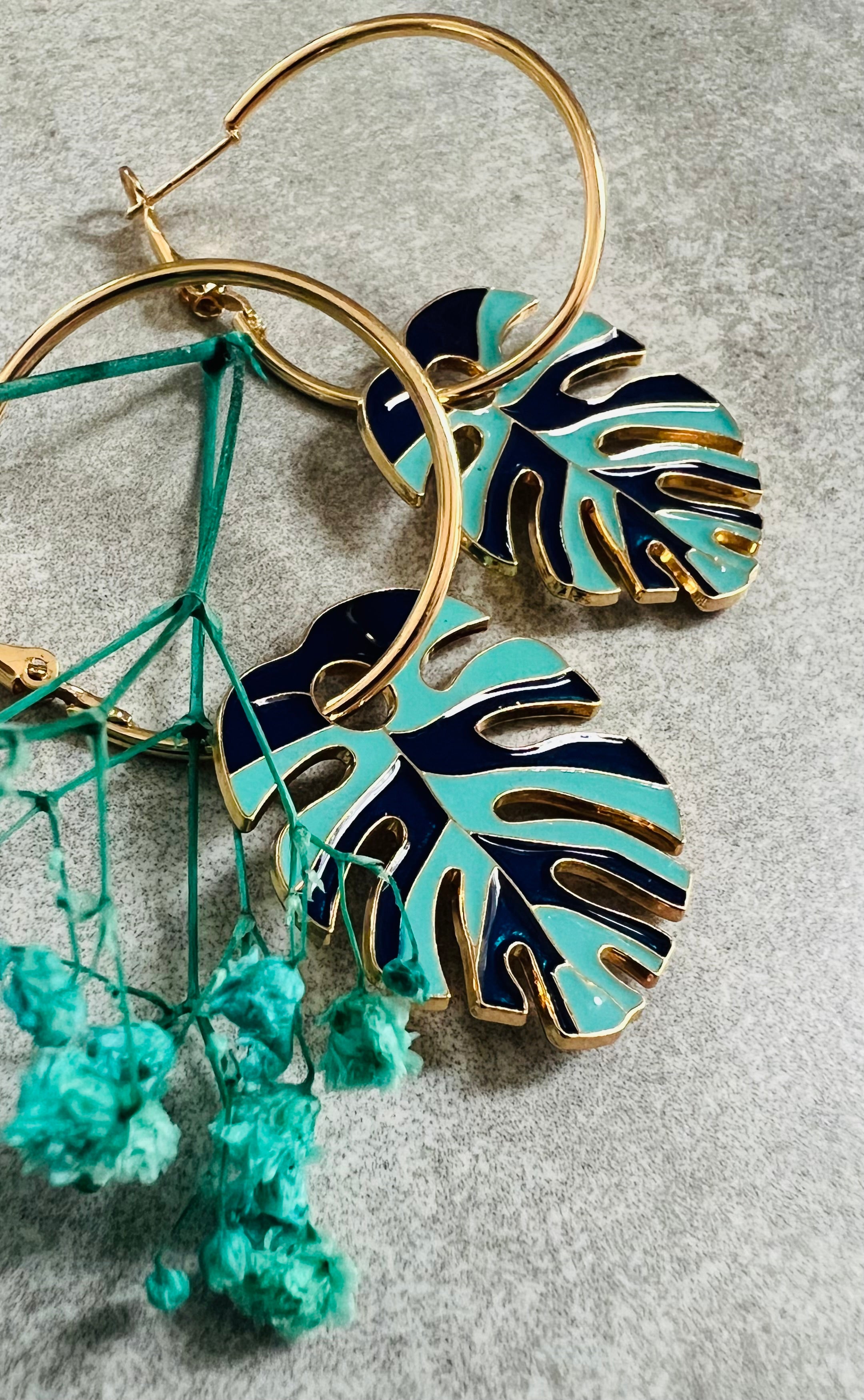 Boucles d’oreilles LOUISIA créoles feuilles tropicales