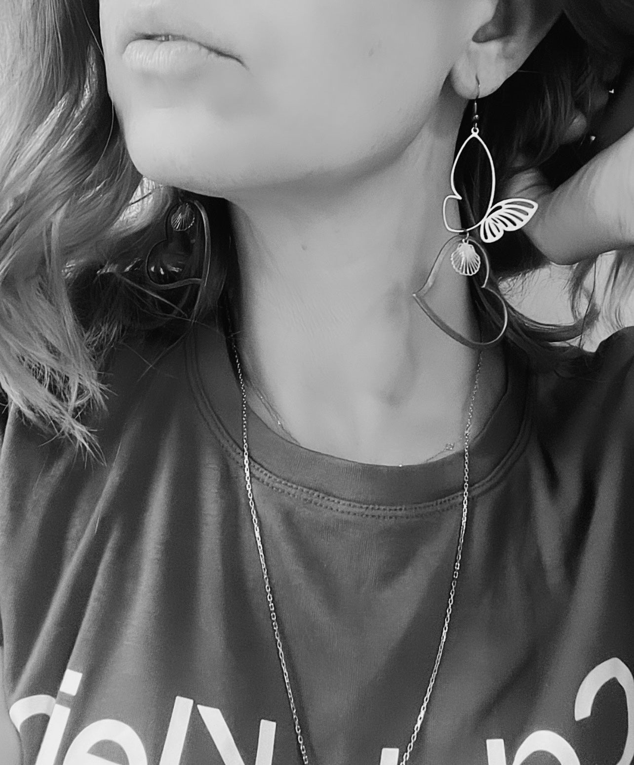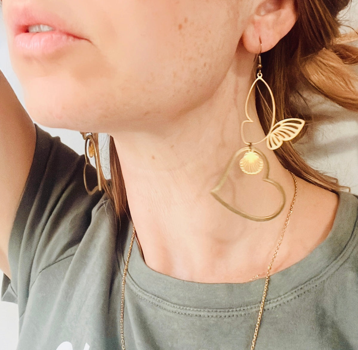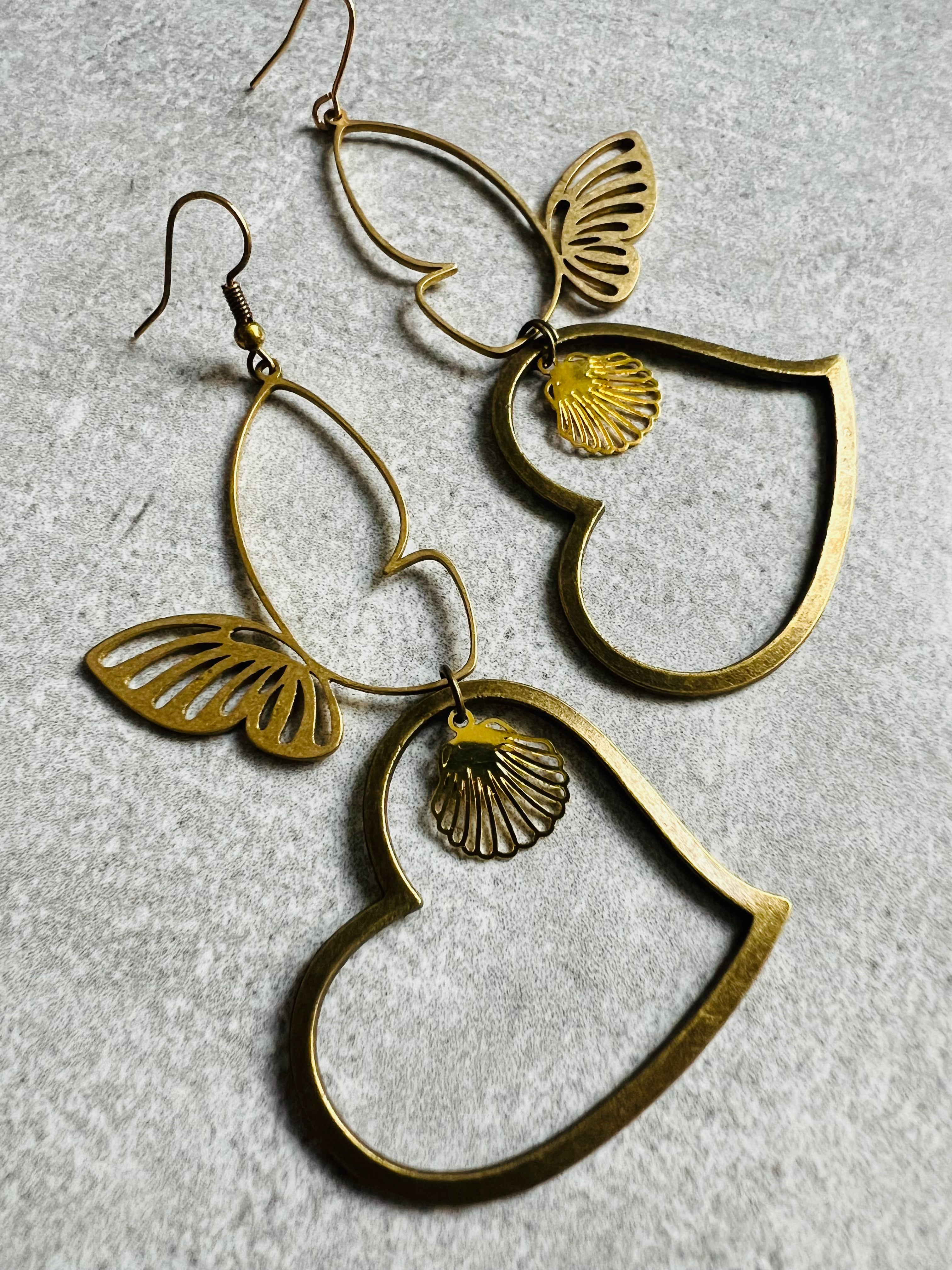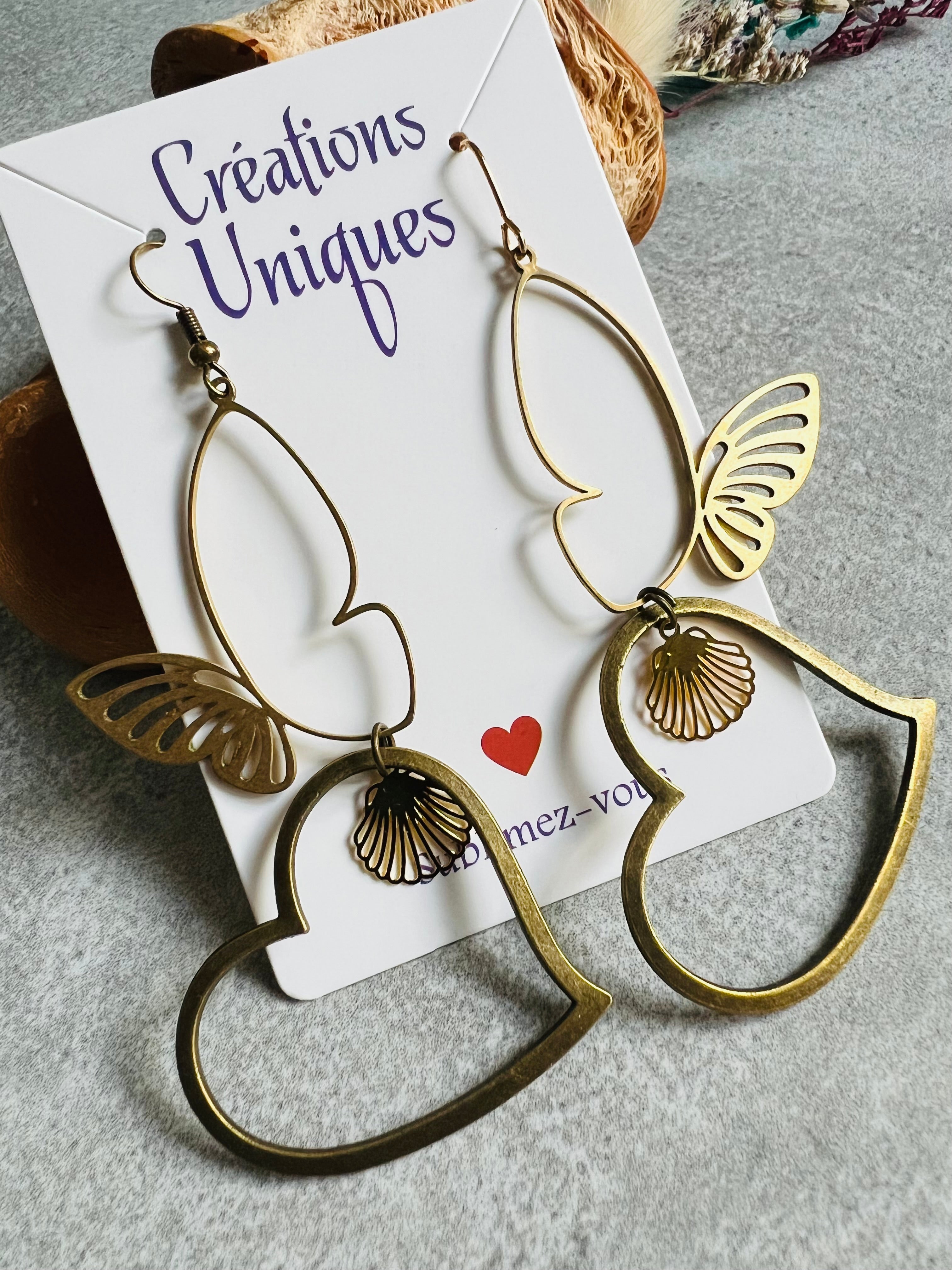 Boucles d’oreilles KAT coeurs, papillons et mini coquillages brillants - Créations Uniques
