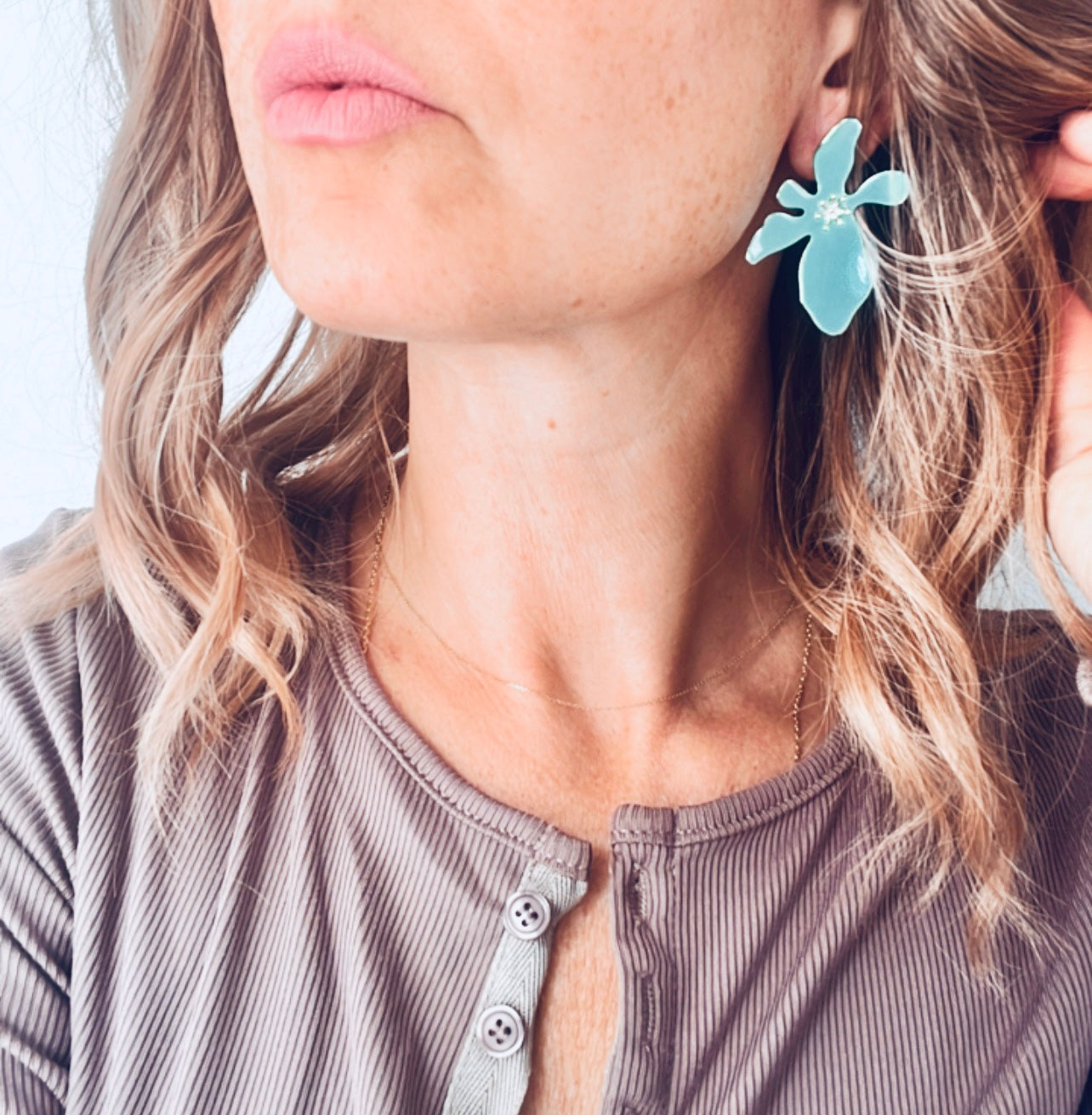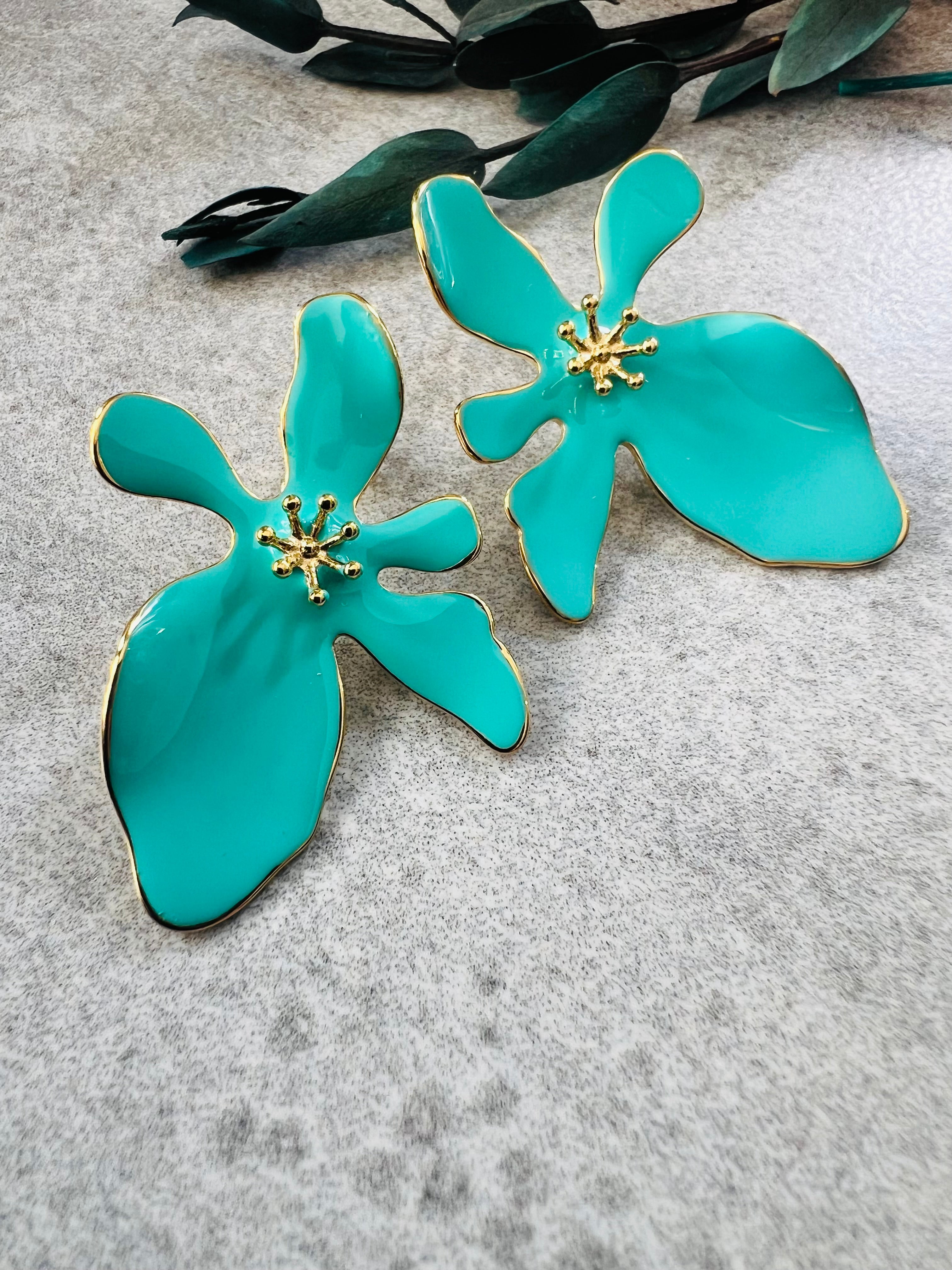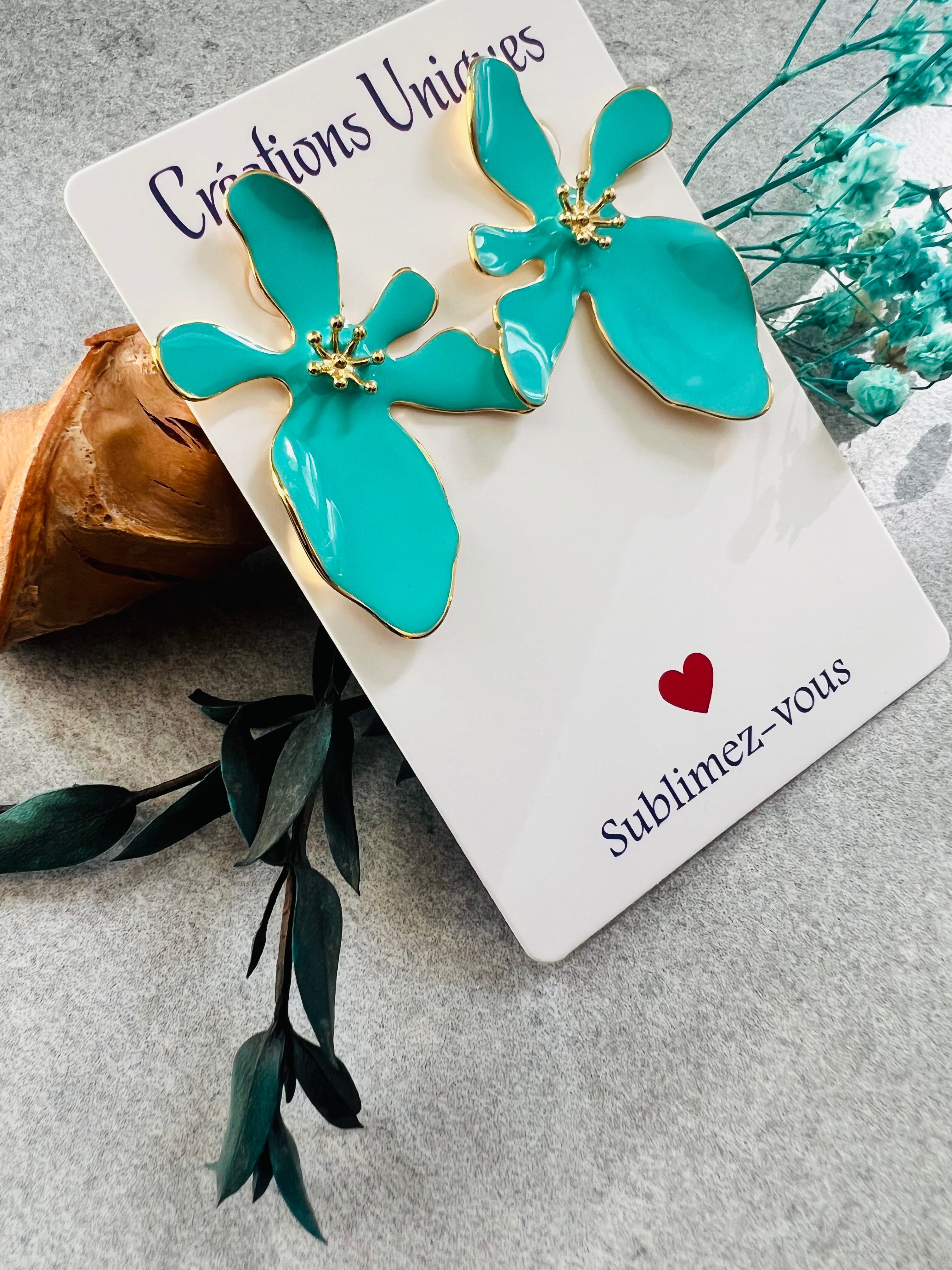 Boucles d’oreilles MOANA fleurs turquoises tropicales