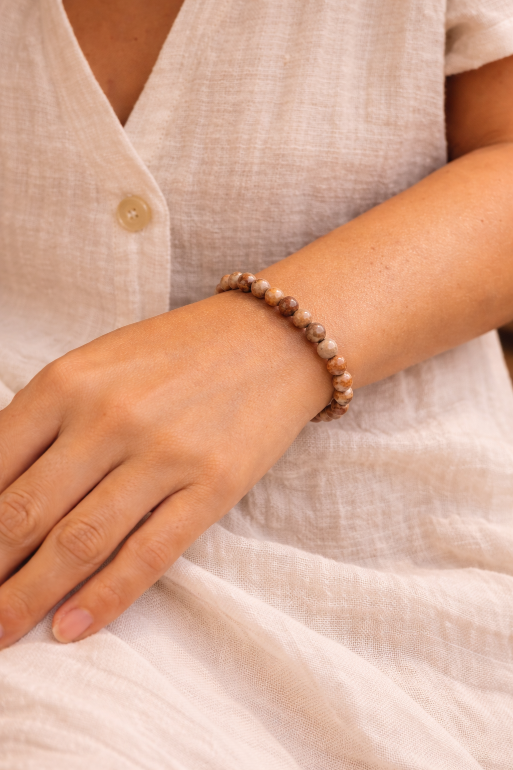 Bracelet perles marron rosé 6 mm femme