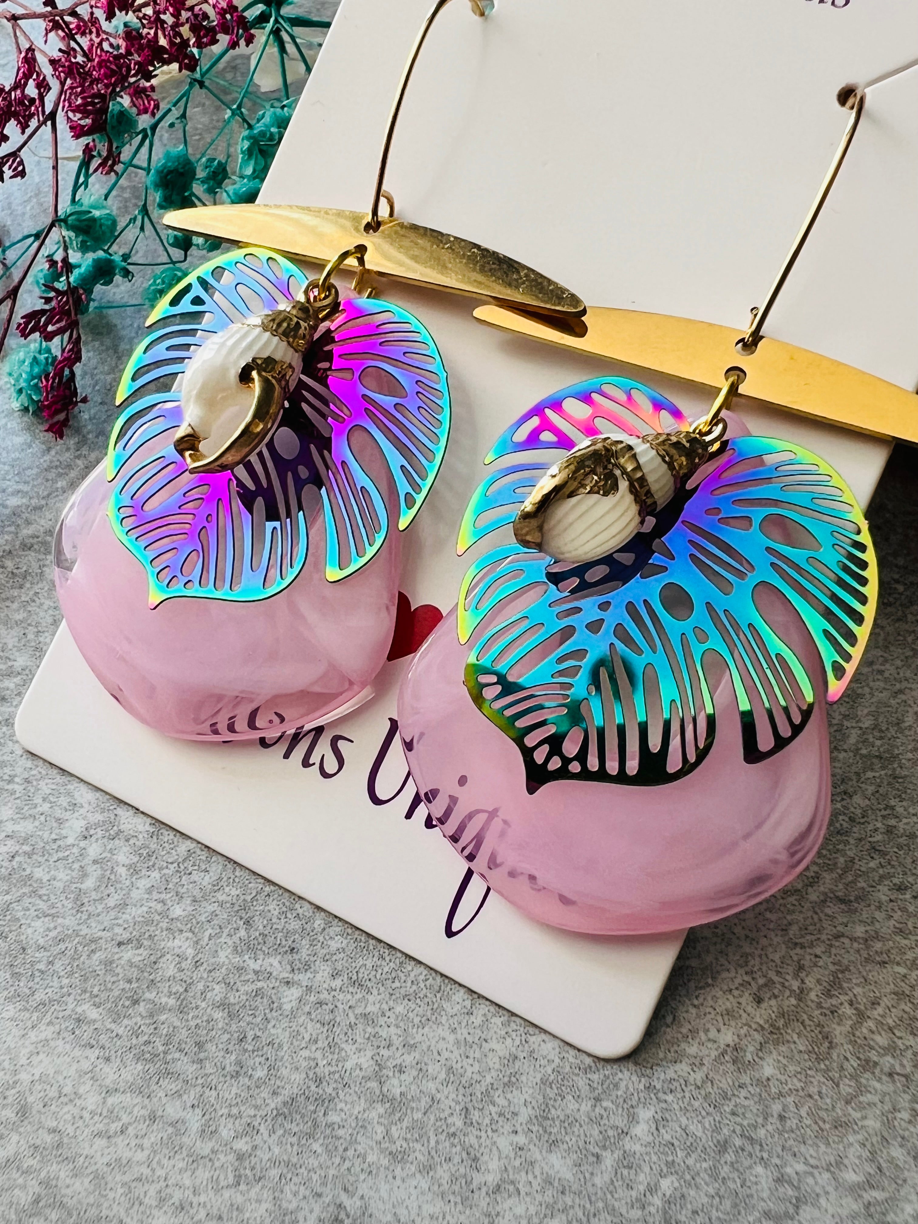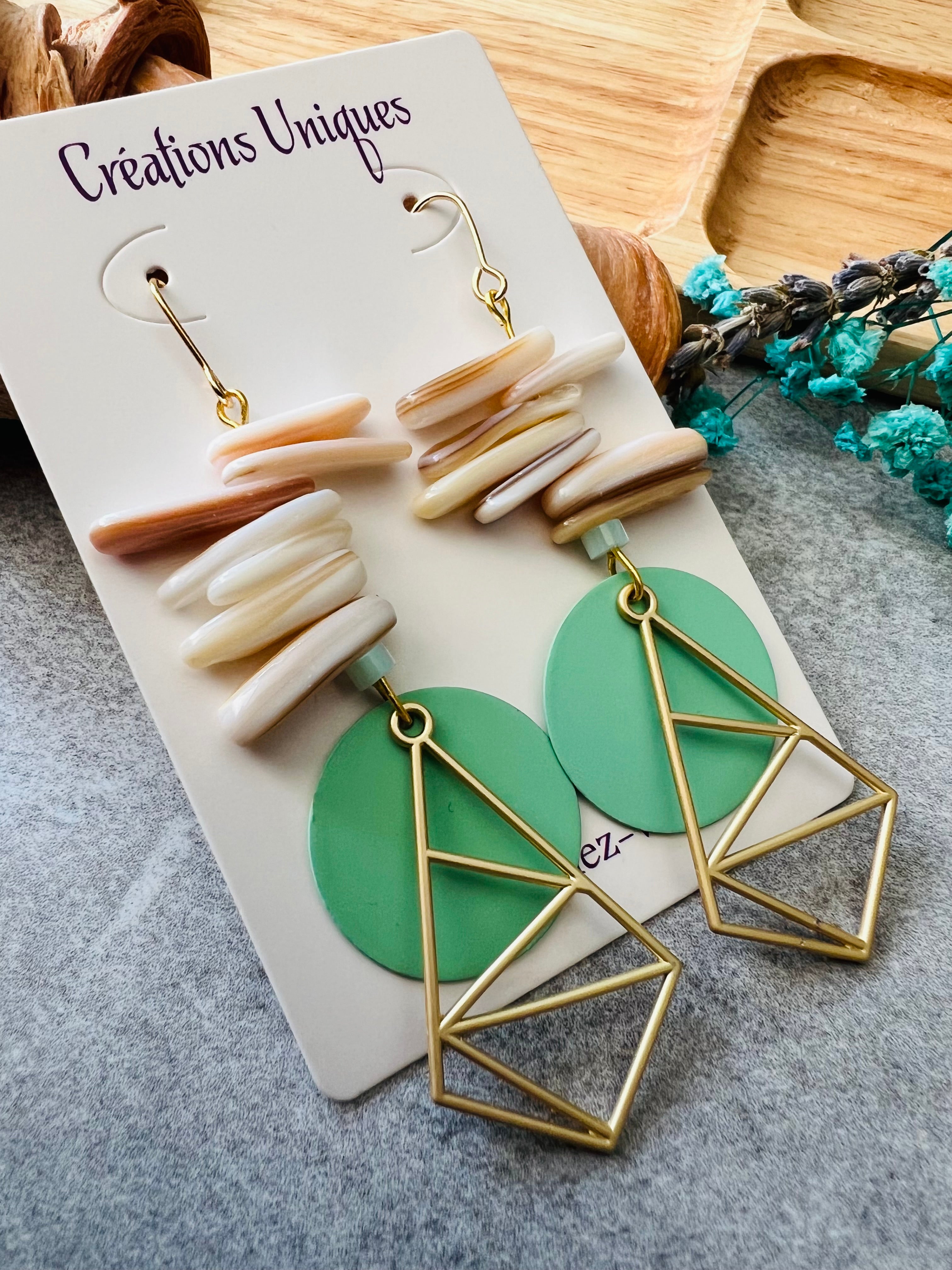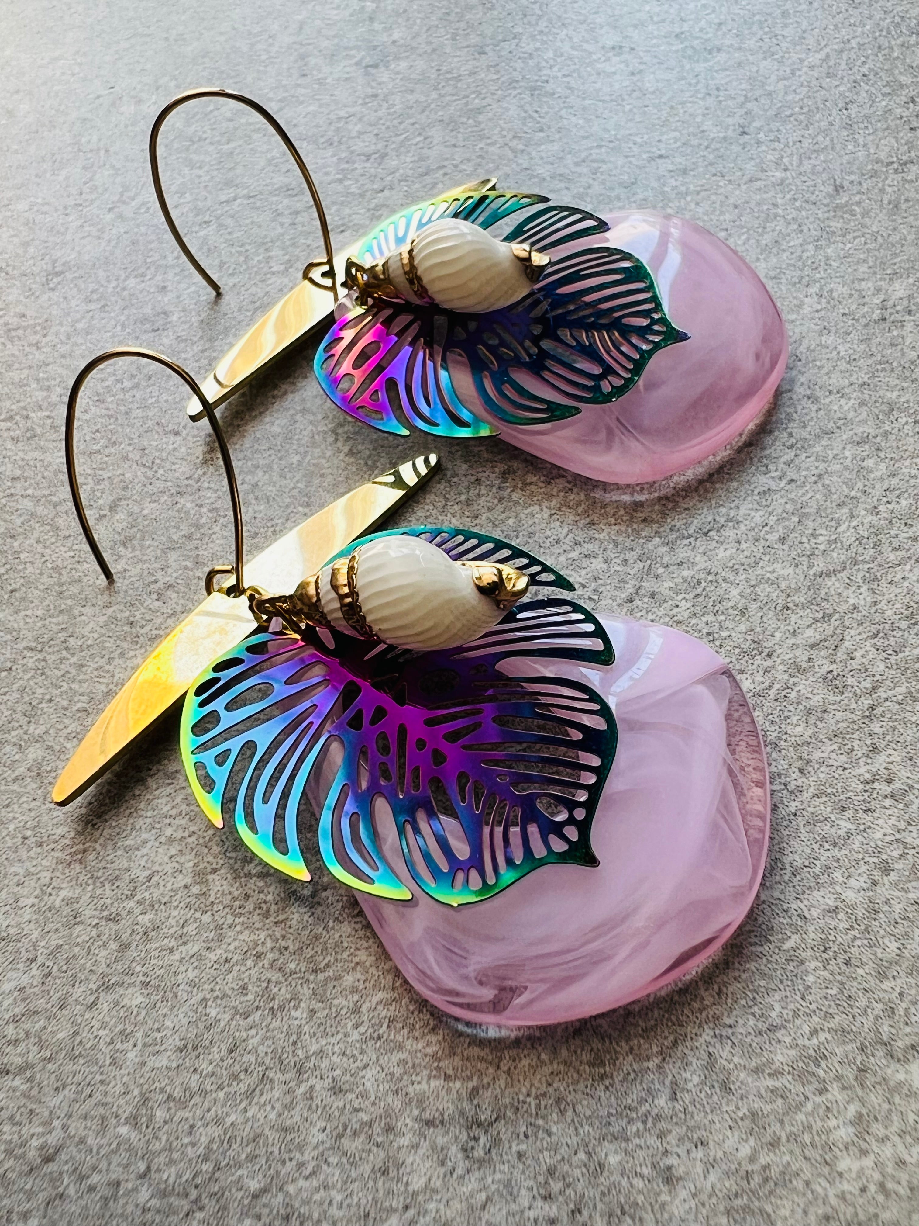 Boucles d’oreilles ENORA coquillages et gouttes résine - Créations Uniques