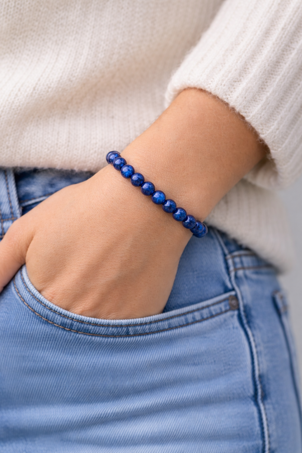 Bracelet perles bleues 6 mm