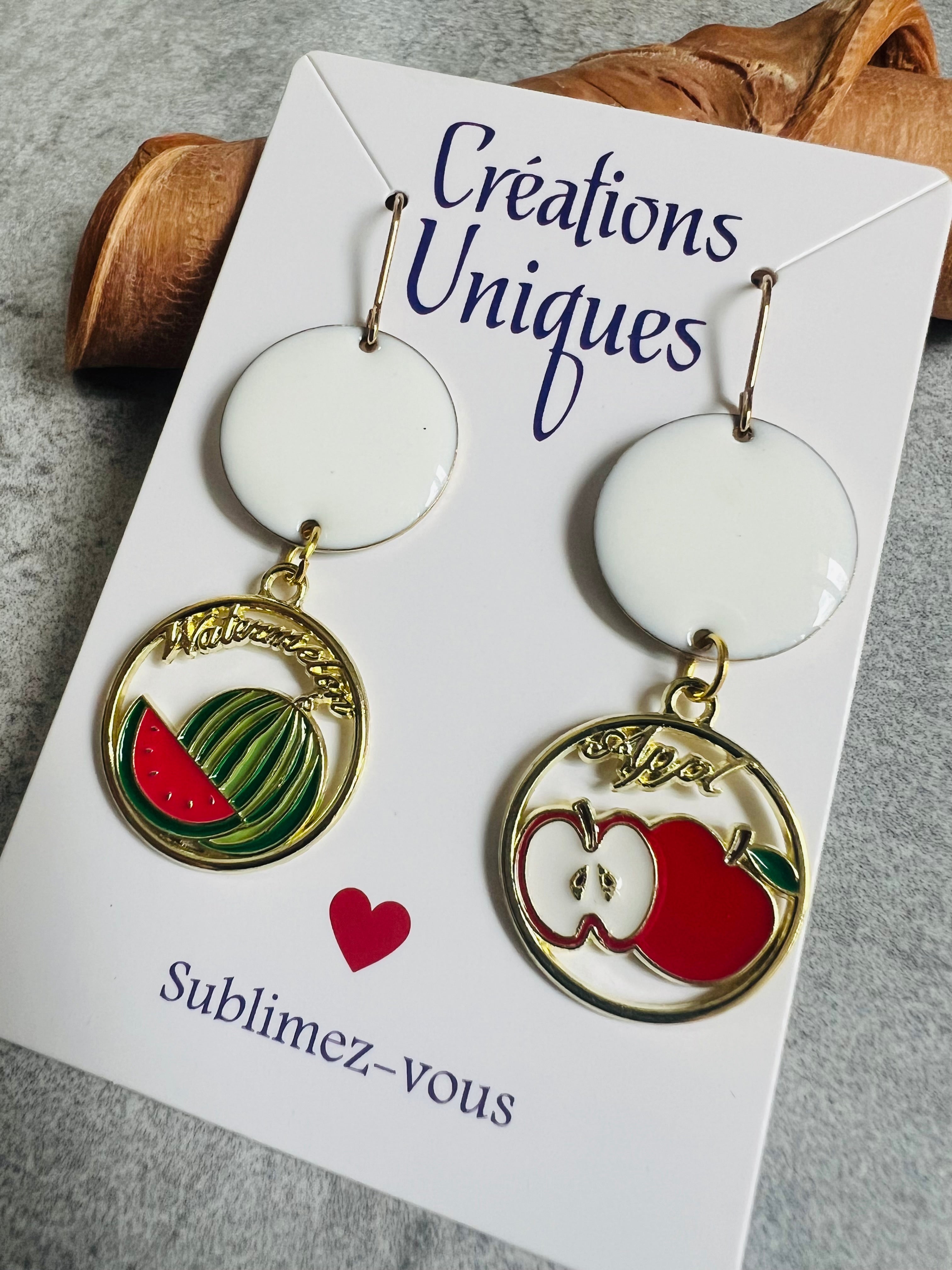 Boucles d’oreilles LOLA asymétriques, nouvelle co fruitée - Créations Uniques