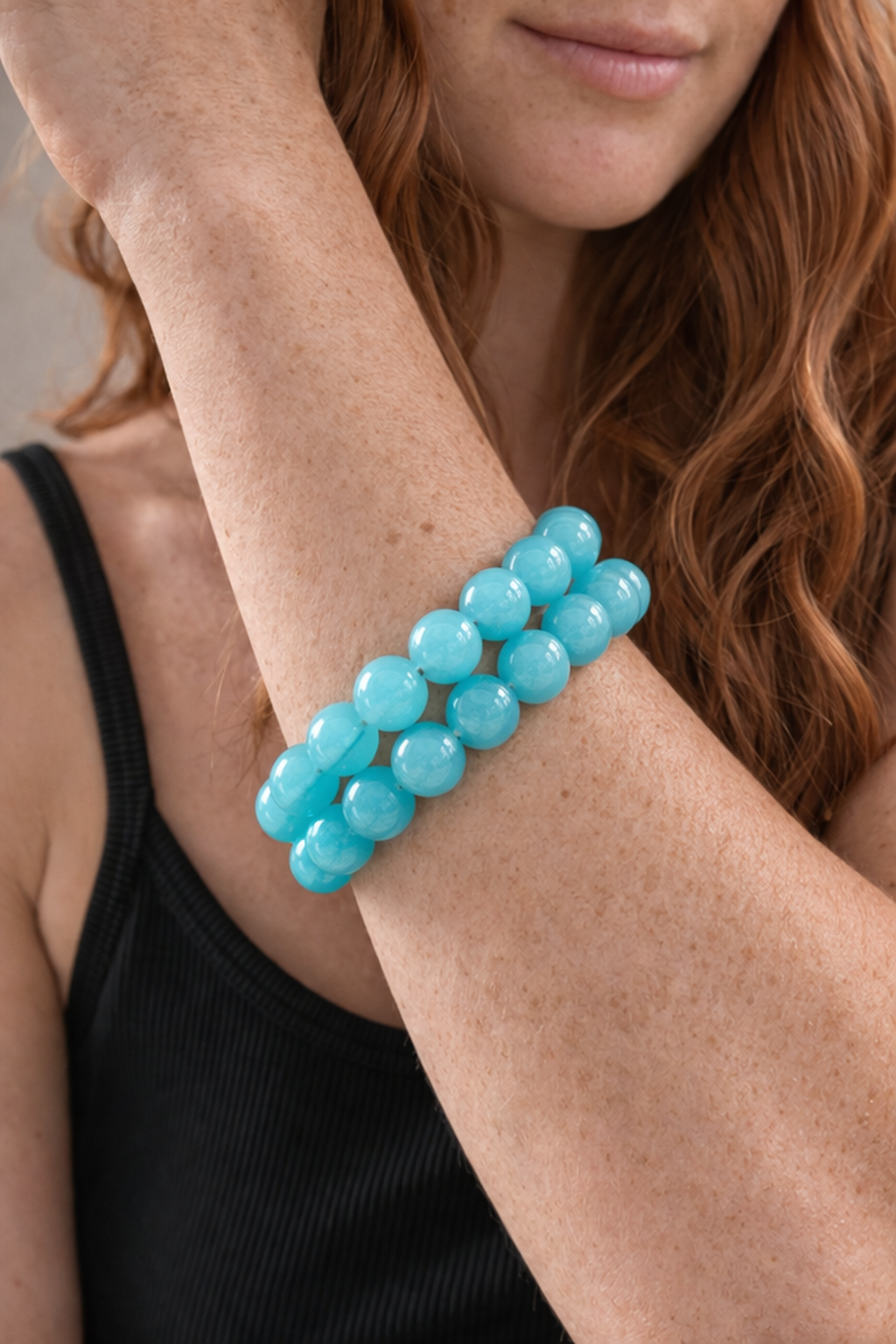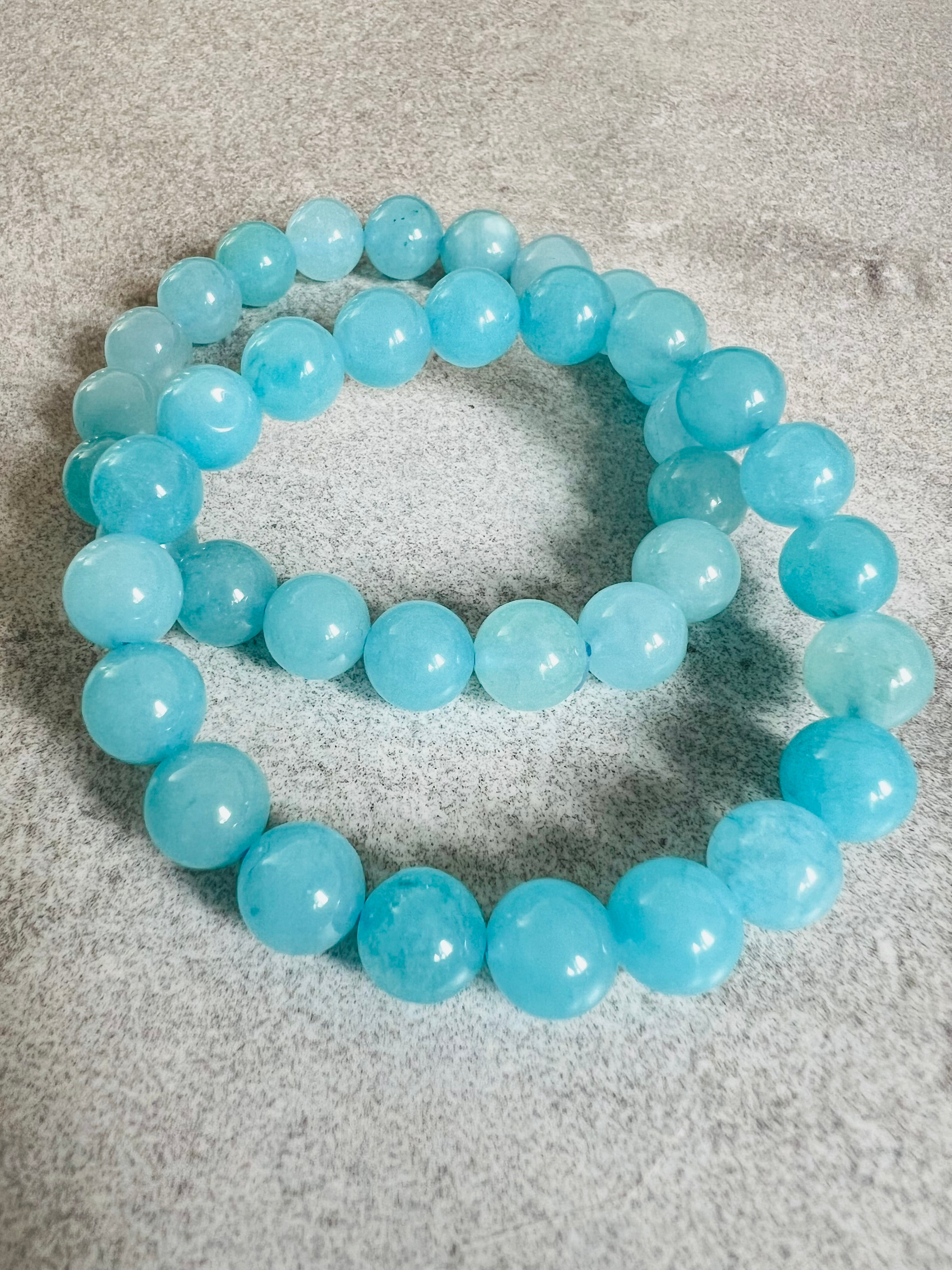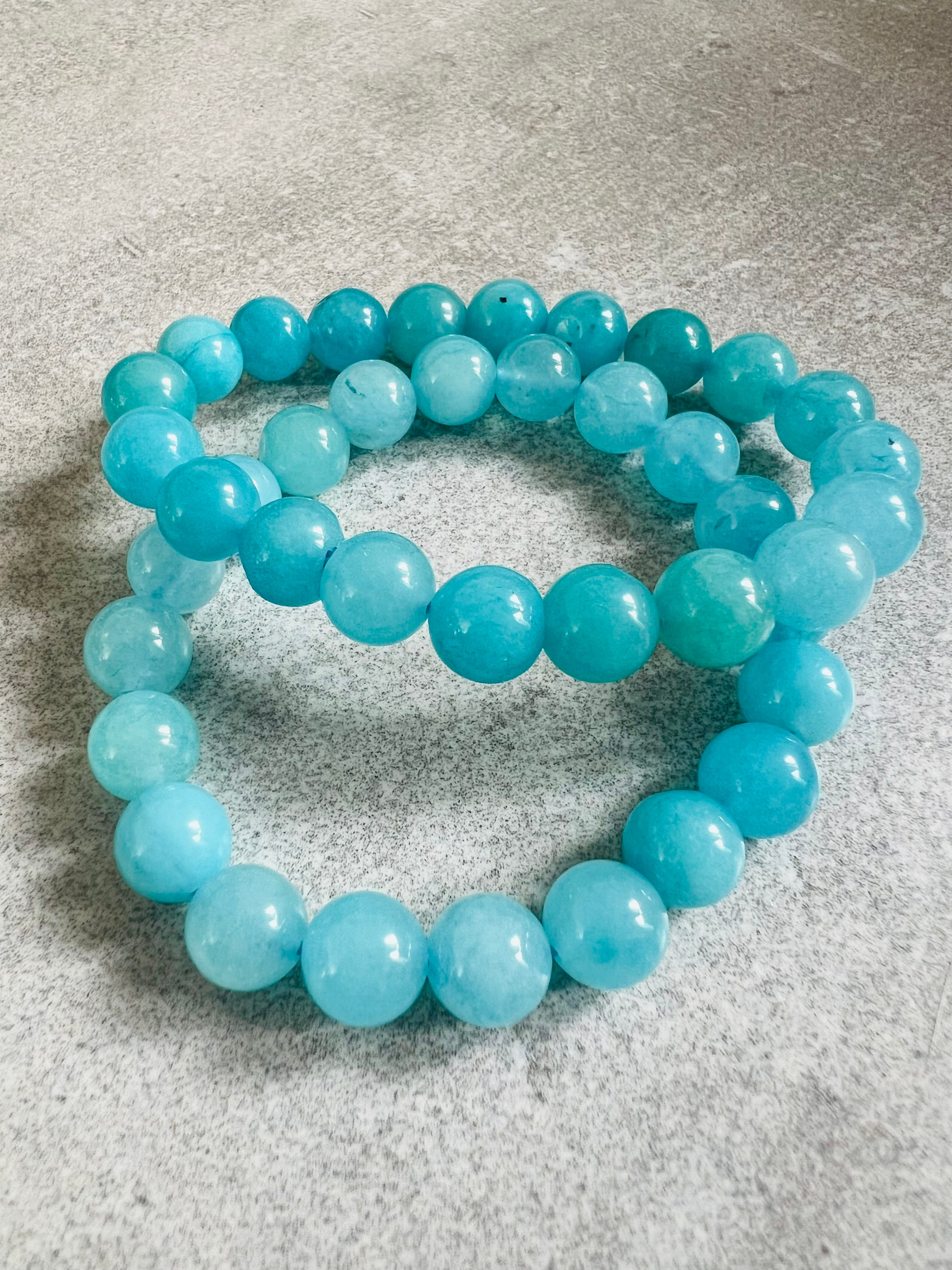 Bracelets perles 10 mm, bleu lagon turquoise, lot de 2 - Créations Uniques