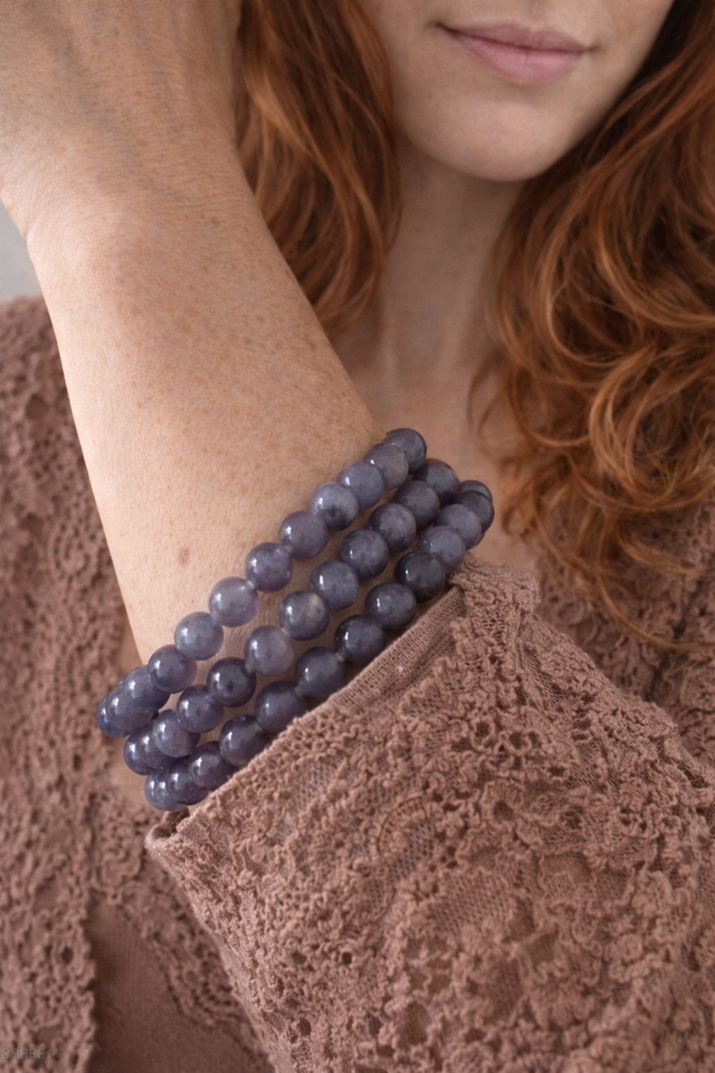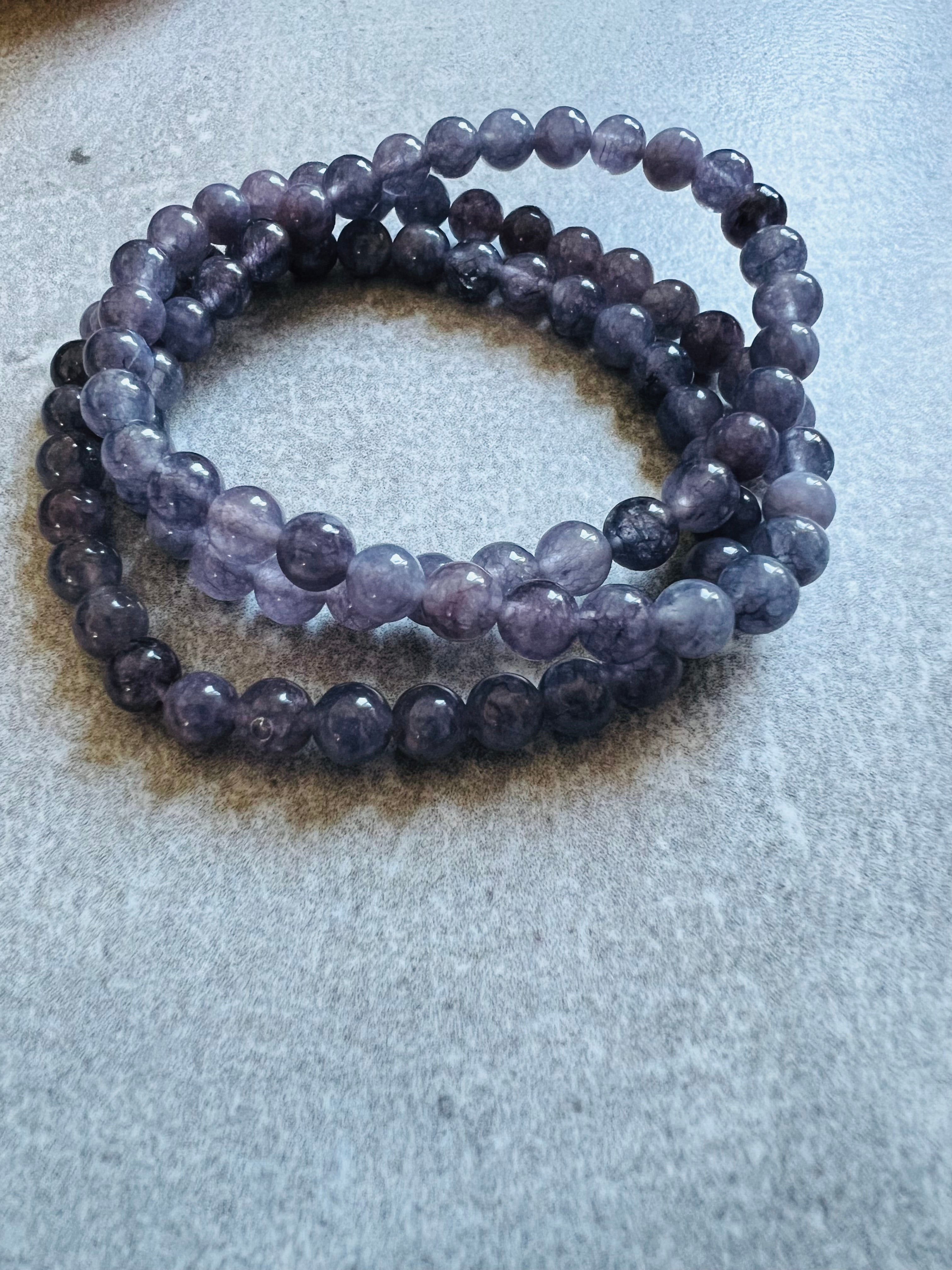 Bracelets perles 6 mm, lot de 3 couleur gris mauve figue - Créations Uniques