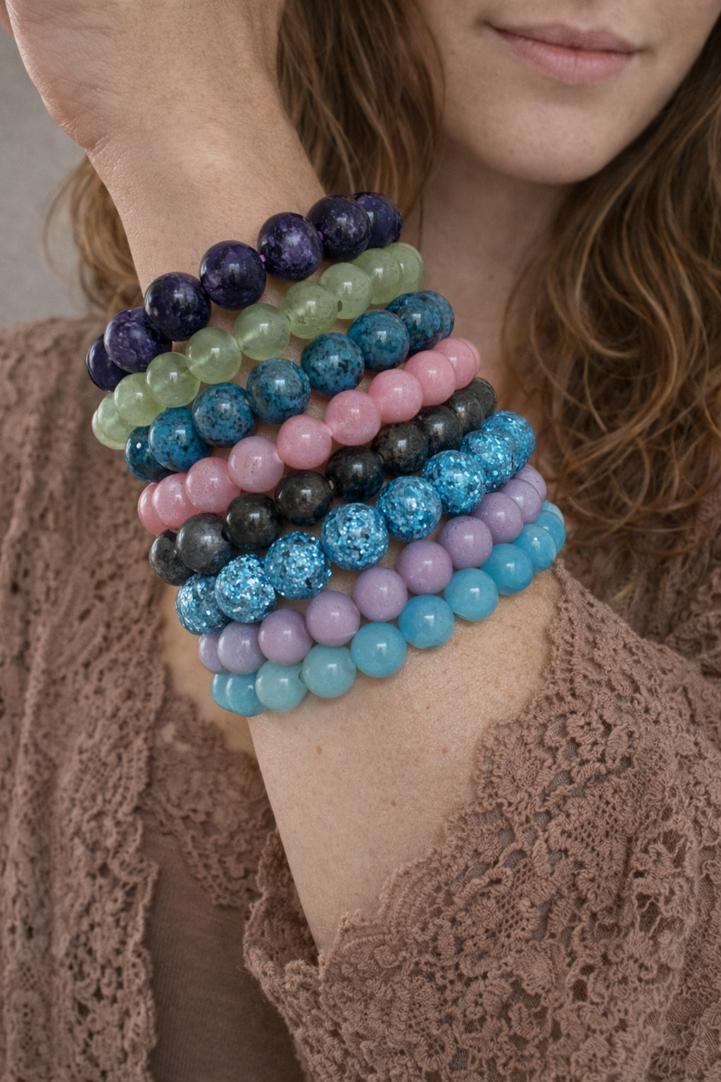 Bracelets perles violettes 12 mm, lot de 2, style bohème femme été - Créations Uniques