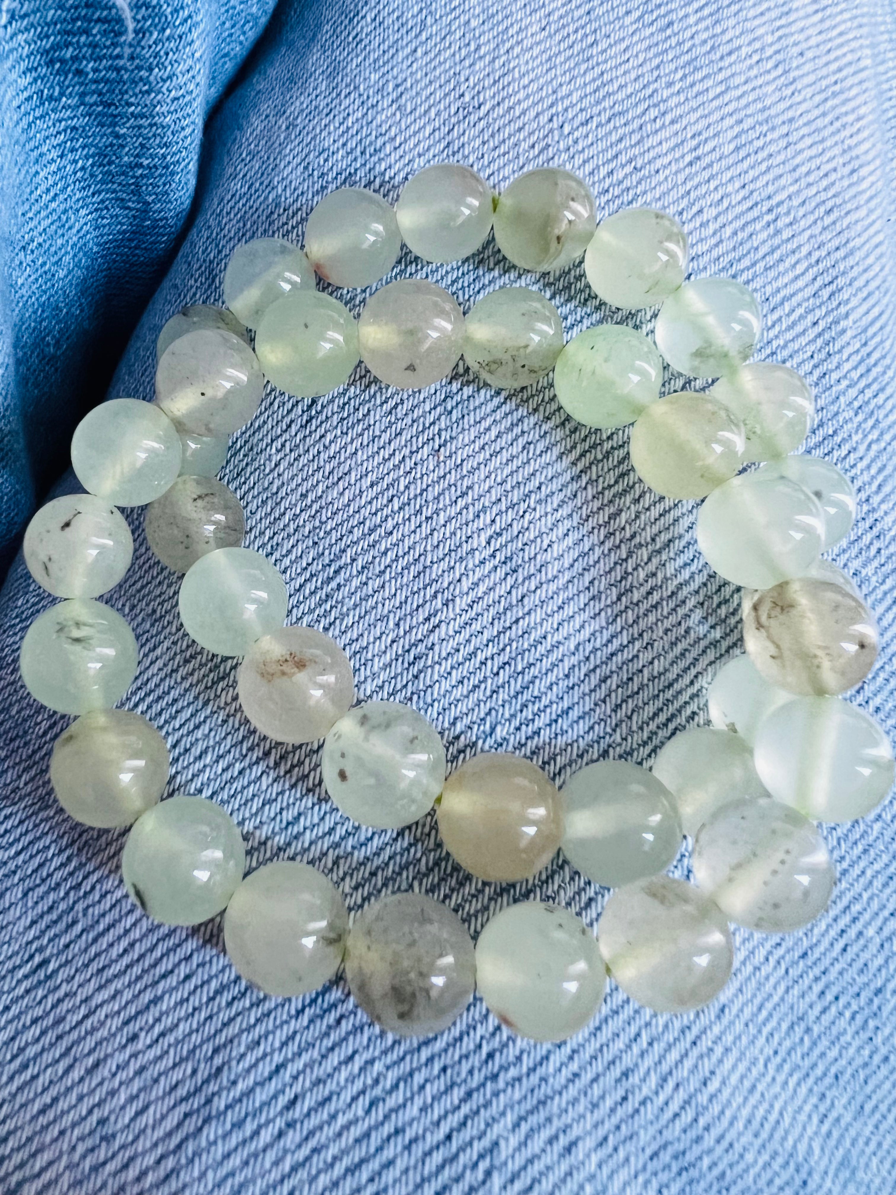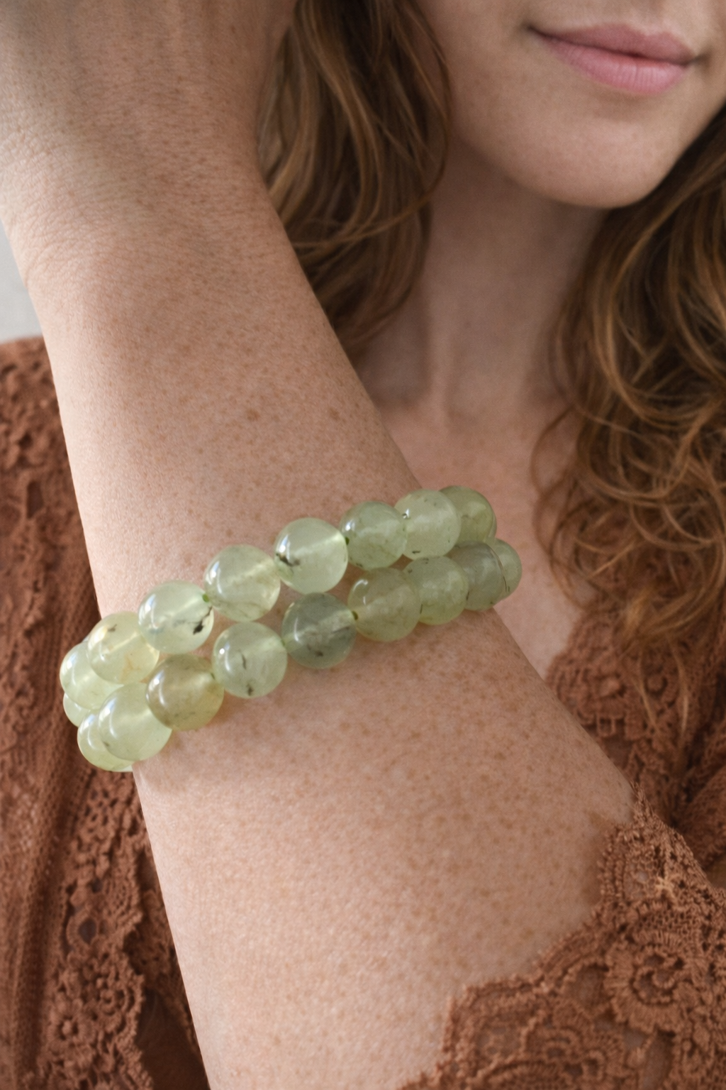 Bracelets vert transparent perles 10 mm style femme été, lot de 2 - Créations Uniques