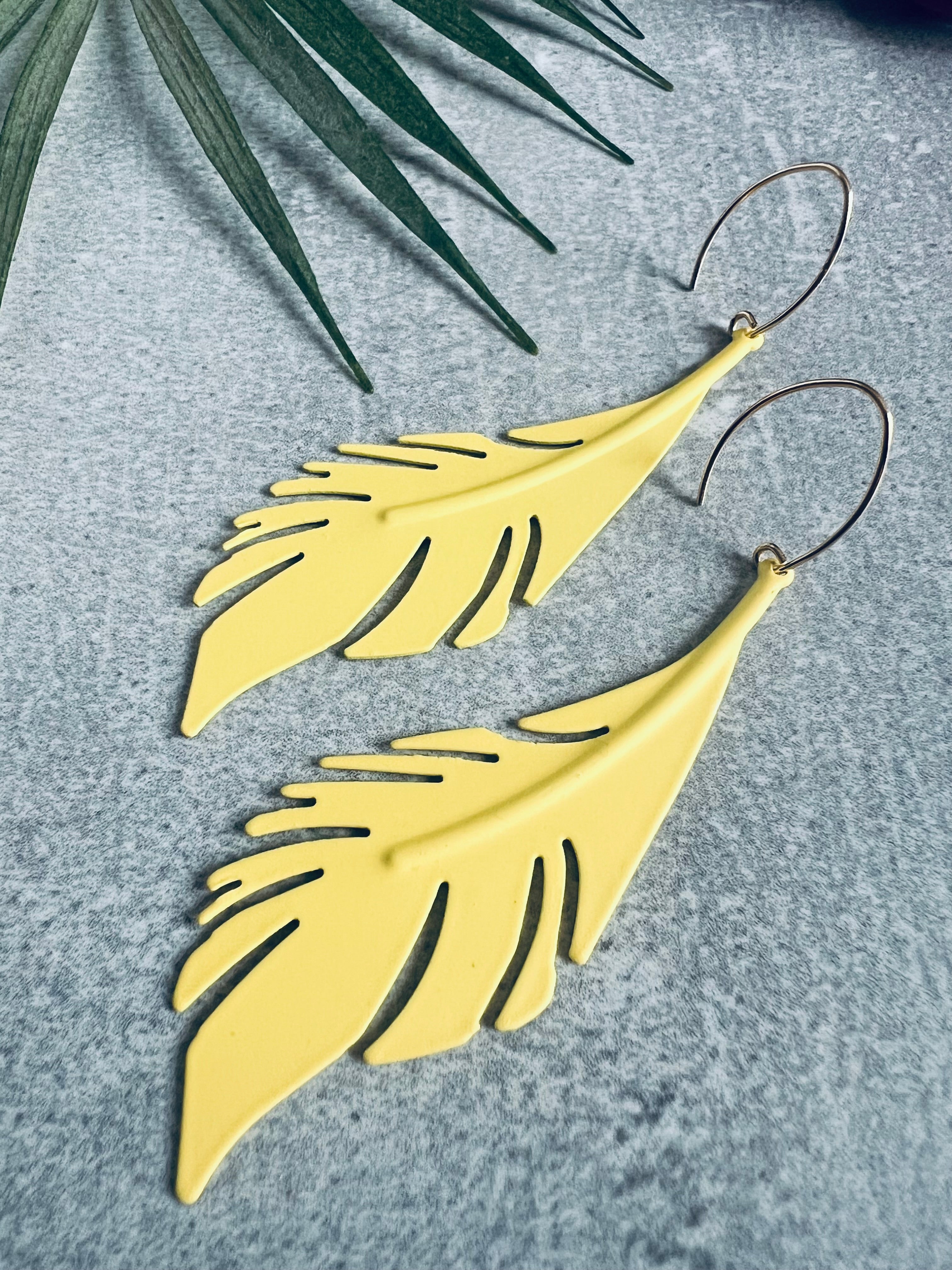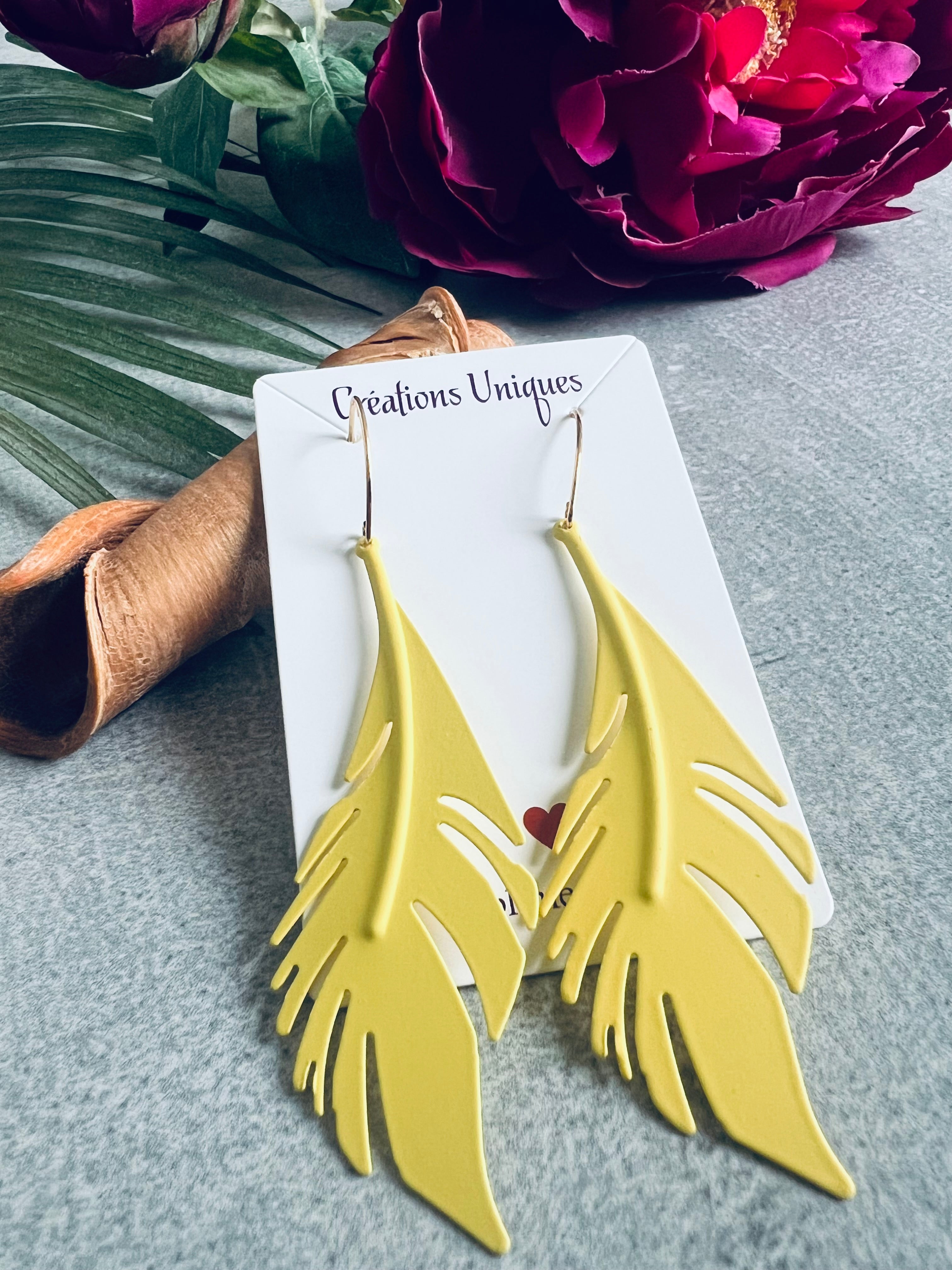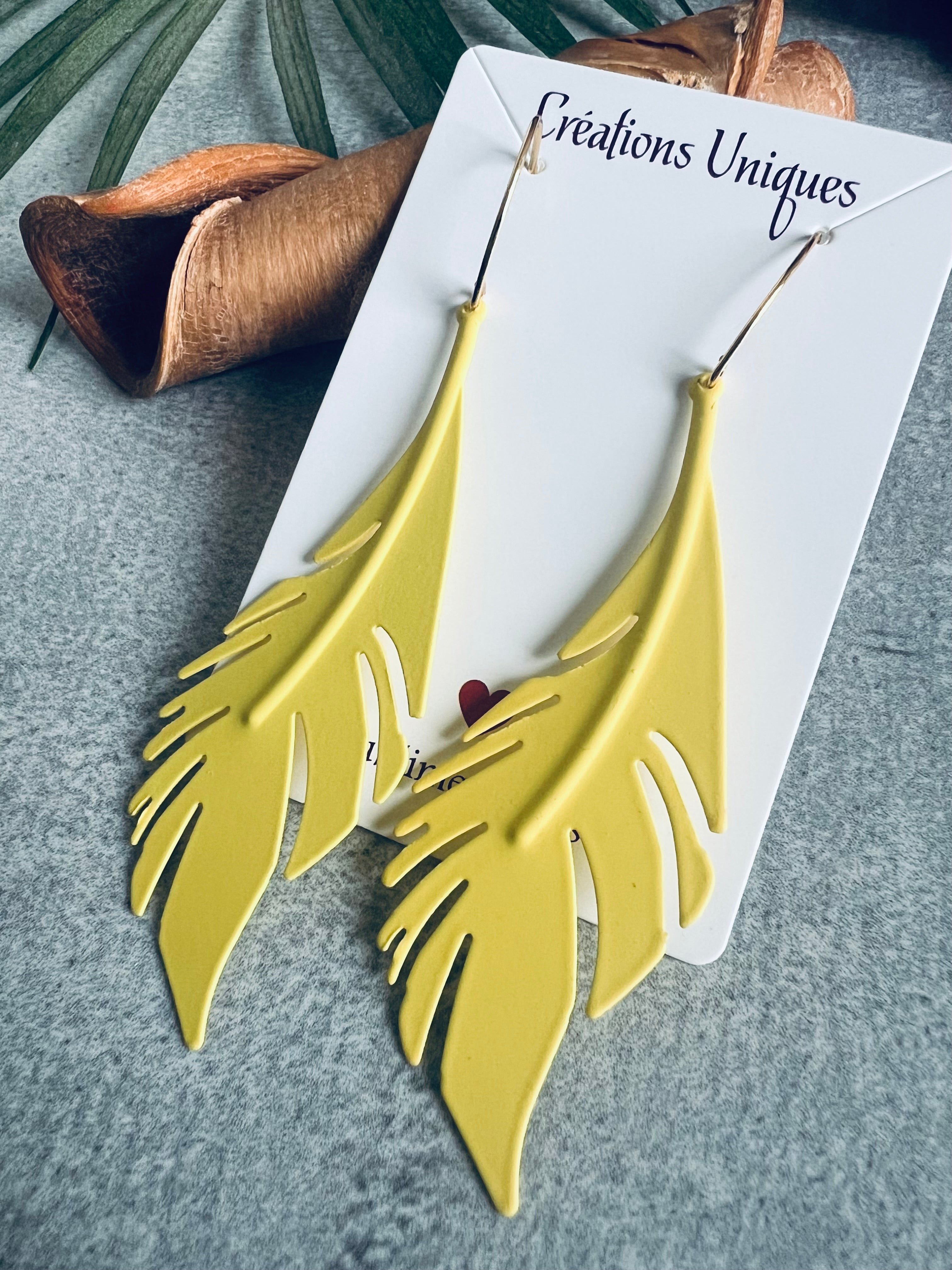 Boucles d’oreilles OFELIE longues feuilles jaunes
