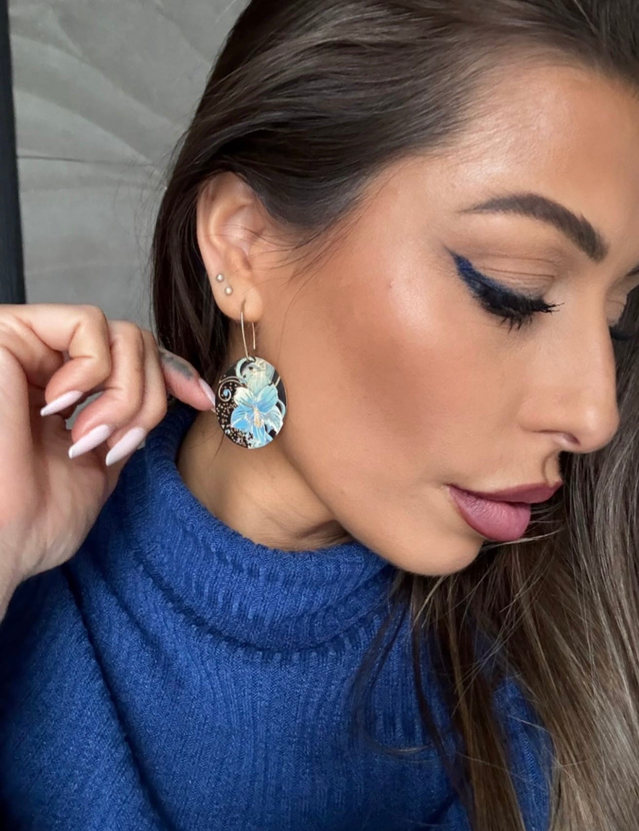 Boucles d’oreilles LINDSAY motif fleurs bleues - Créations Uniques