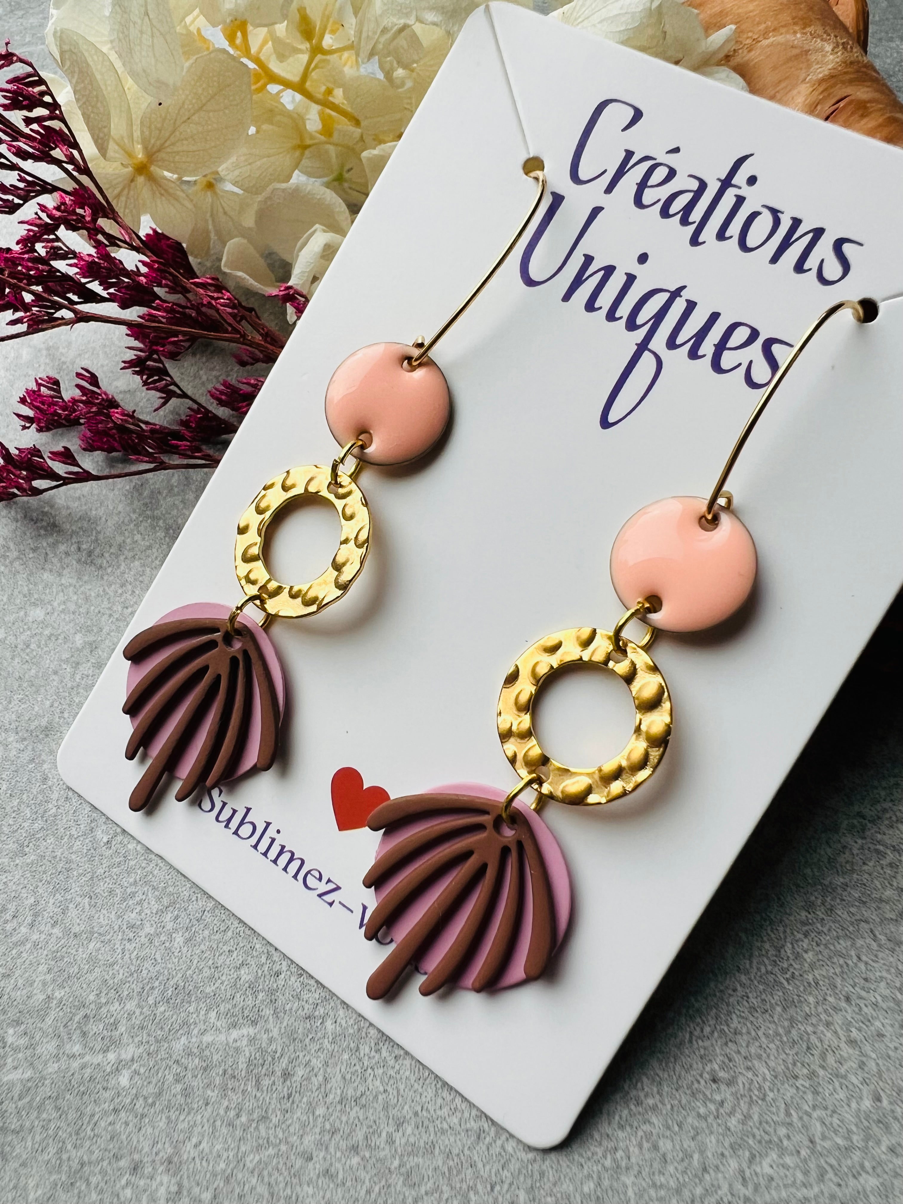 Boucles d’oreilles JORIS feuilles marrons - Créations Uniques