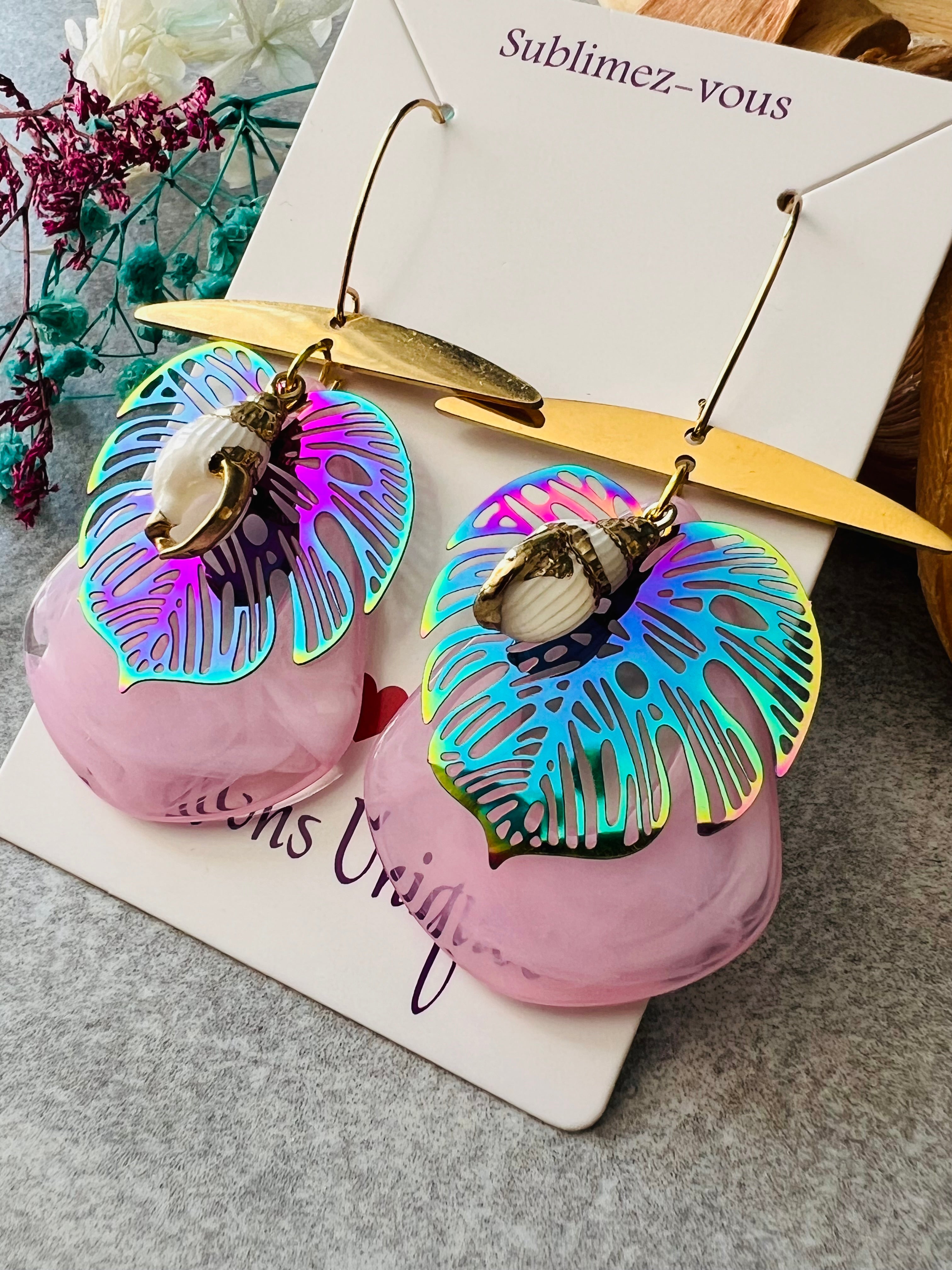 Boucles d’oreilles ENORA coquillages et gouttes résine - Créations Uniques