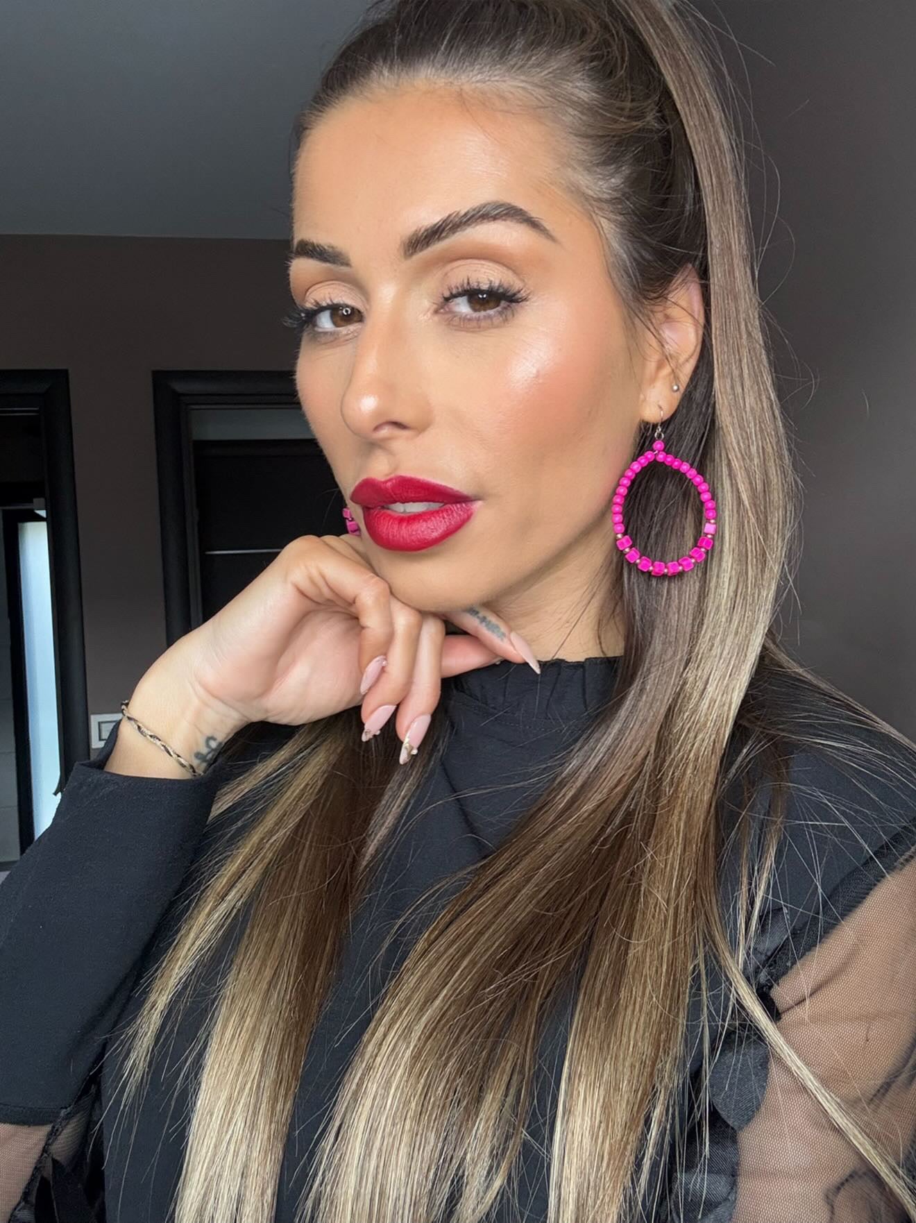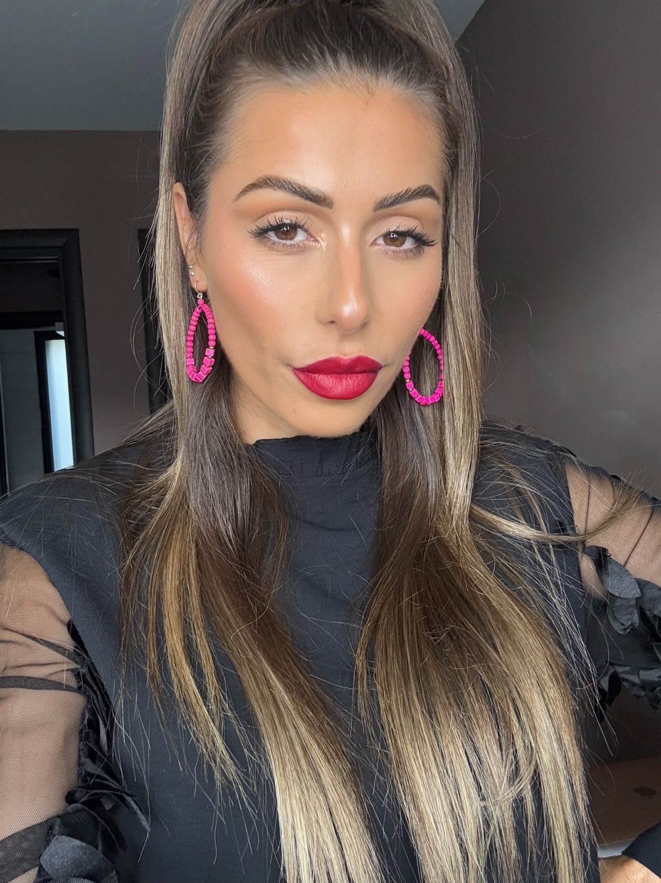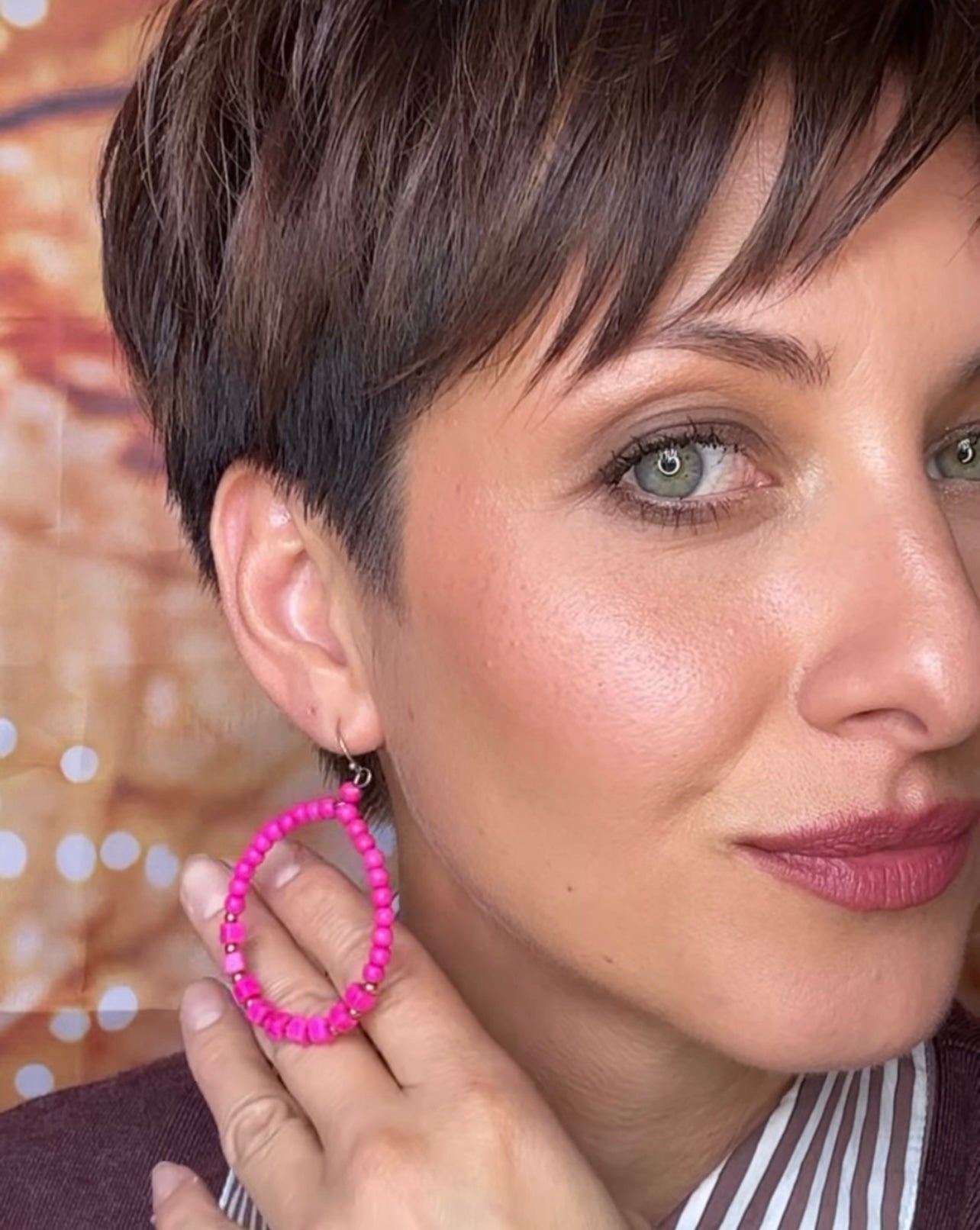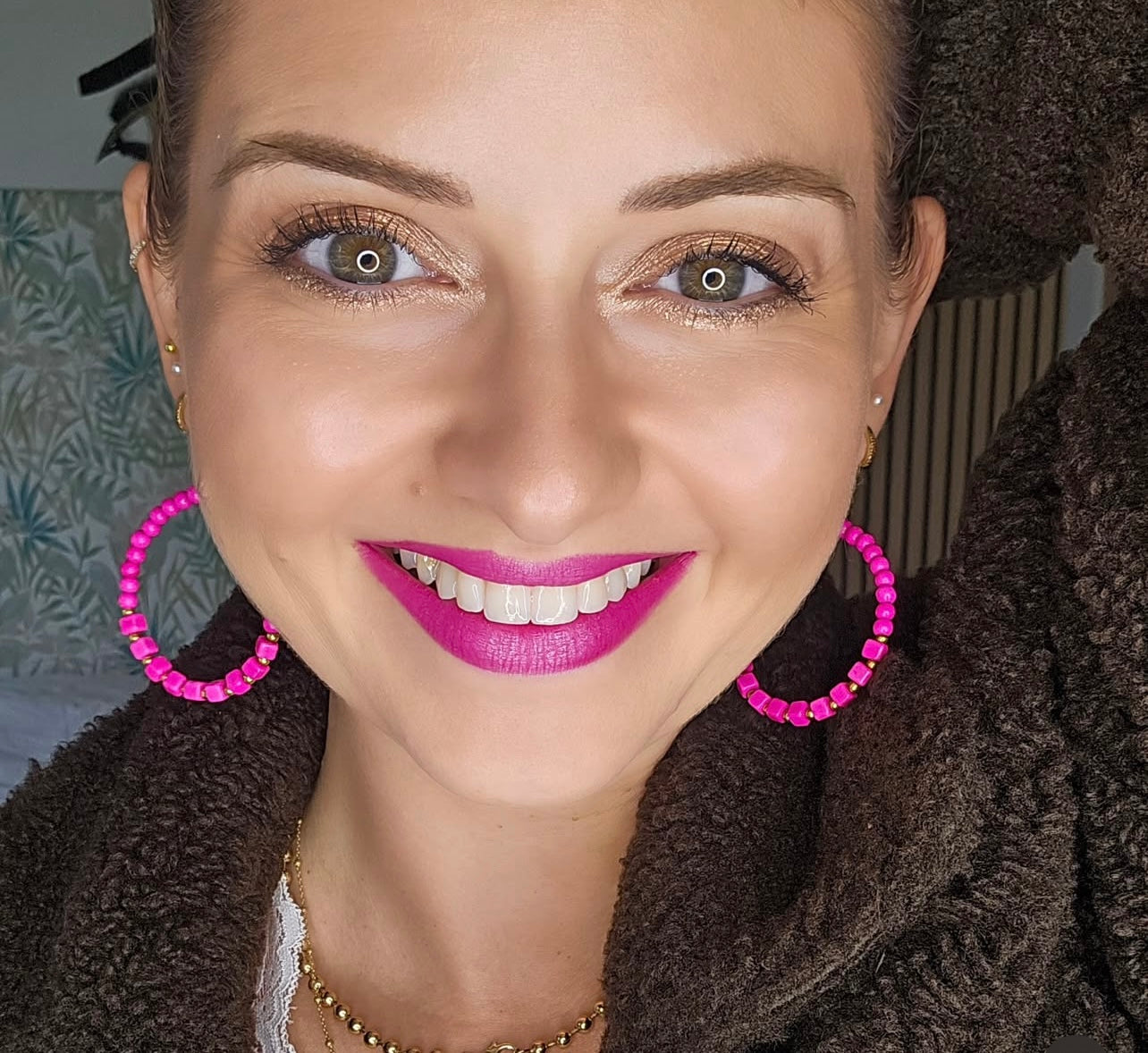 Boucles d’oreilles MAÏLYS perles rondes et cubes rose flashy - Créations Uniques