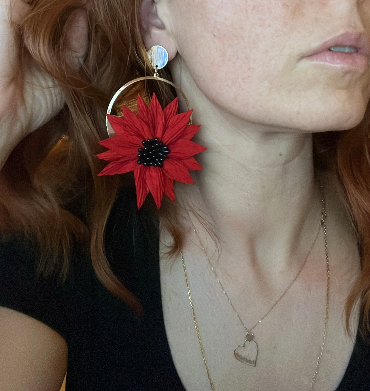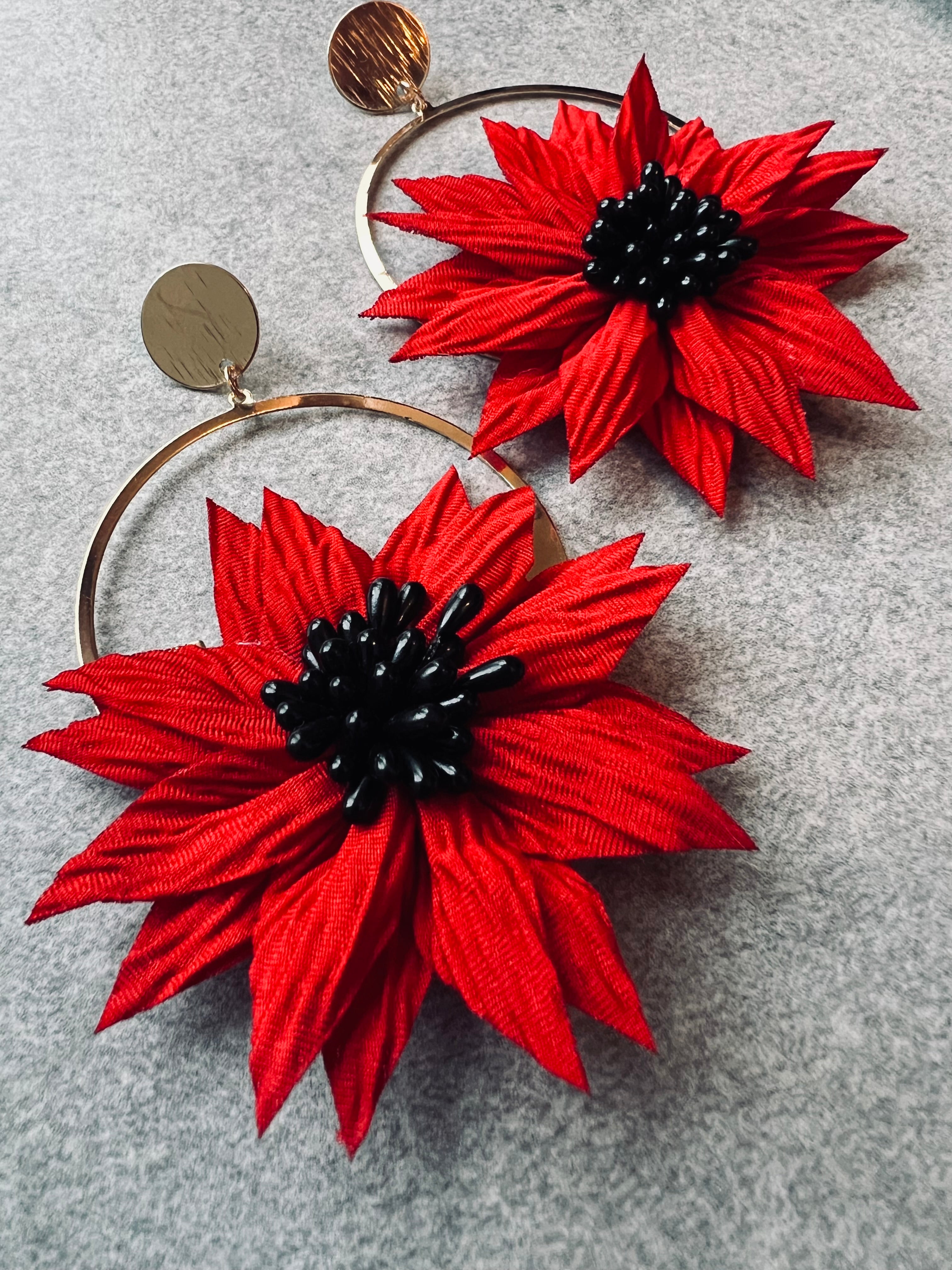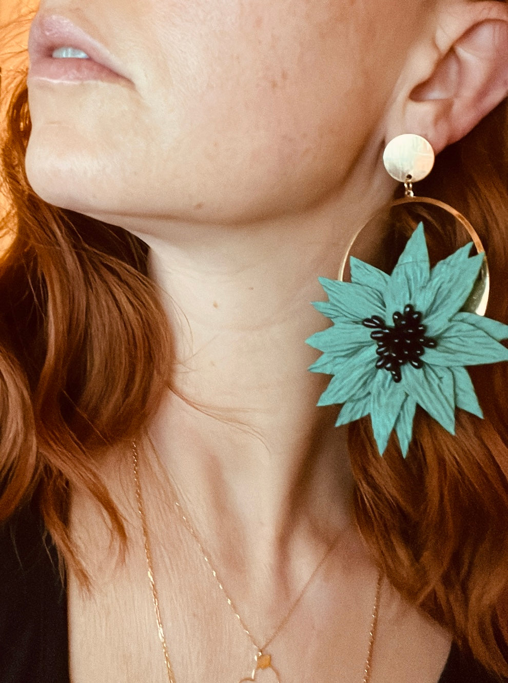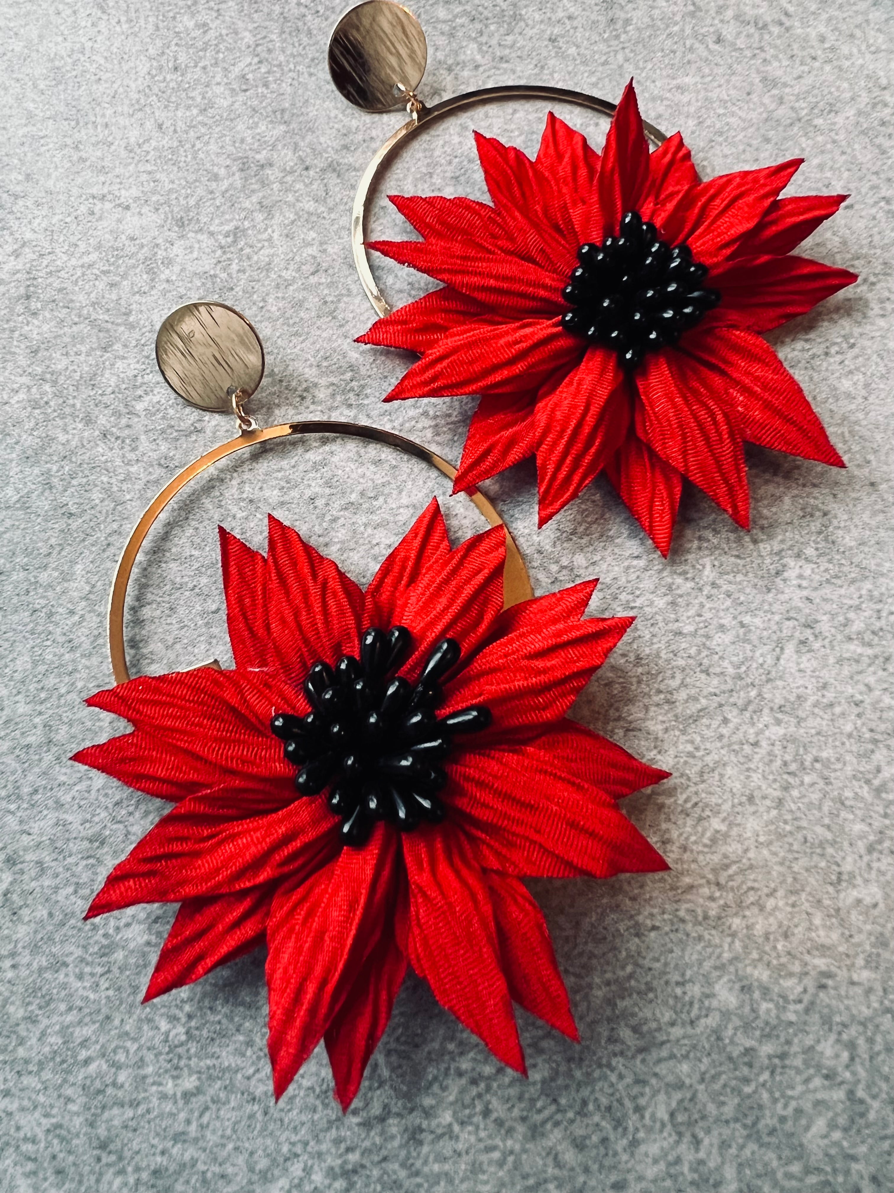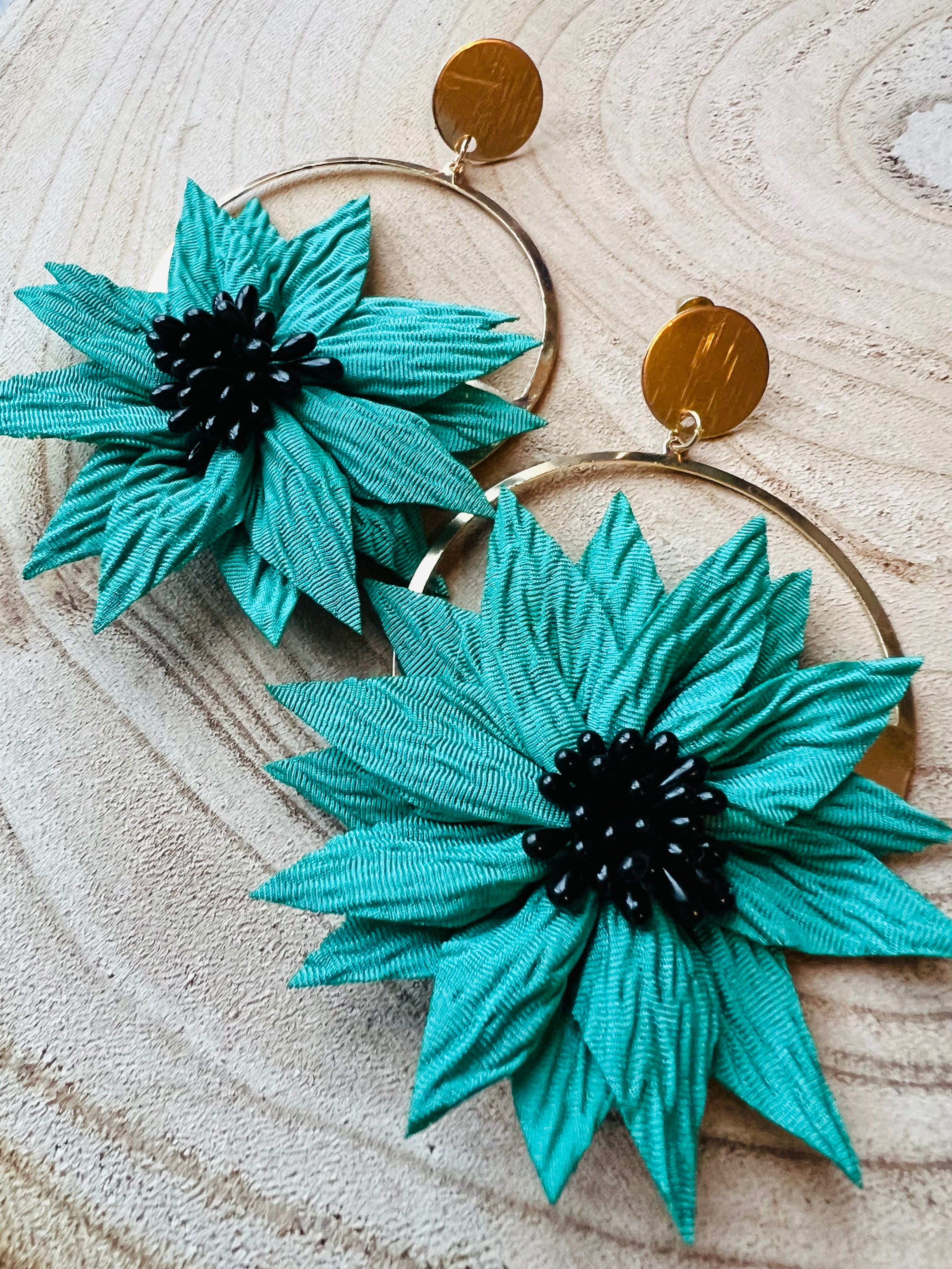 Boucles d’oreilles JEMMA grand modèle fleurs tissu