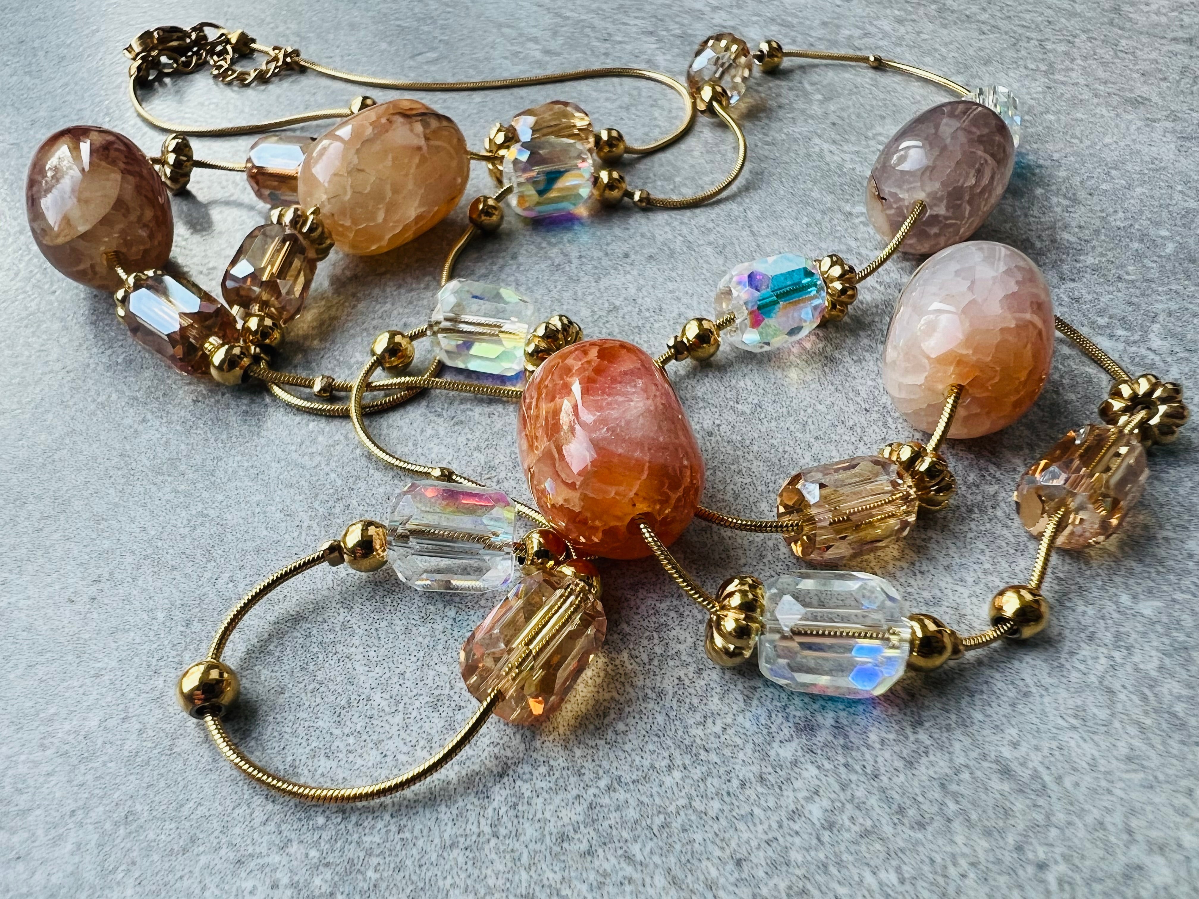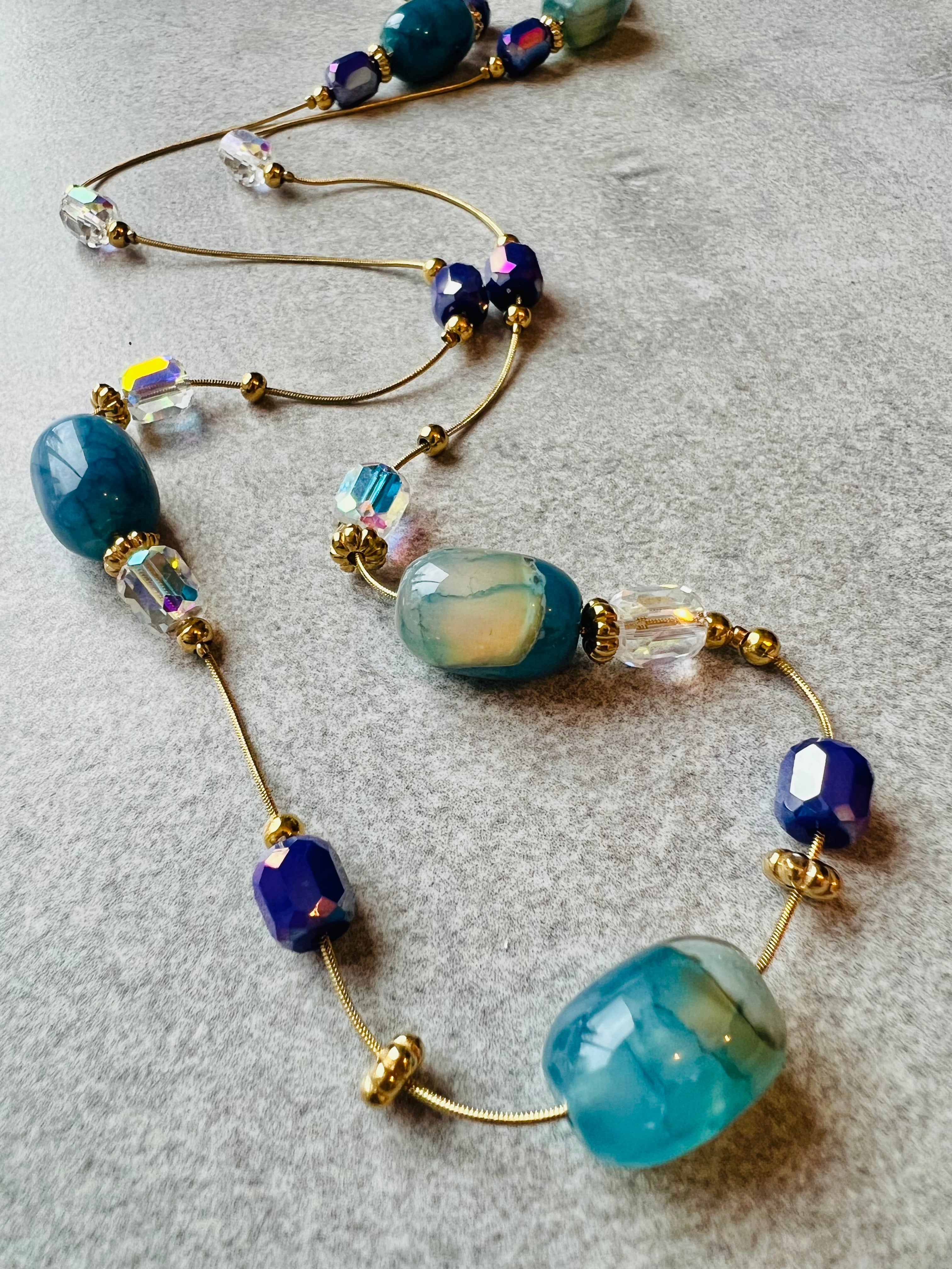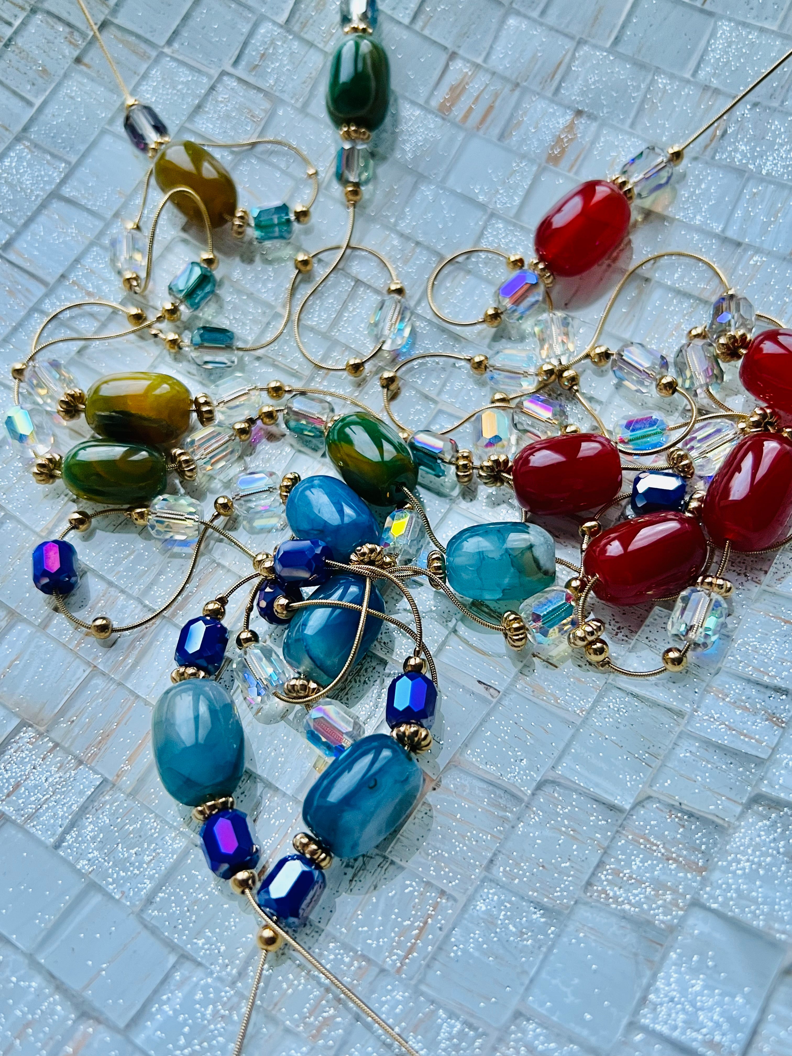 Collier sautoir HELENA perles rose Terracotta, Marine, vert olive et bordeaux