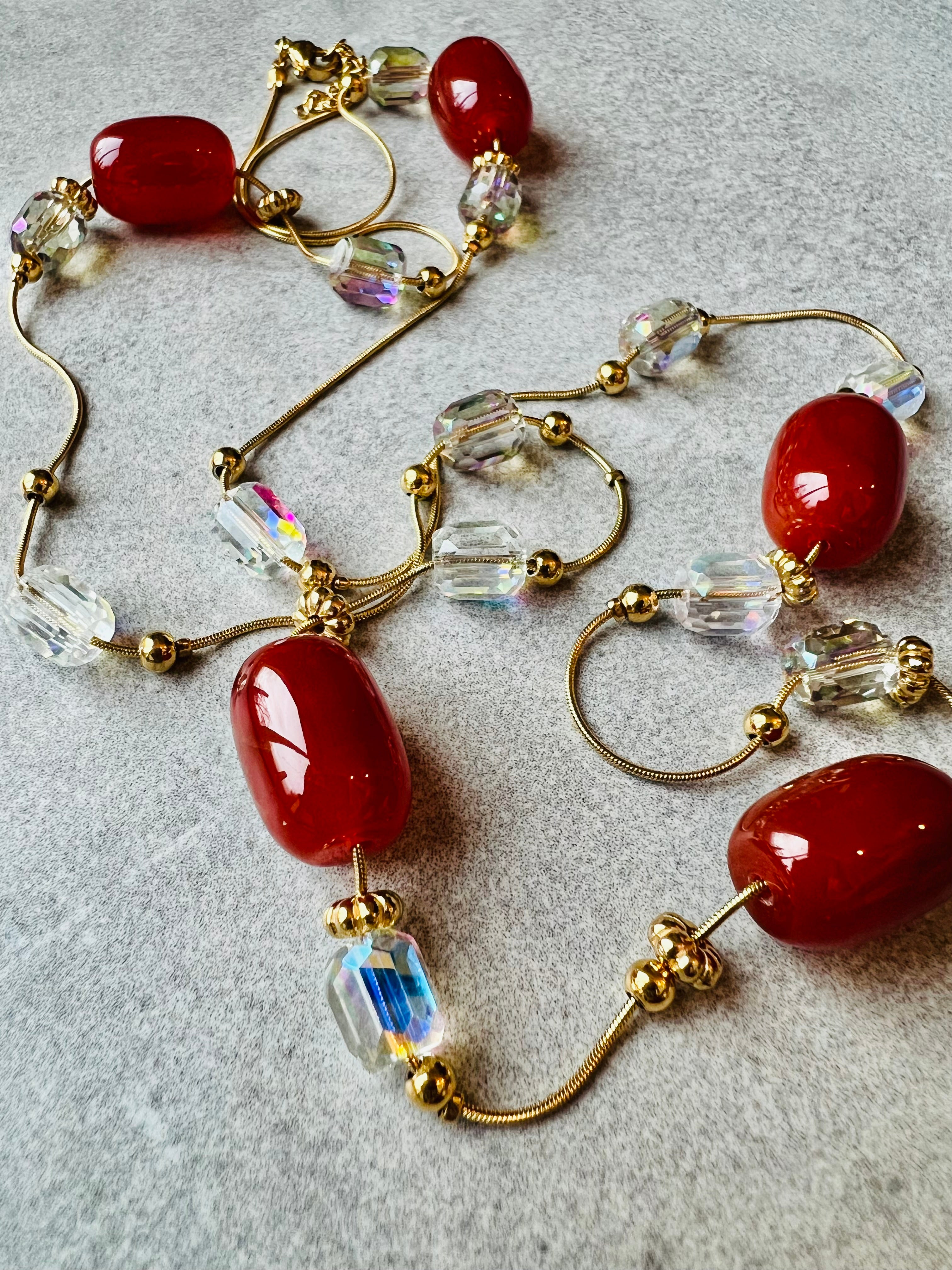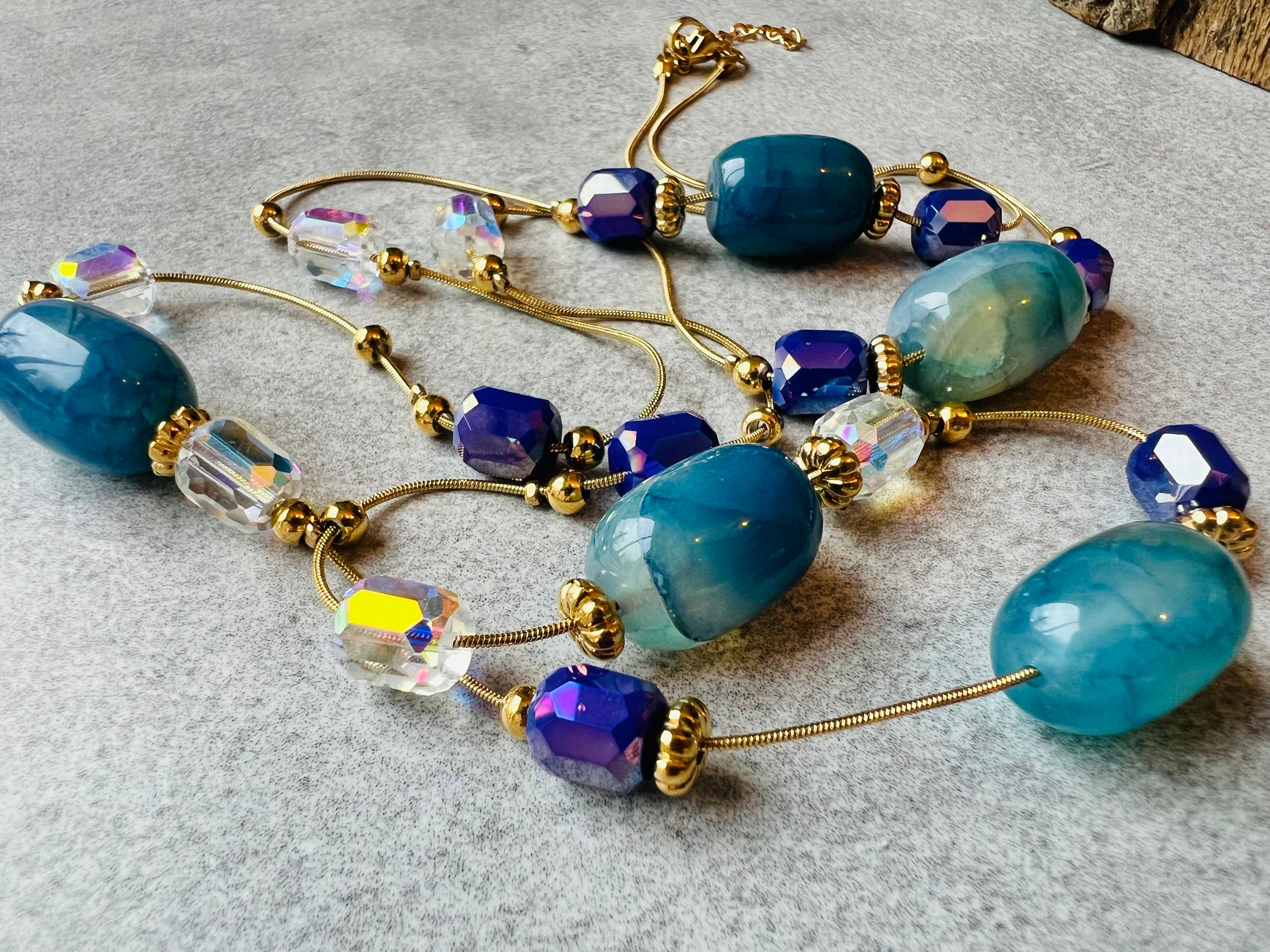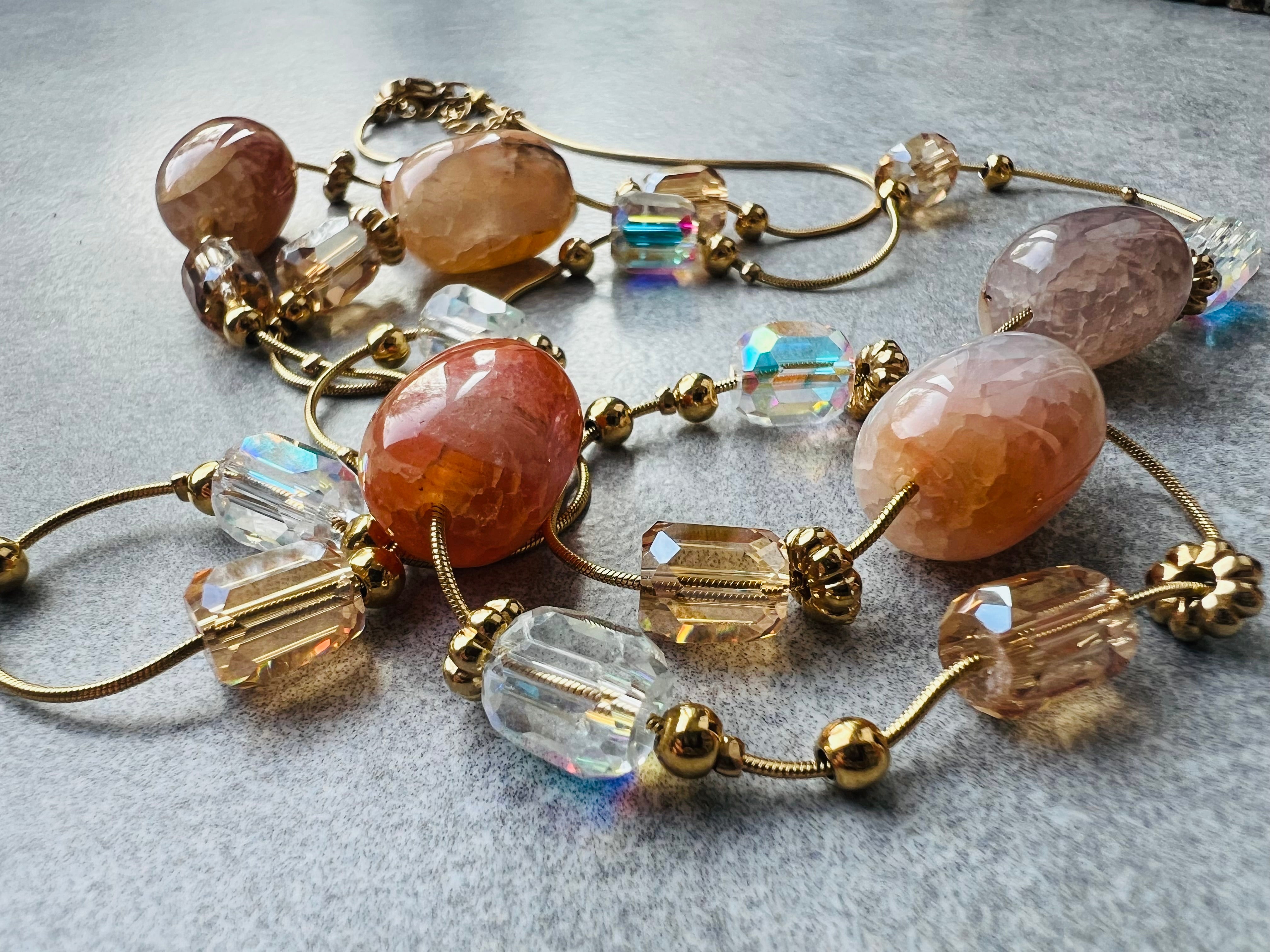 Collier sautoir HELENA perles rose Terracotta, Marine, vert olive et bordeaux