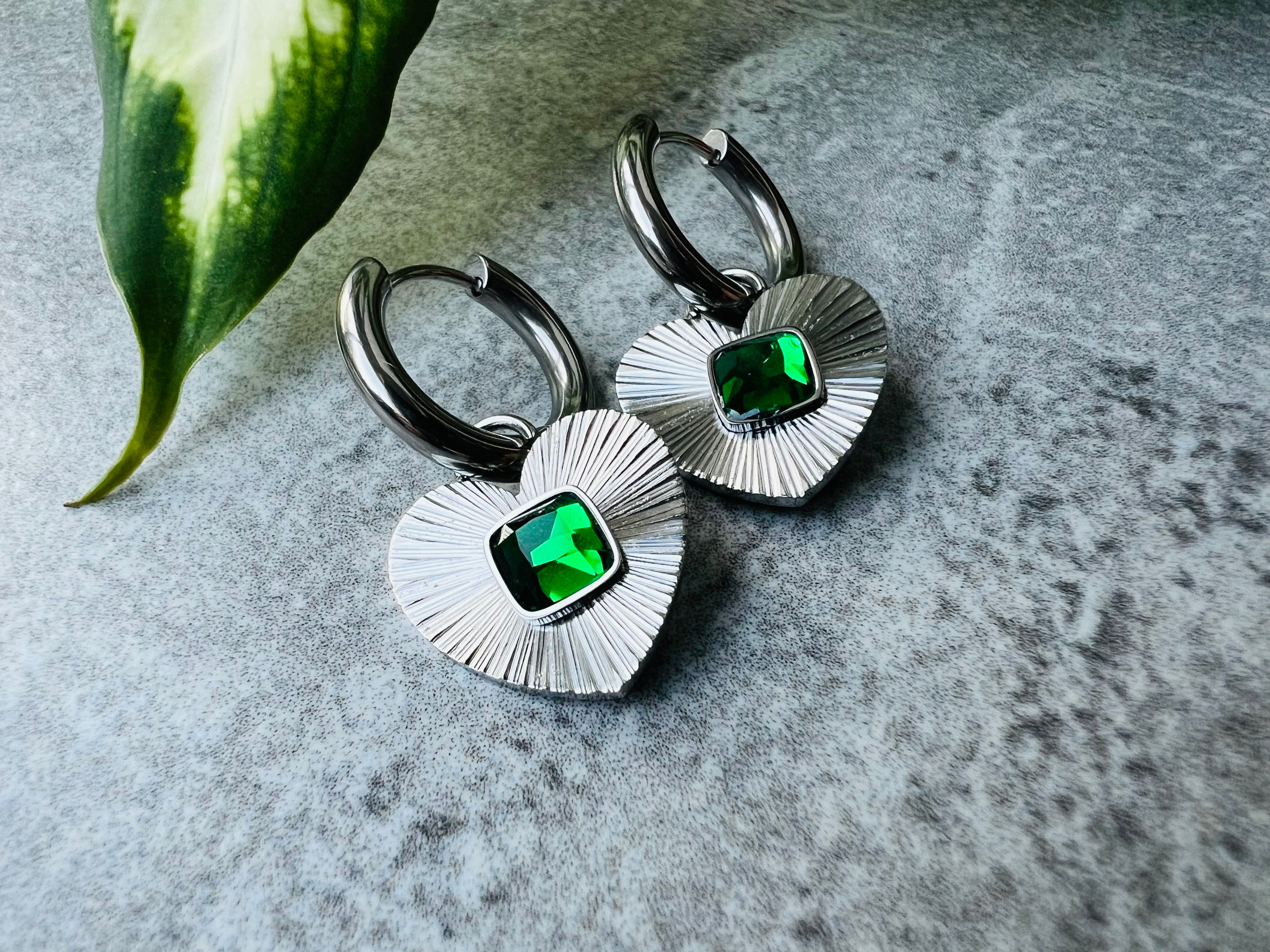 Boucles d’oreilles TONIA créoles acier cœur vert émeraude