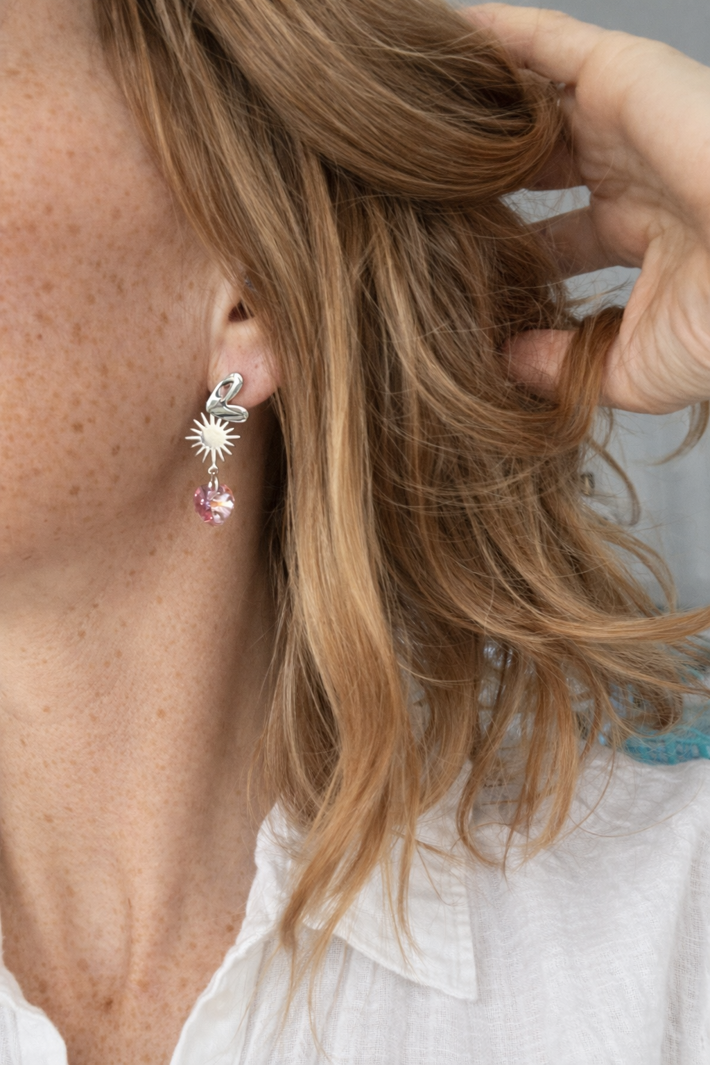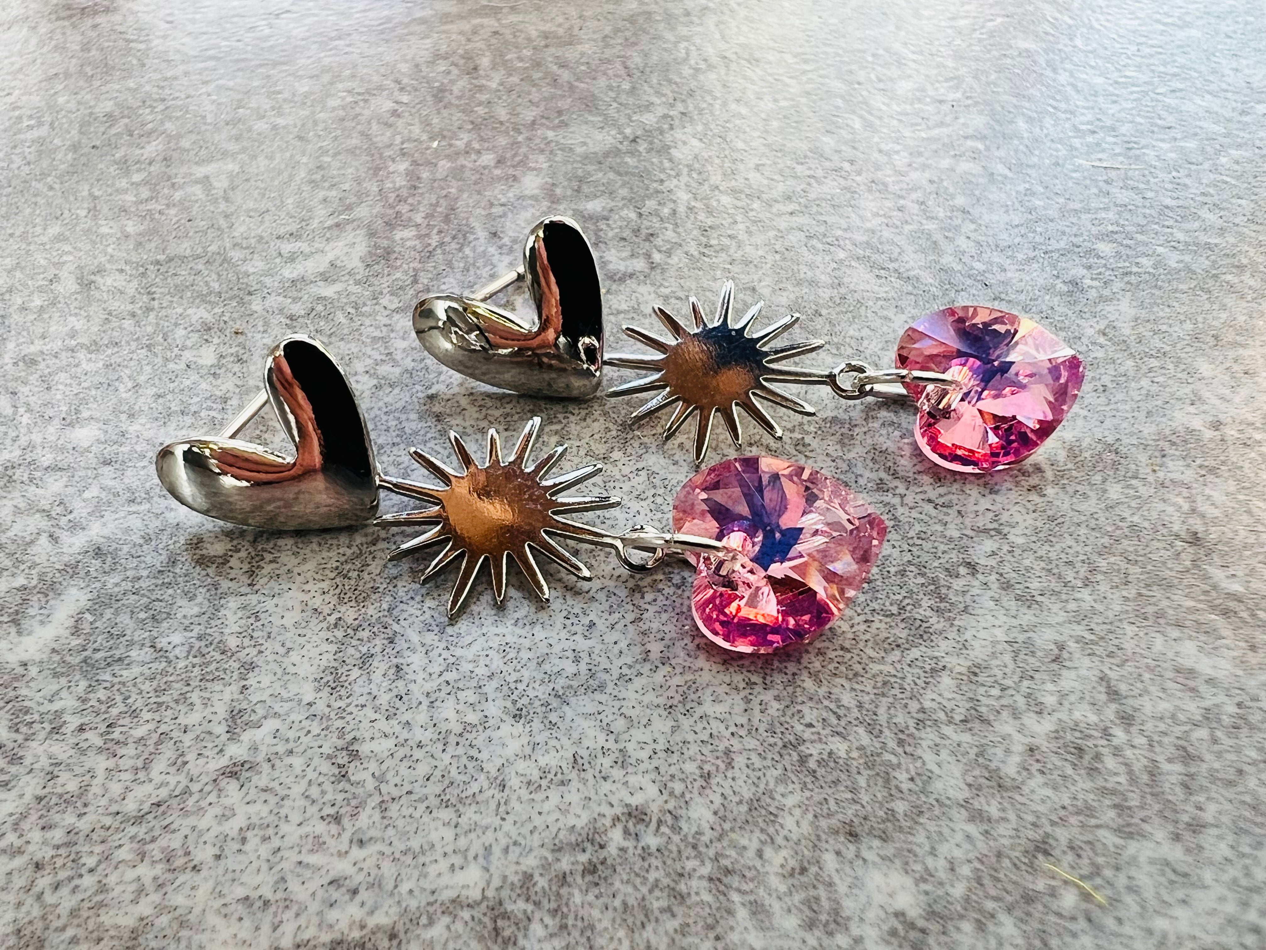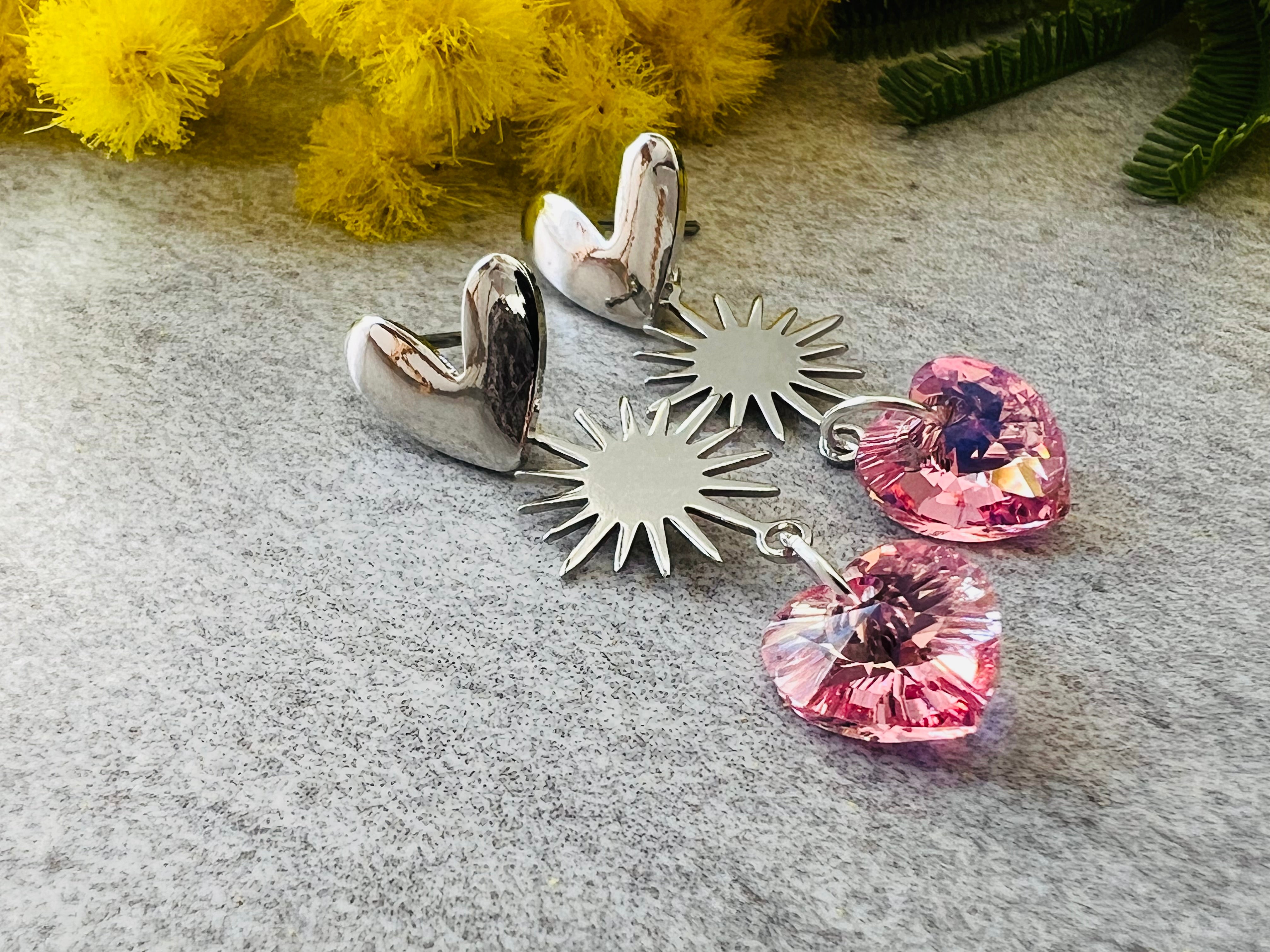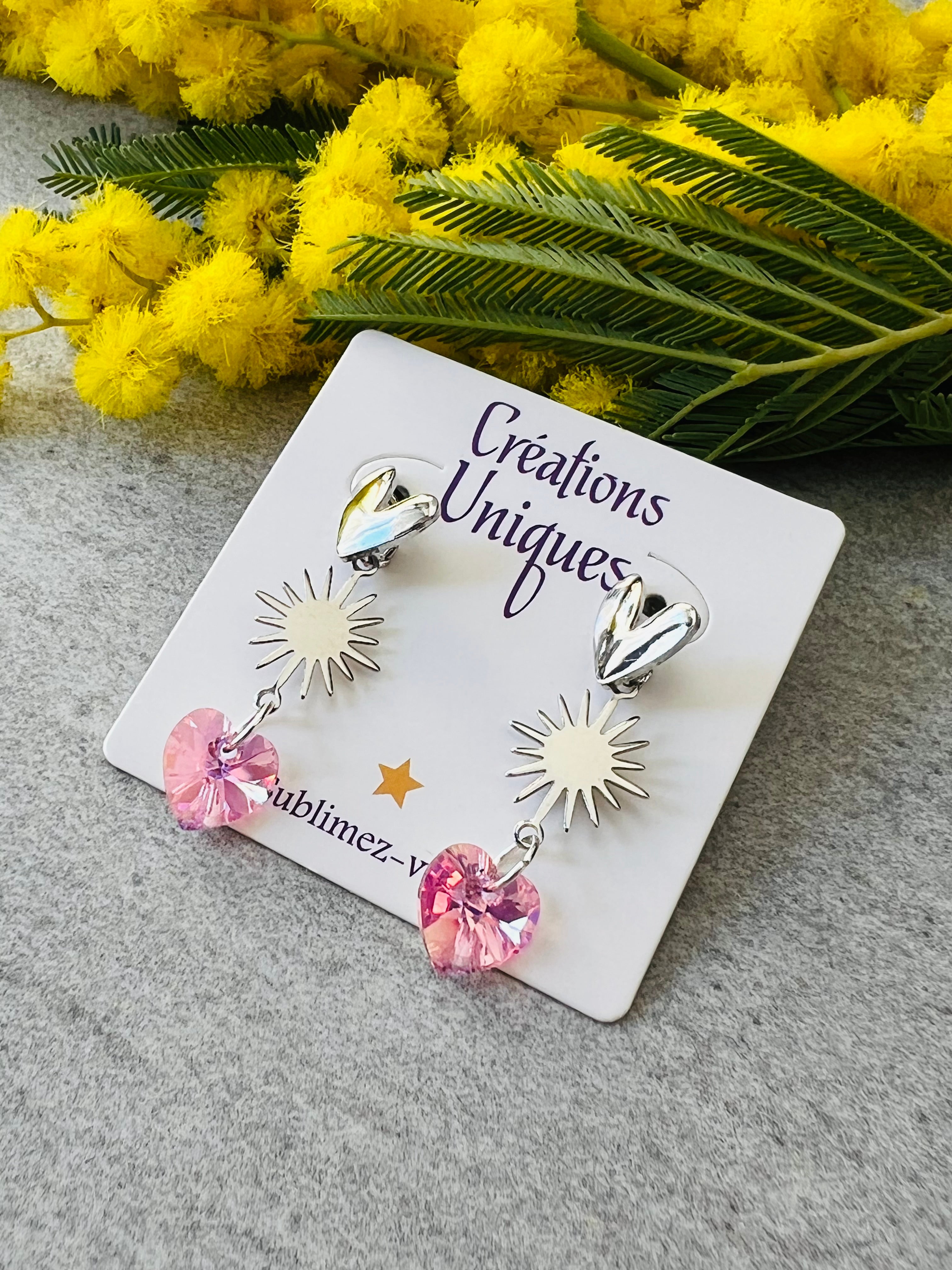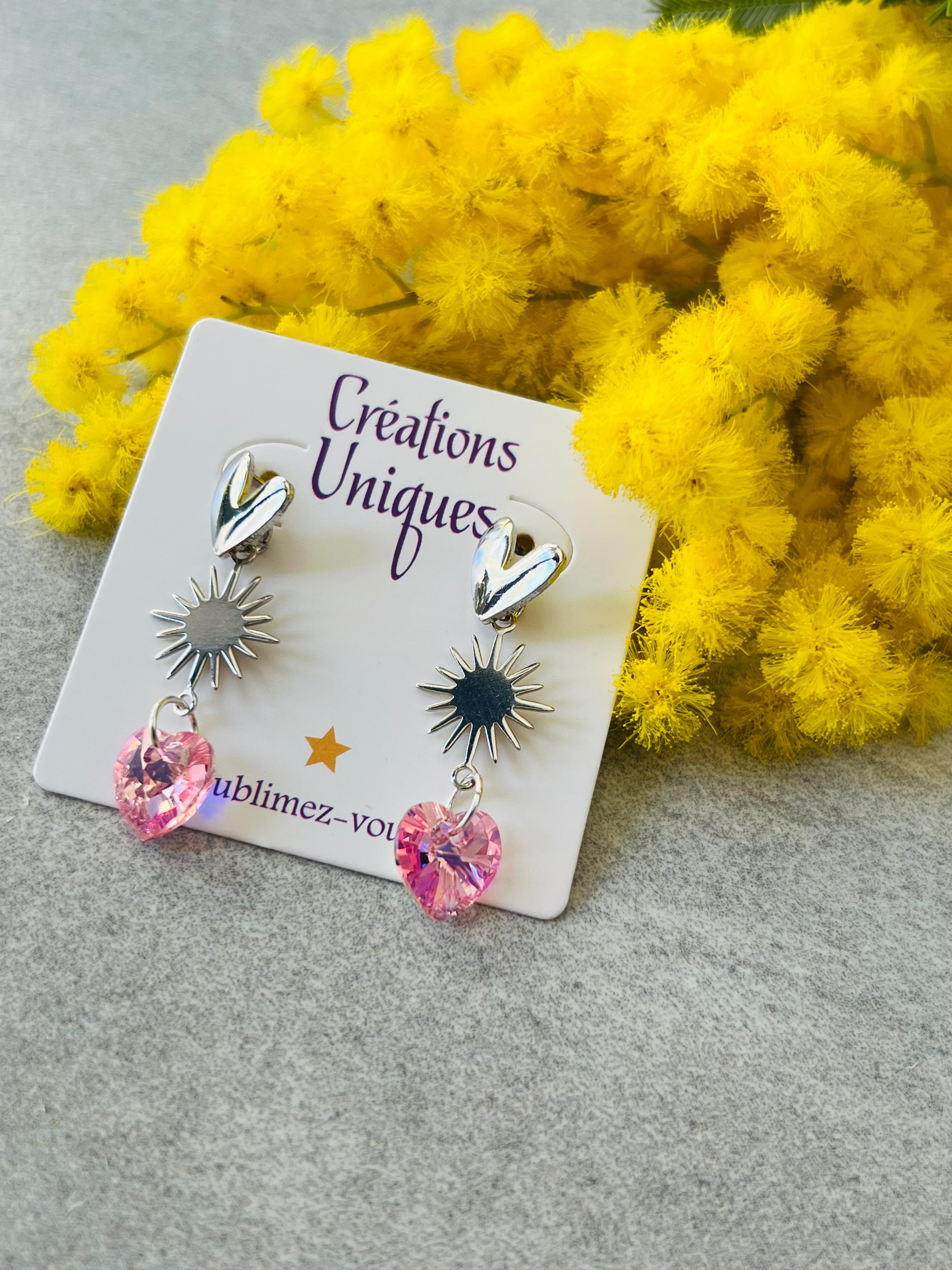 Boucles d’oreilles cœurs Crystal rose - Créations Uniques