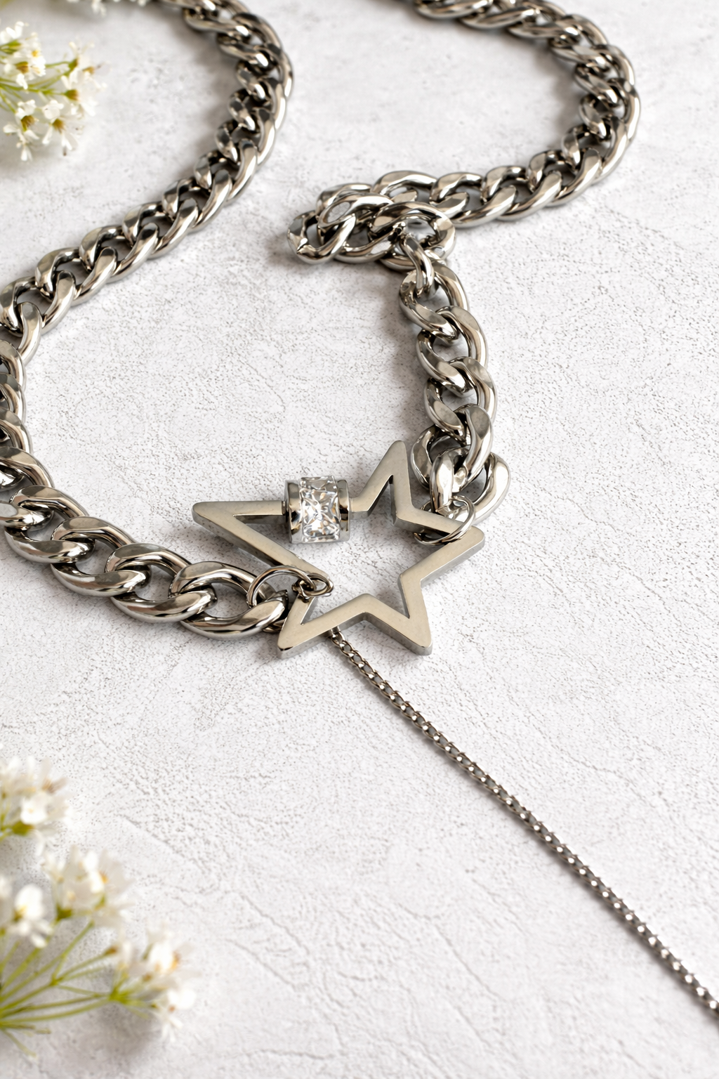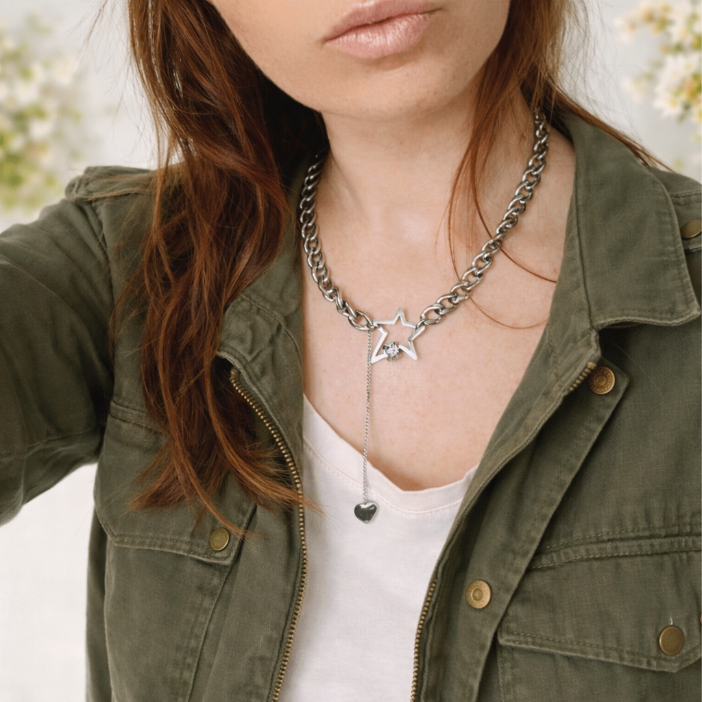 Collier STAR maillons et étoiles argentés
