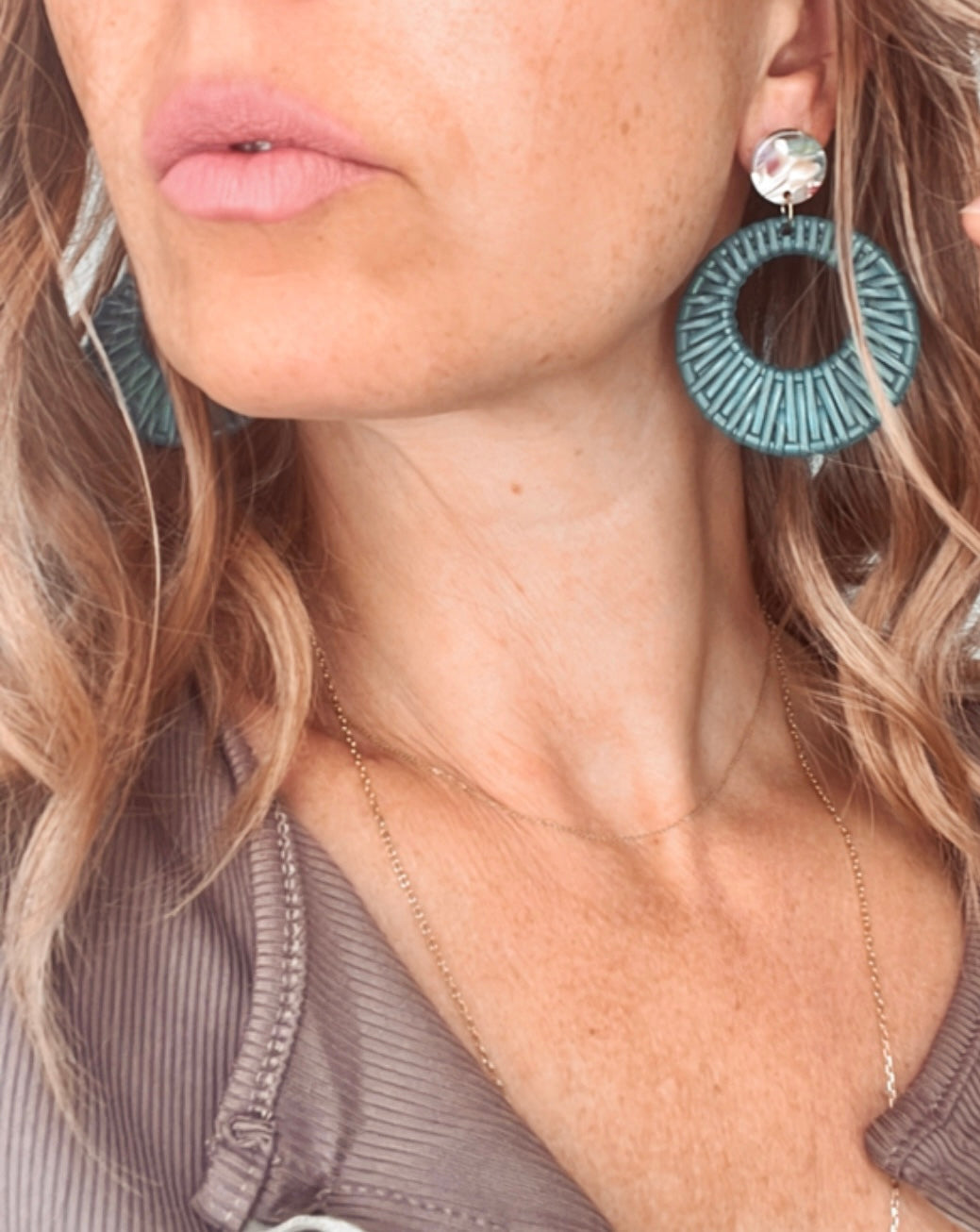 DHALIA turquoise rattan-effect earrings - Unique Creations