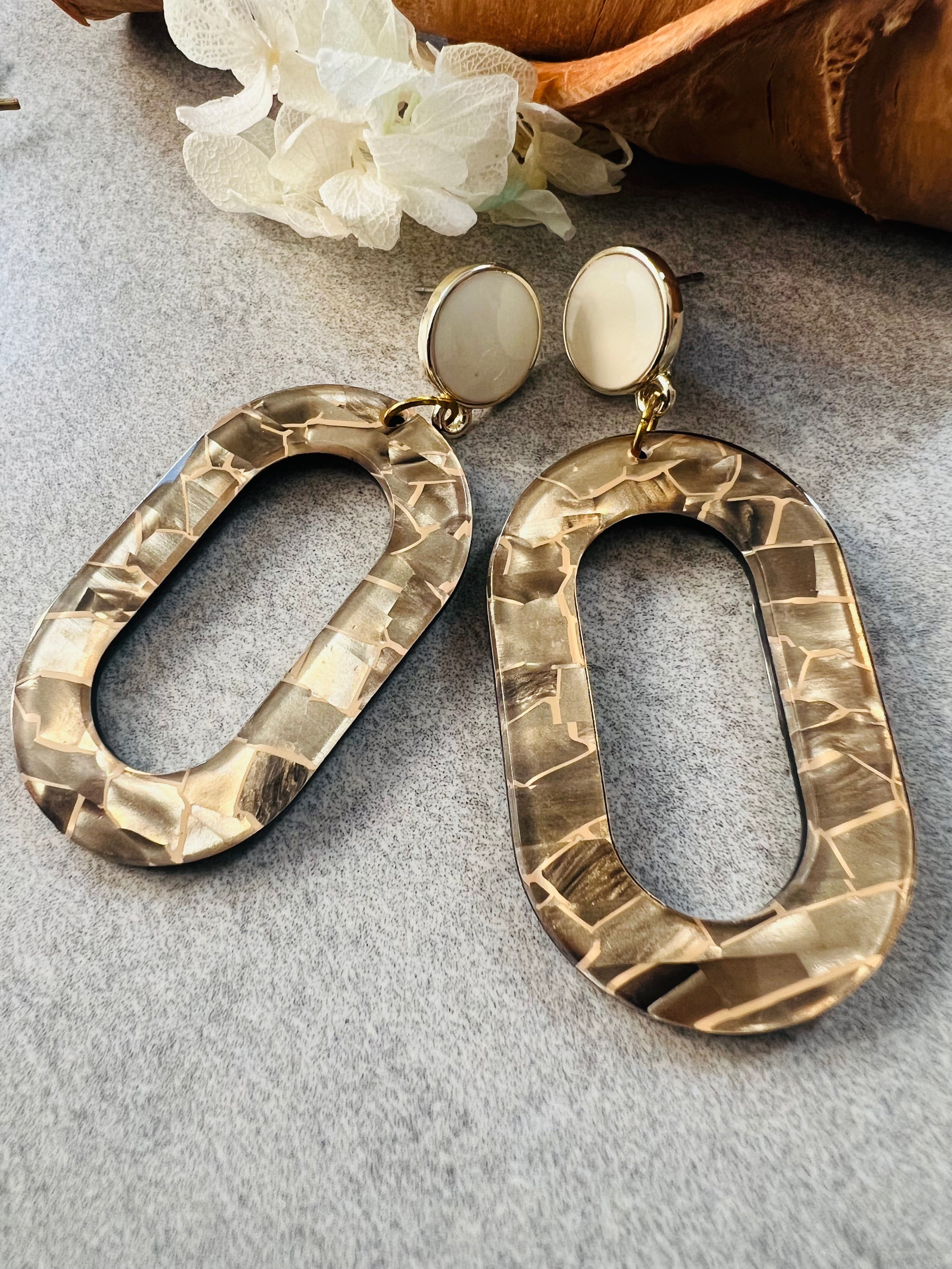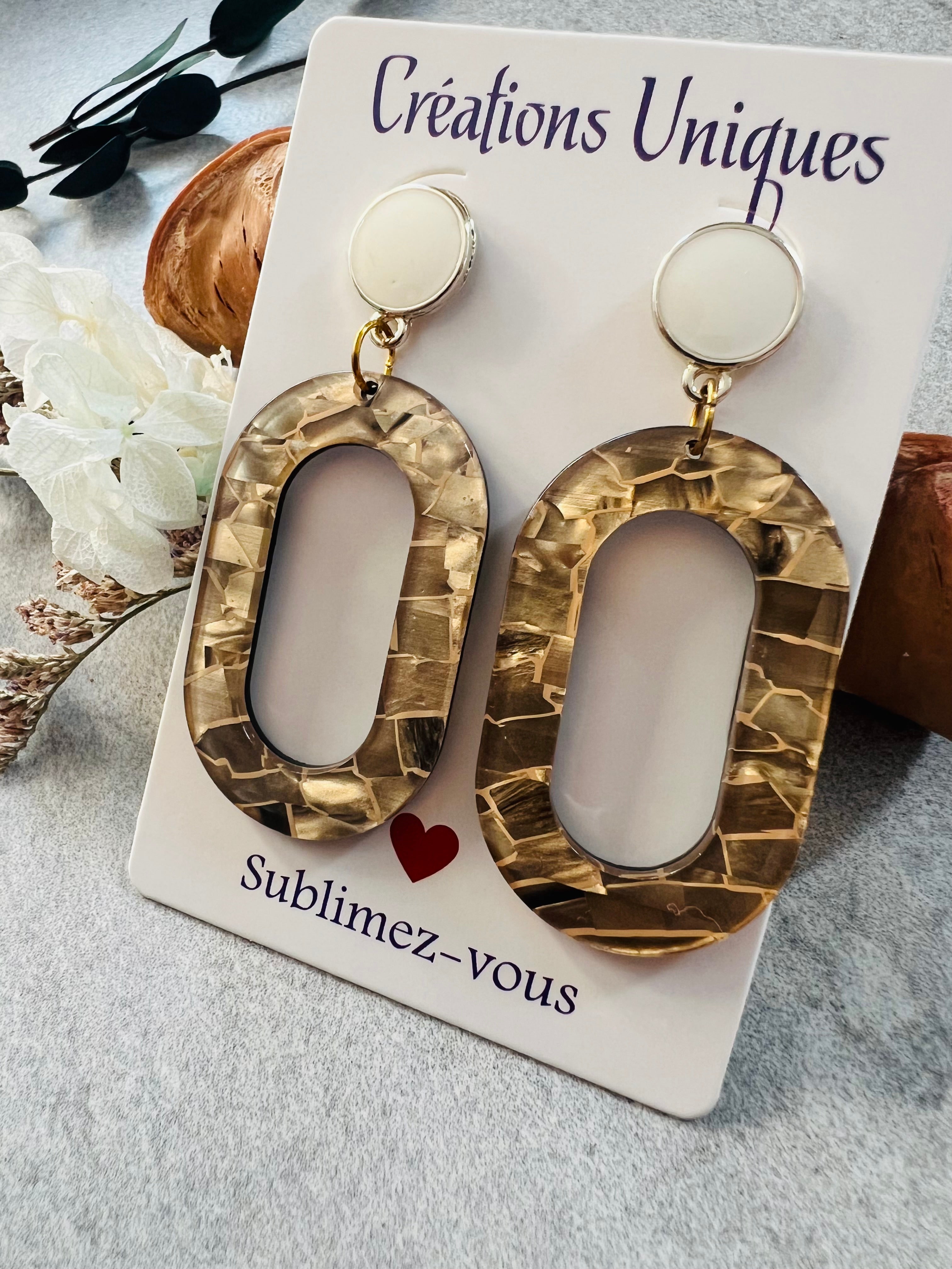 VIRGINIE earrings in frosted brown resin - Unique Creations