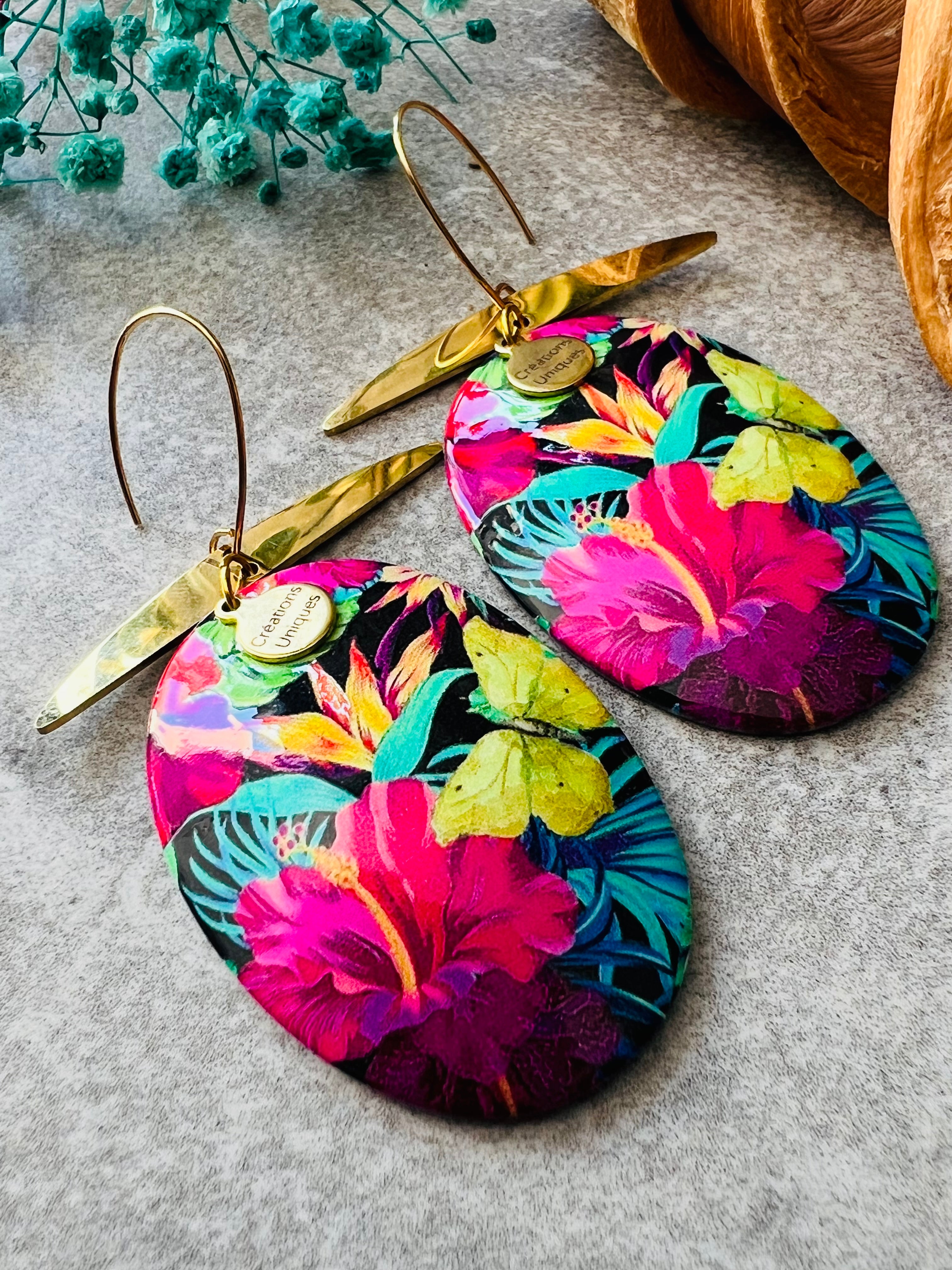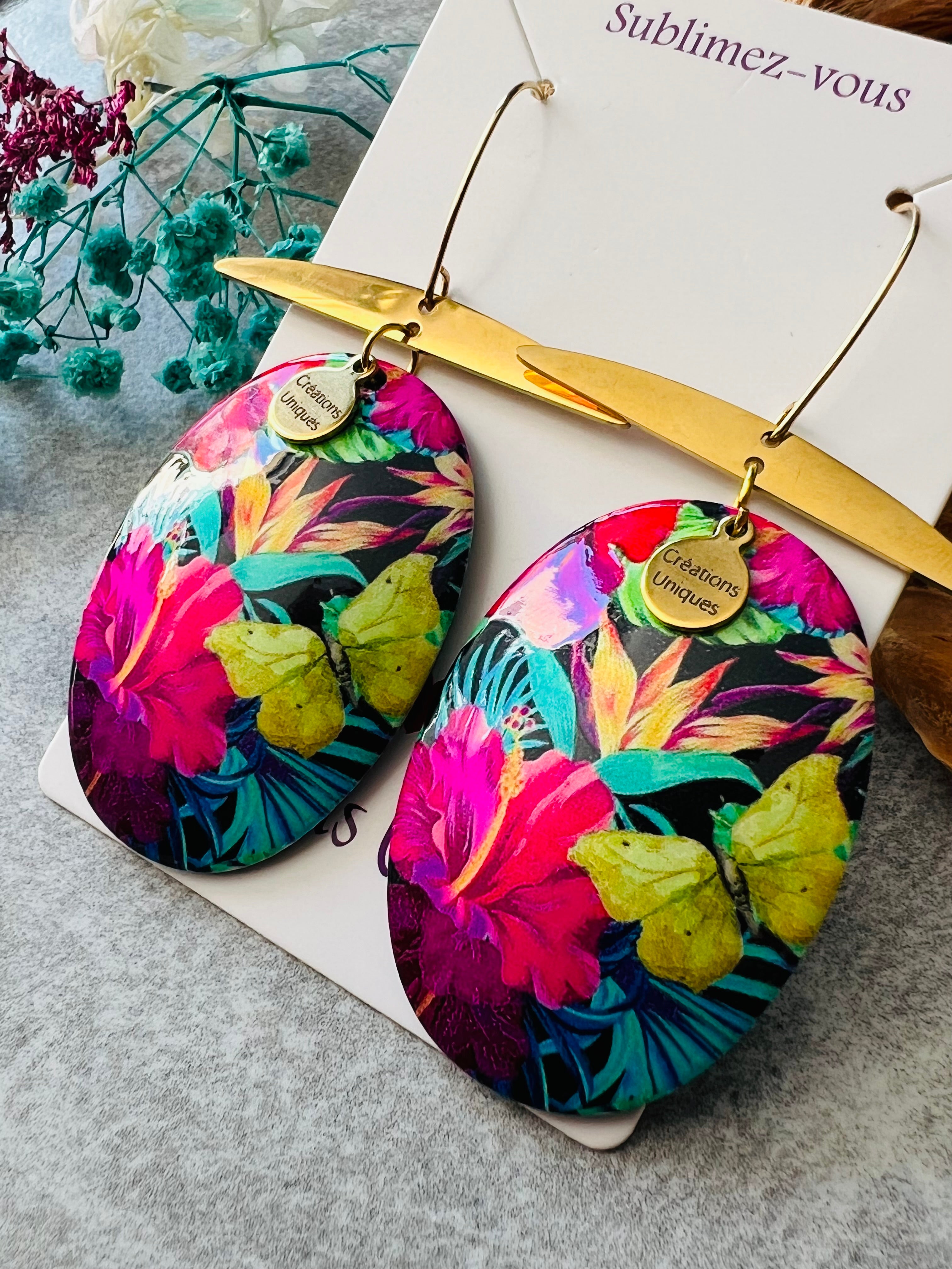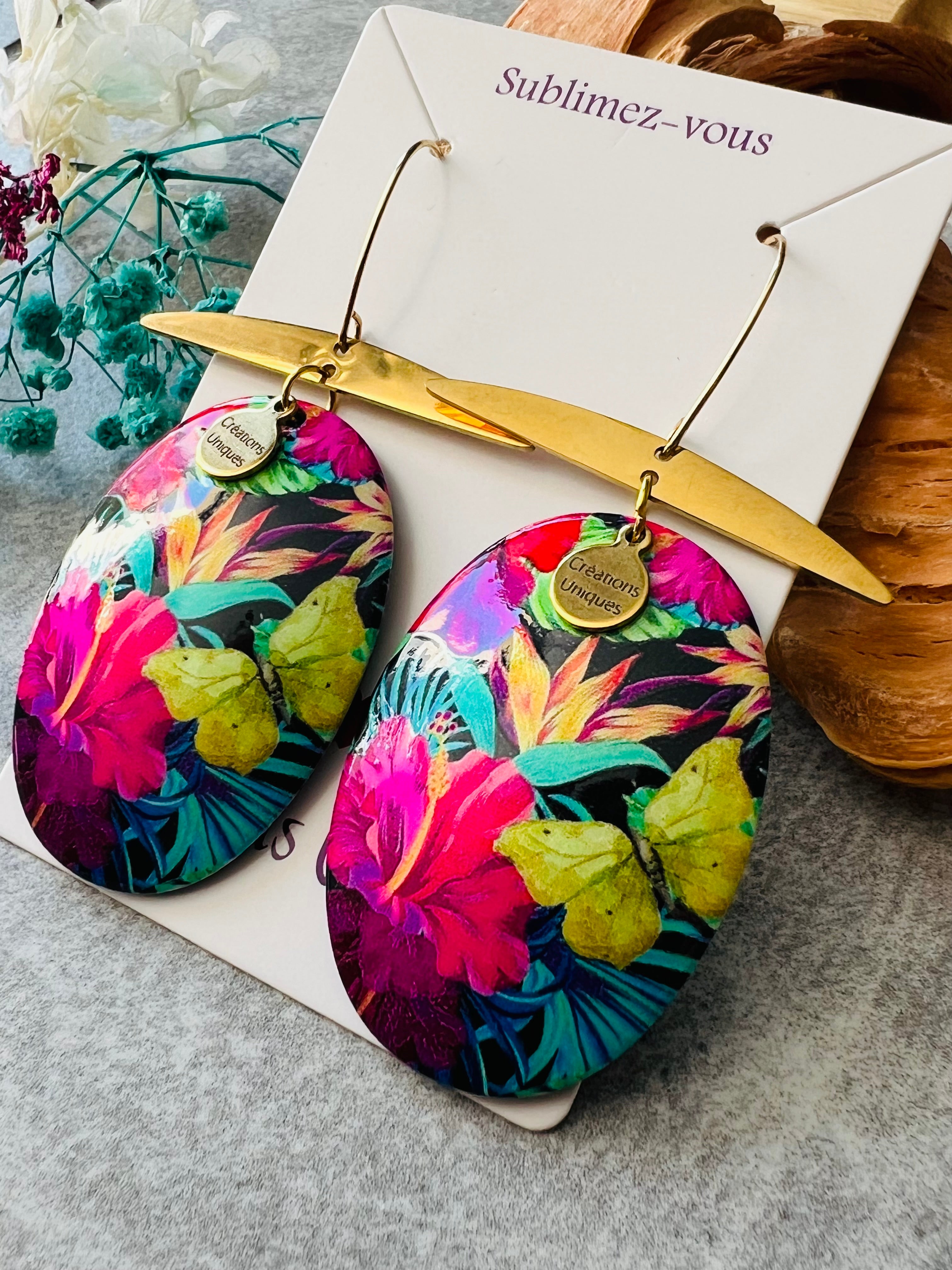 EGLANTINE earrings with hibiscus and butterfly motif - Unique Creations
