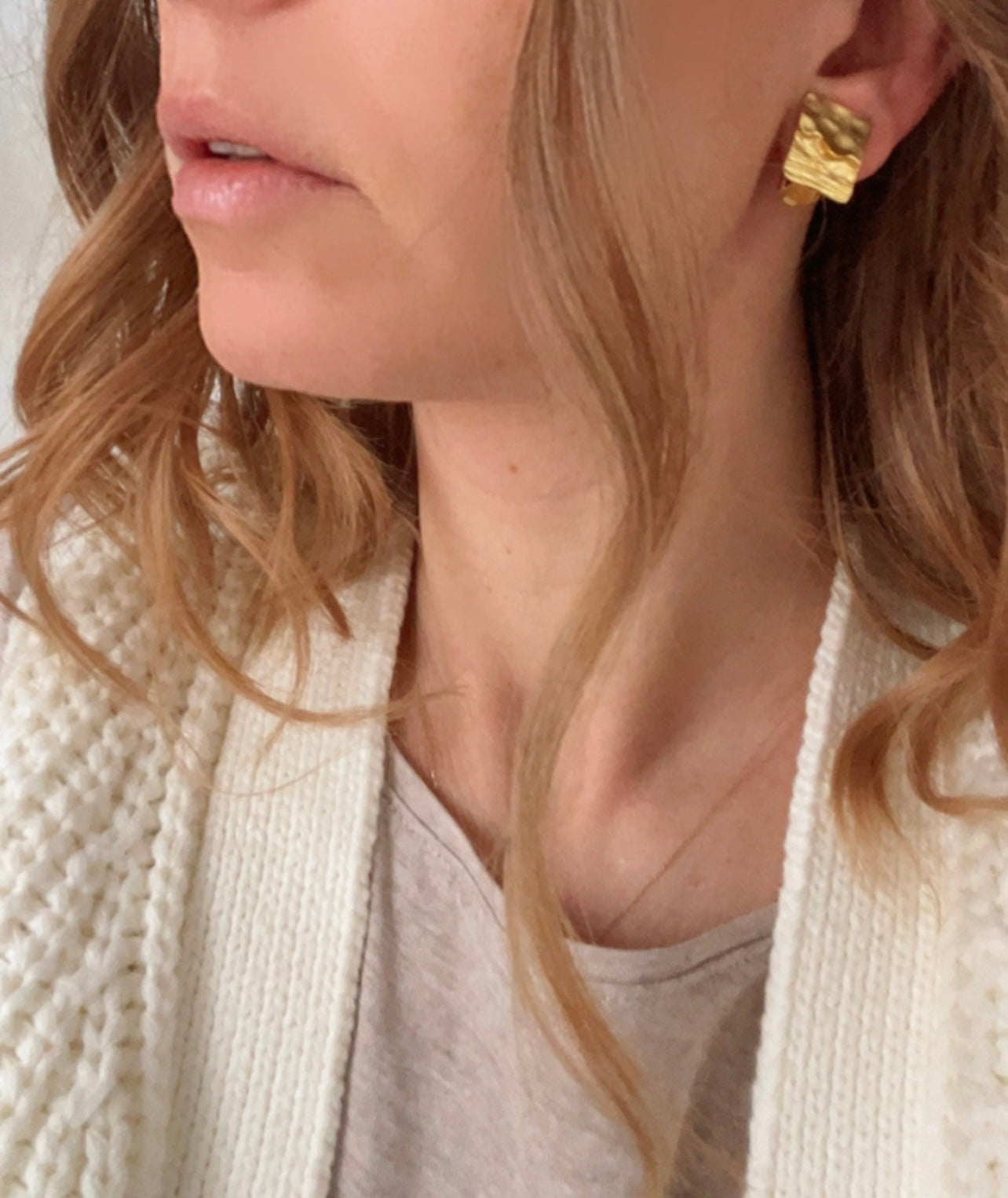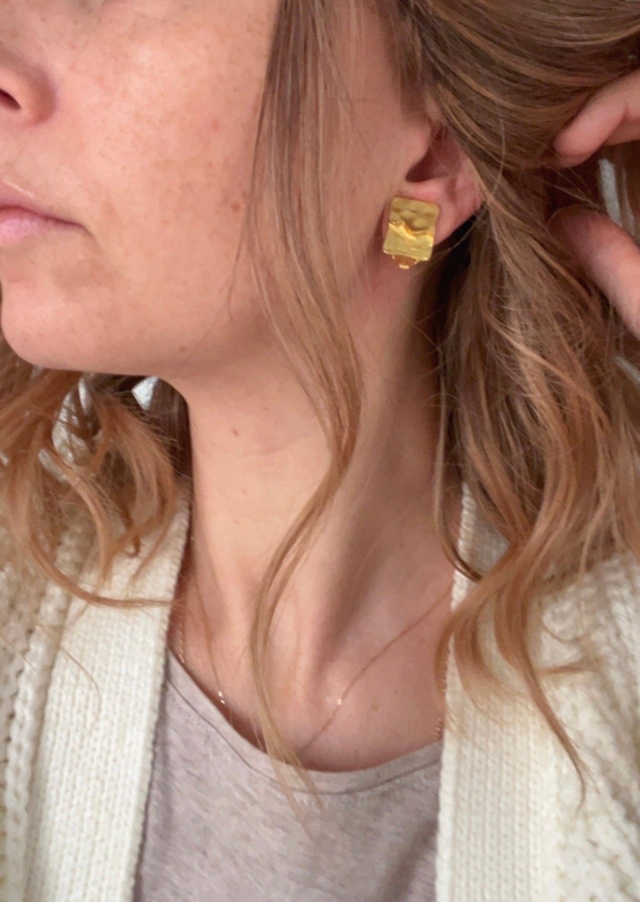 Small and elegant, these clip-on earrings feature a rectangular shape with a dual texture: partly hammered, partly brushed. They are simple yet very stylish. Wear them every day with your work outfit, or with your nightgown... They go with everything!