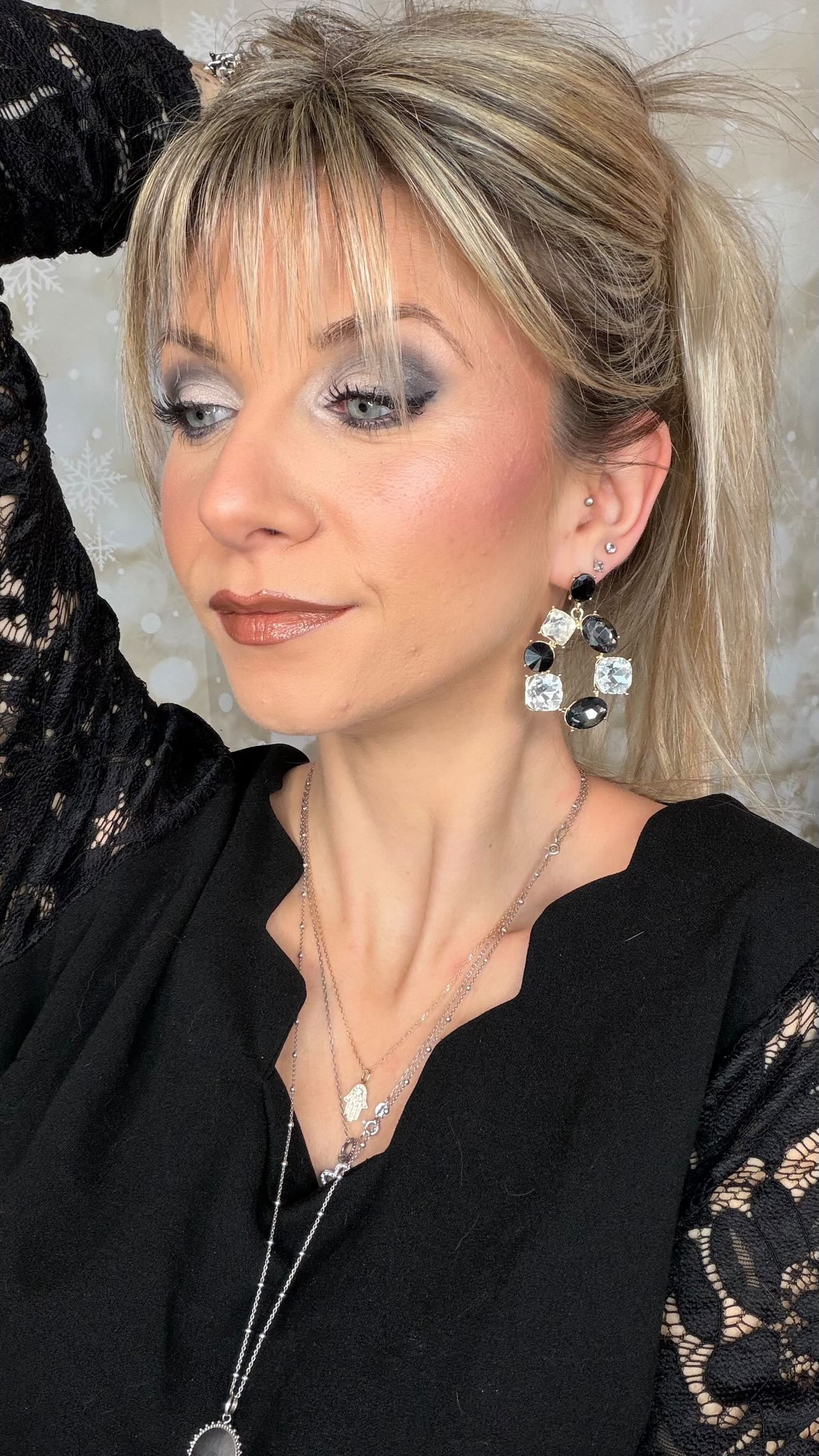 Boucles d’oreilles VALERIANNE style brillant noir et blanc