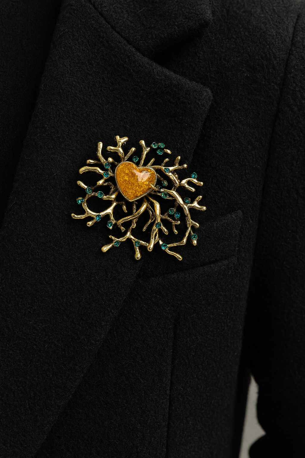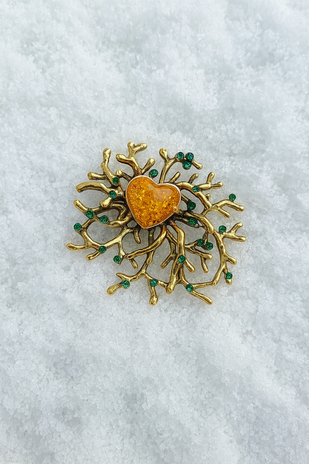NOEMI brooch, fairy-tale golden foliage, emerald and amber rhinestones