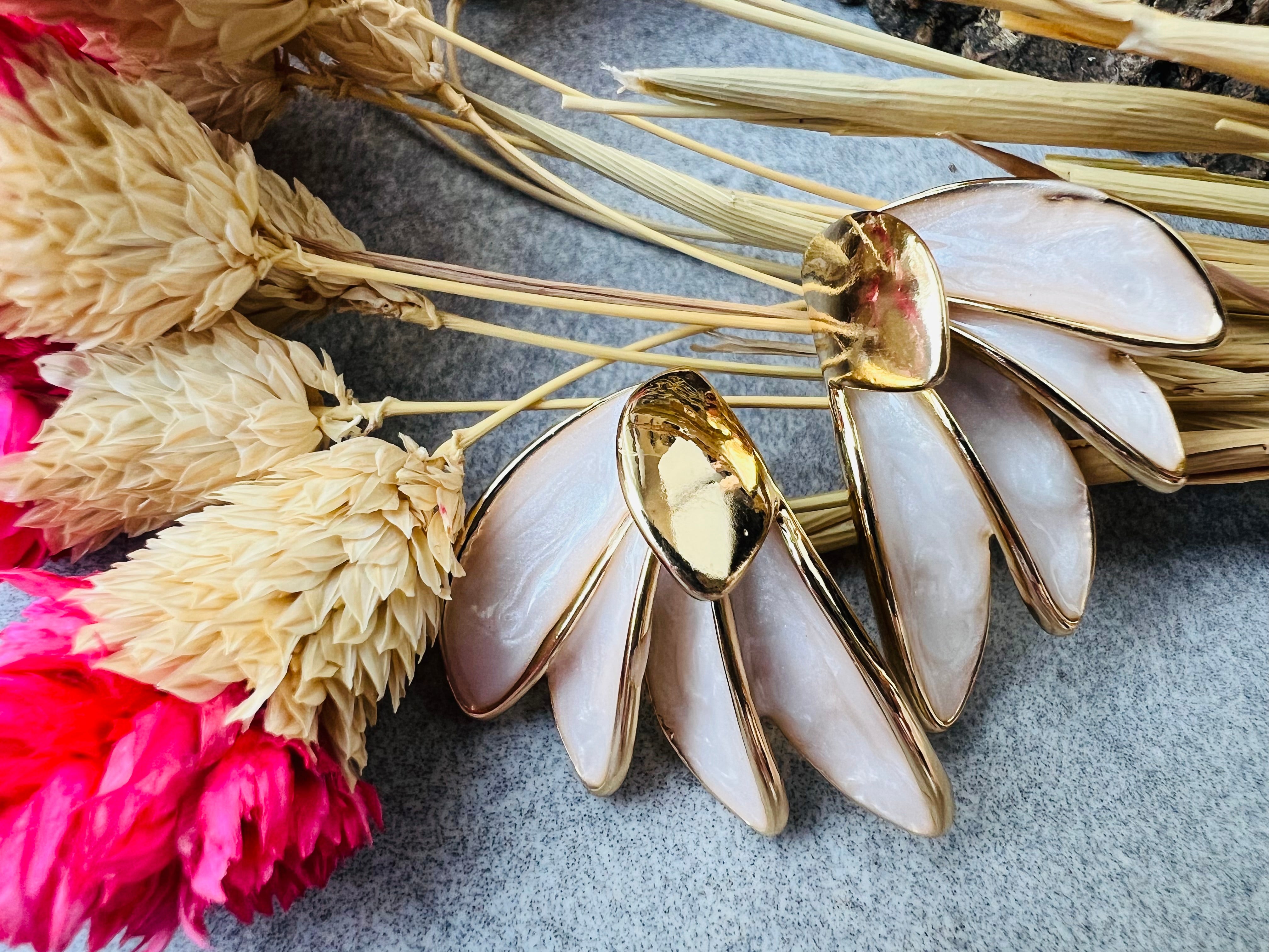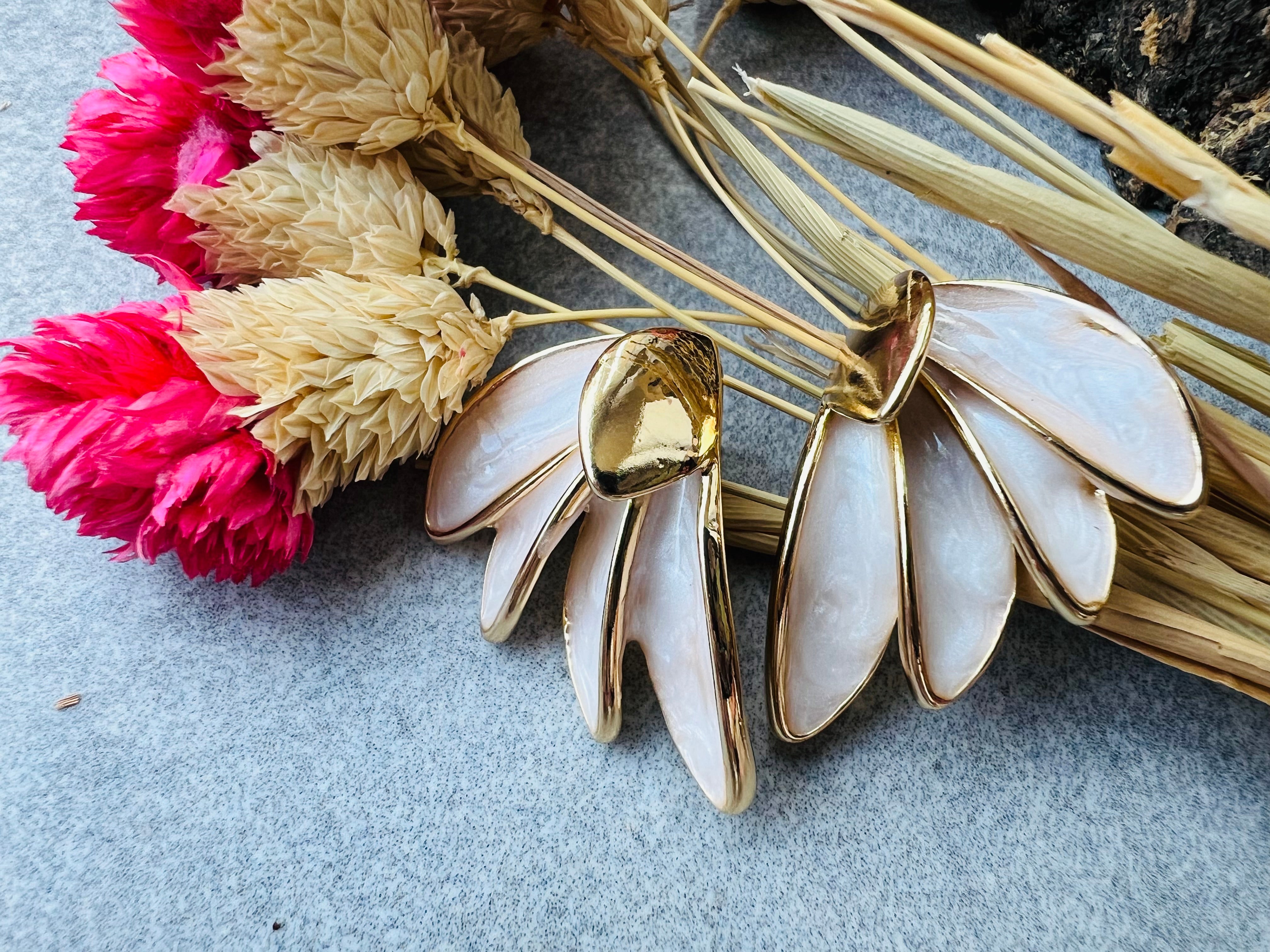 Daisy earrings with silver flowers and mother-of-pearl - Unique Creations