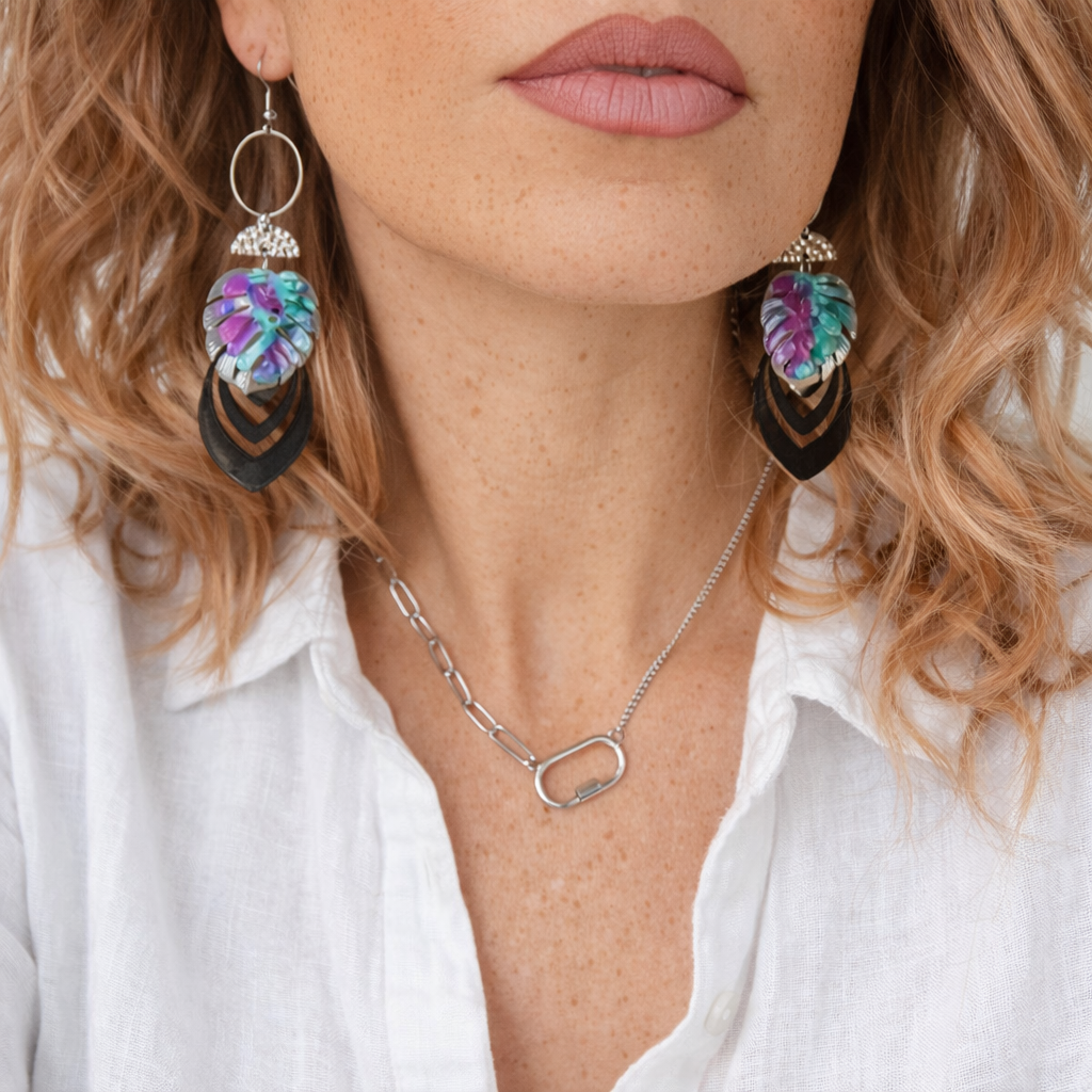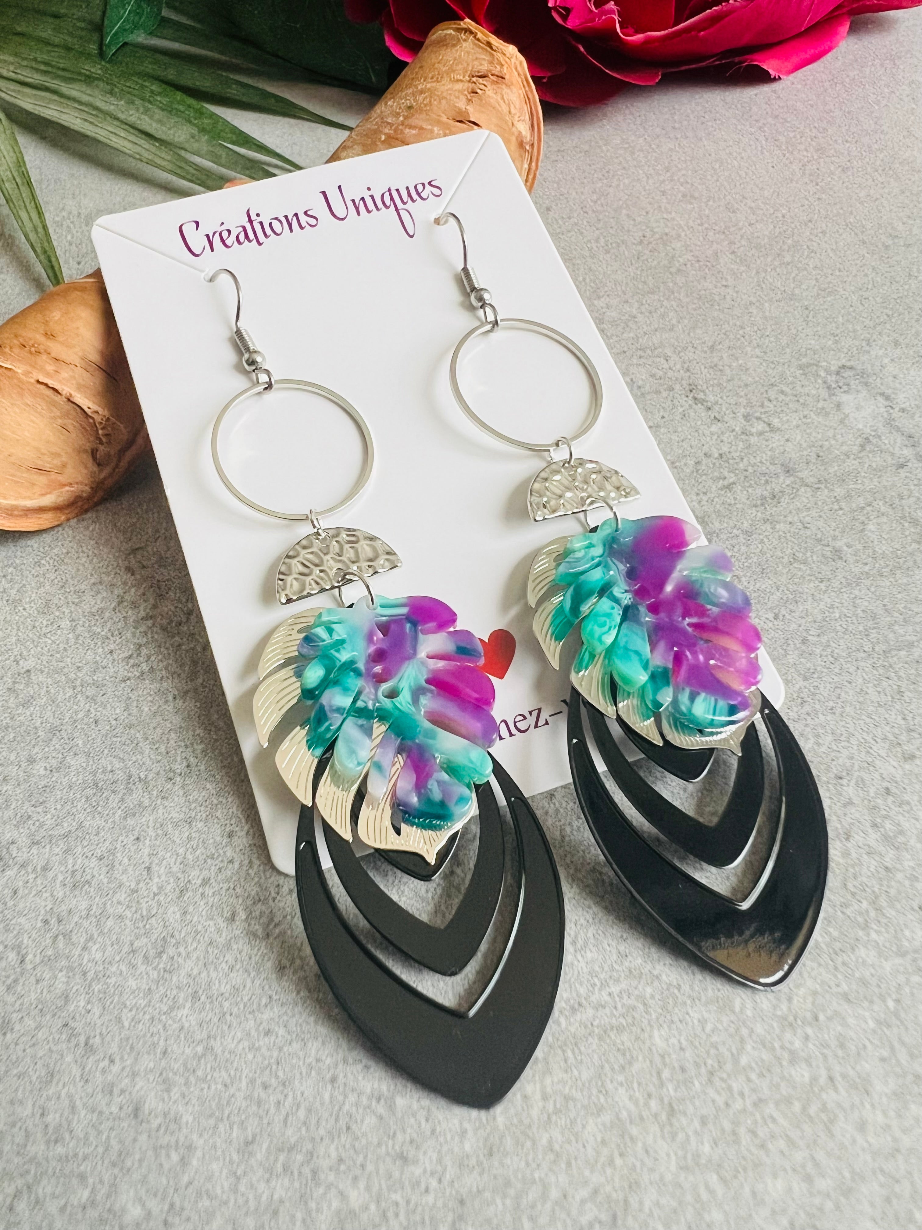 Boucles d’oreilles feuillage tropical résine MADO - Créations Uniques