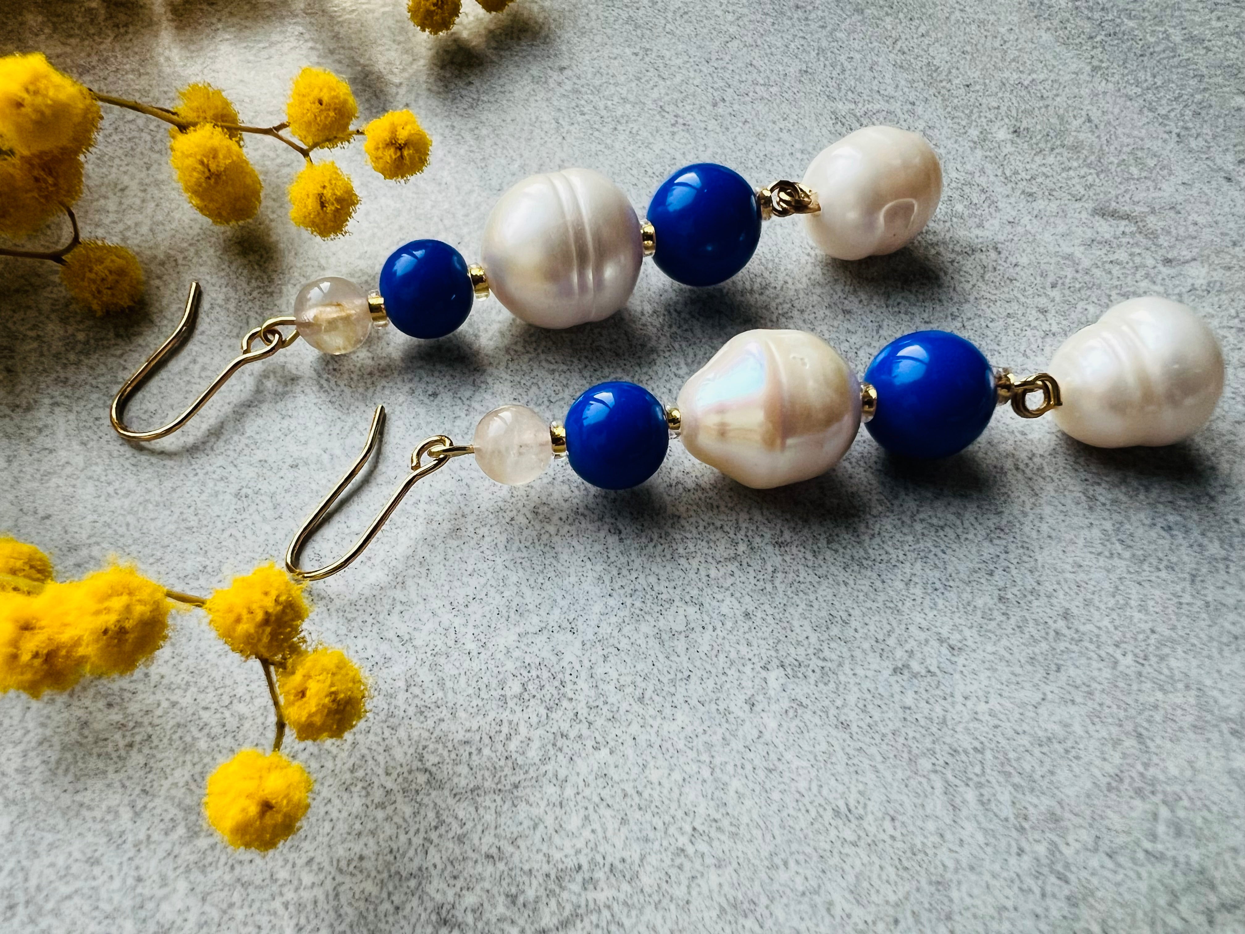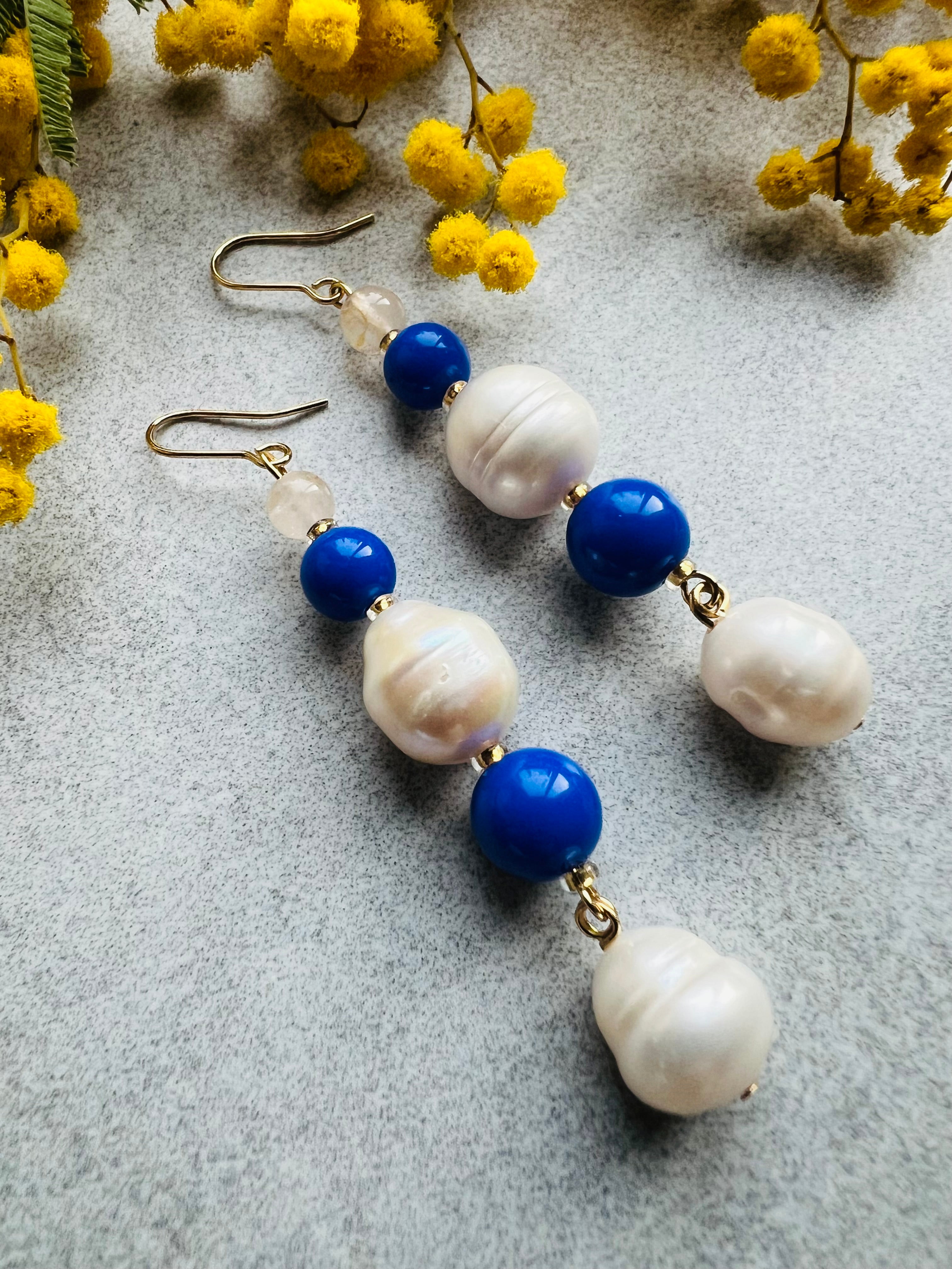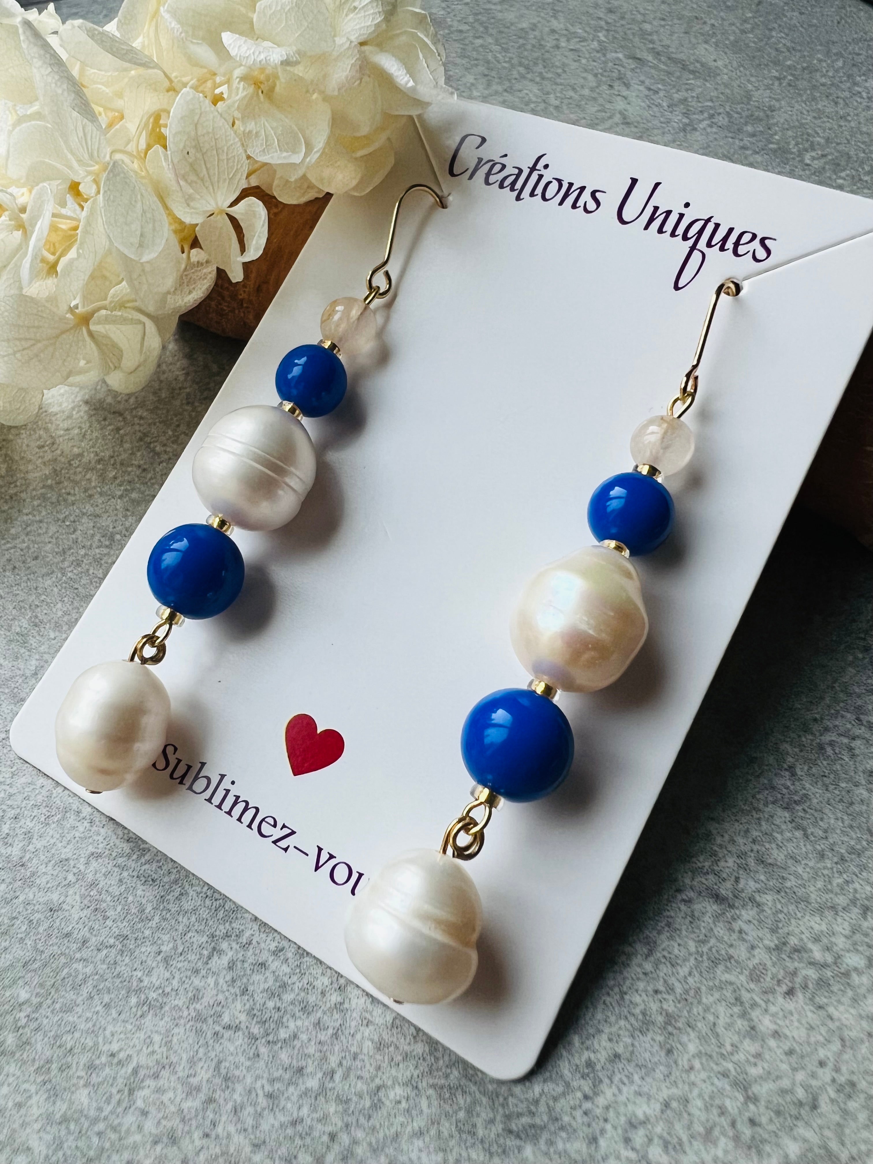 Boucles d’oreilles perles bleu marine et perles d’eau douce IZZIE - Créations Uniques