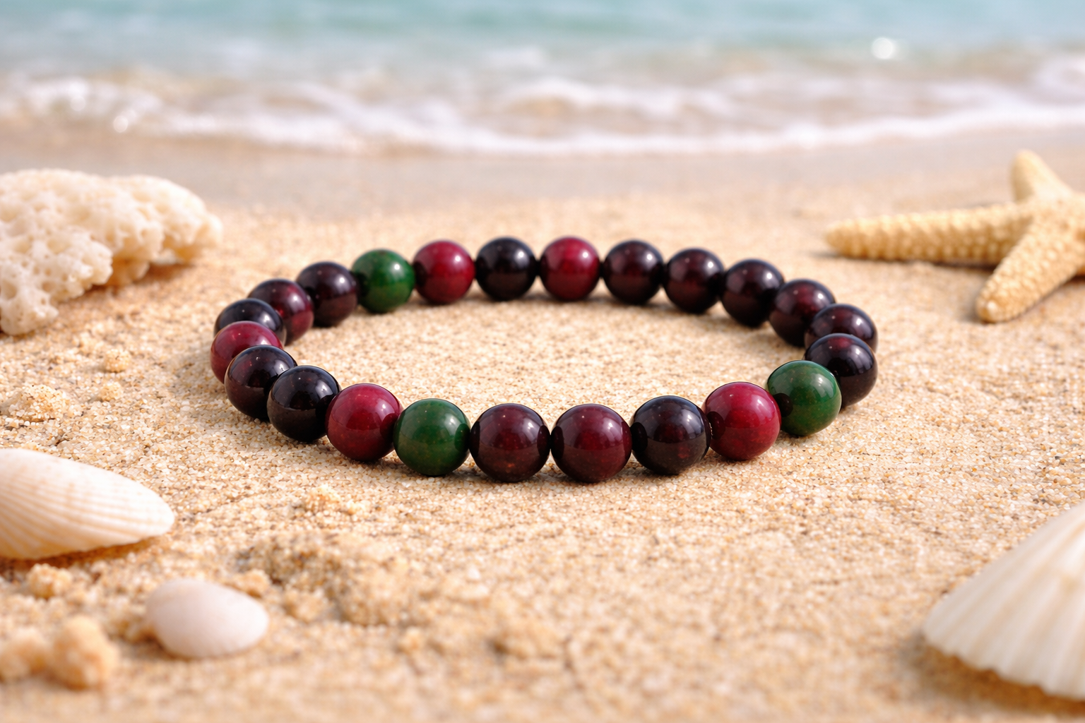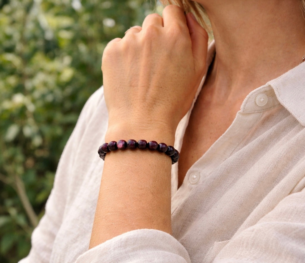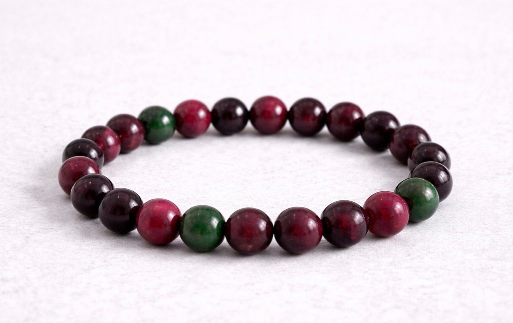 - purple beads & touch of fir green 8 mm.