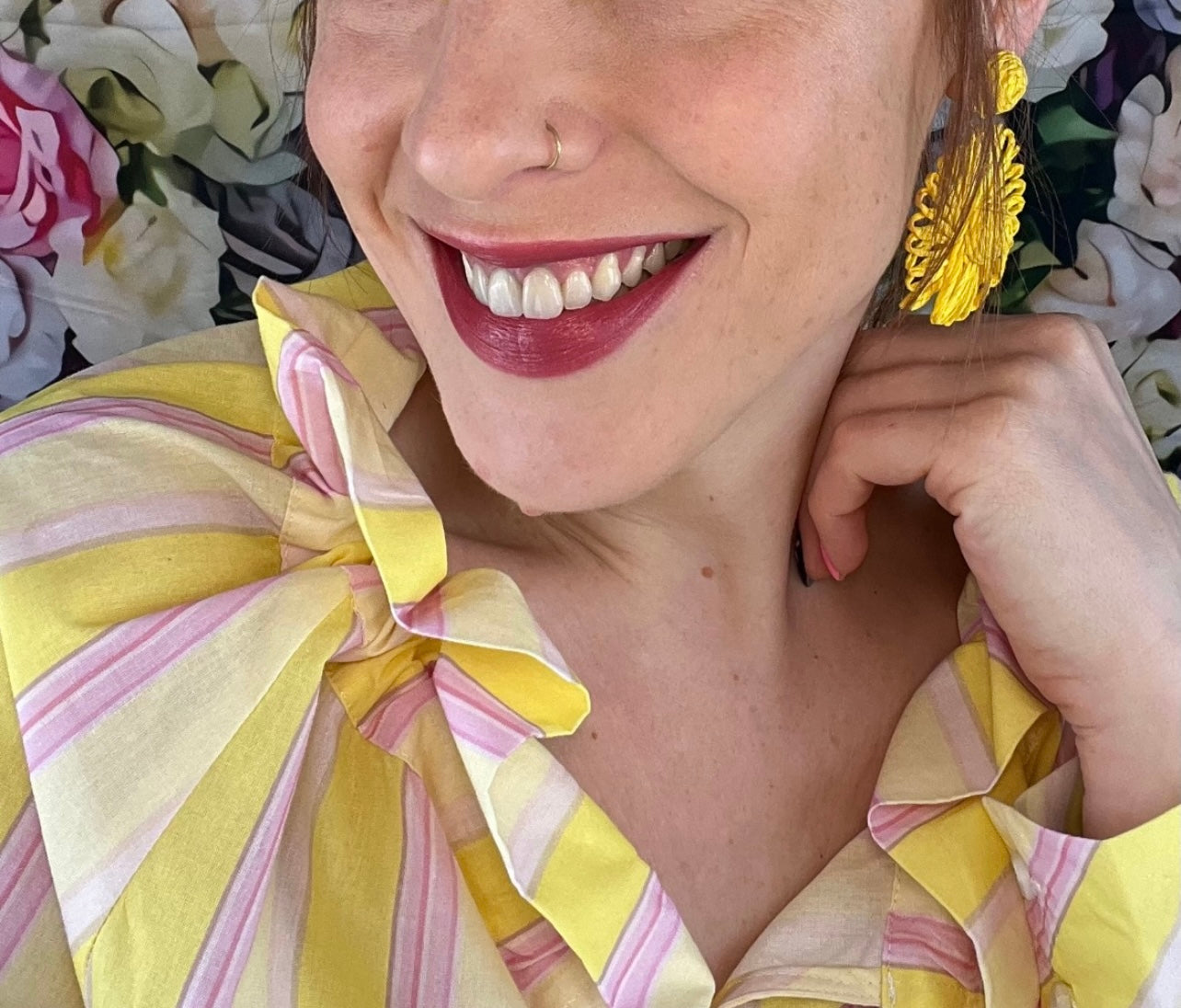 ALESSANDRA earrings in yellow-orange floral pattern fabric